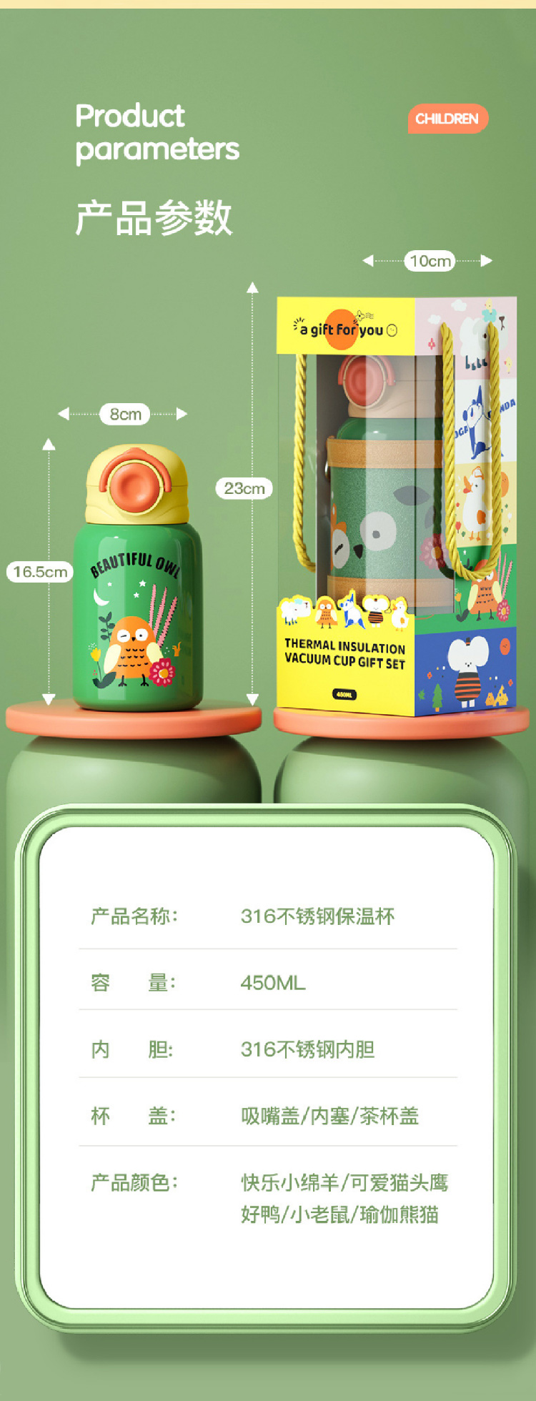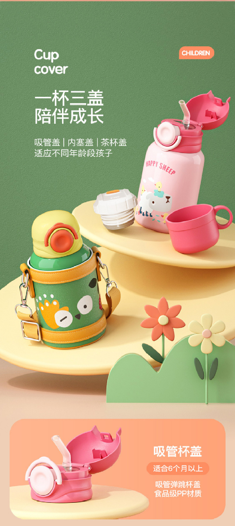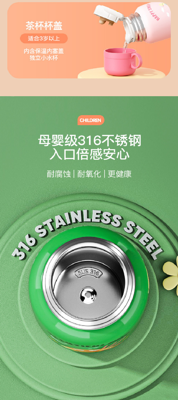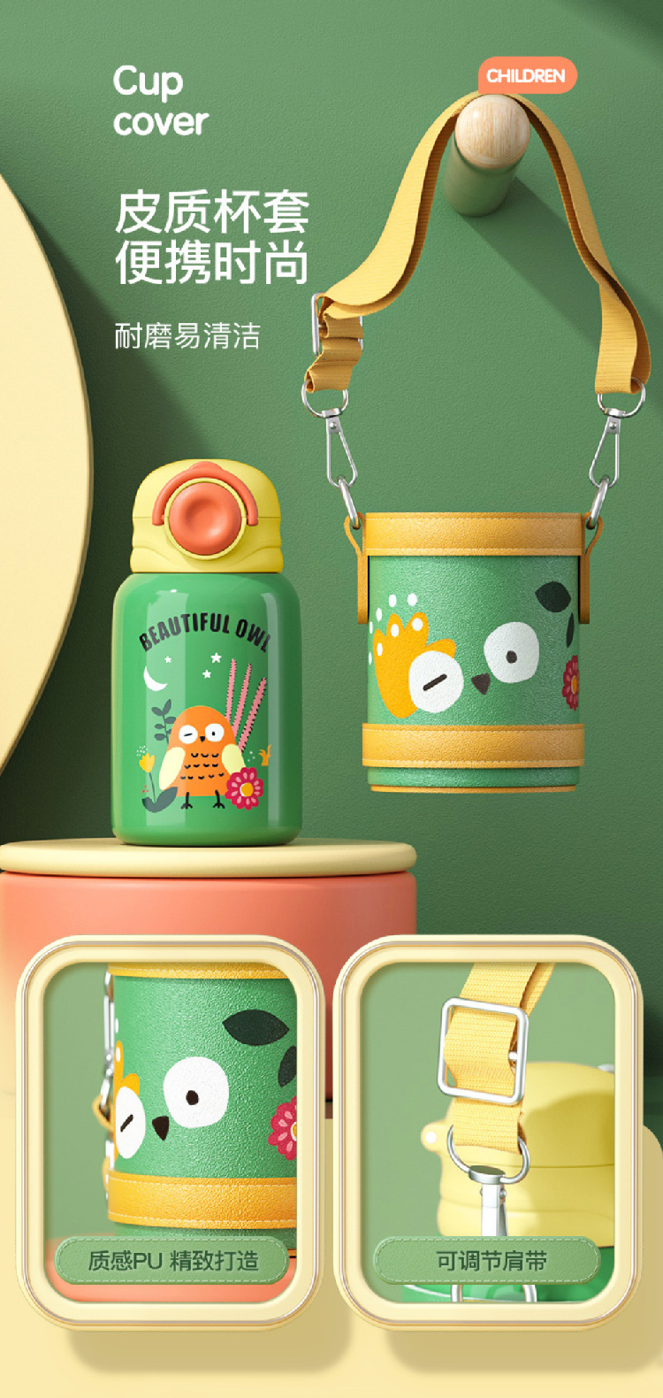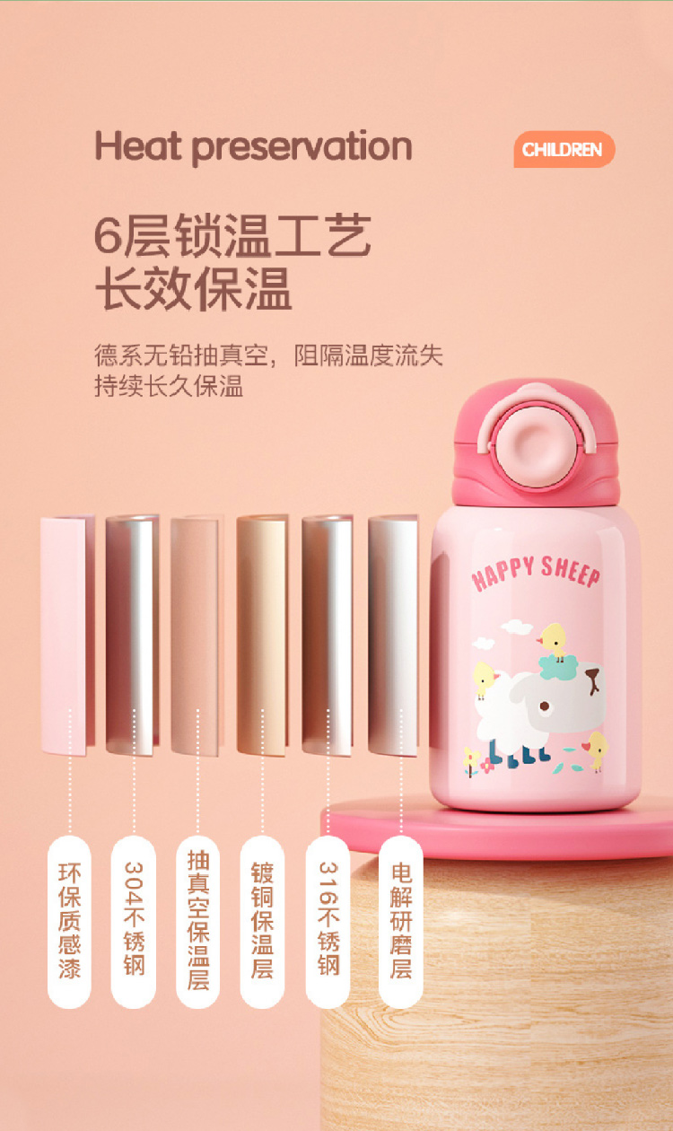 【儿童保温杯+杯套】 新款食品级不锈钢保温壶 可爱水壶便携防摔吸管杯学生水杯