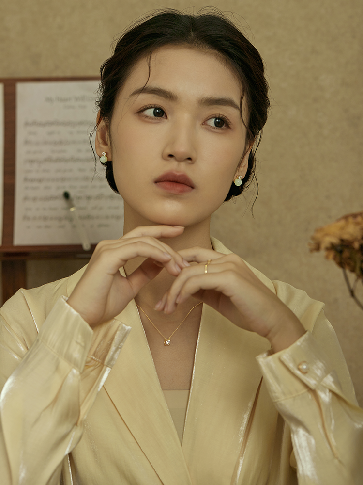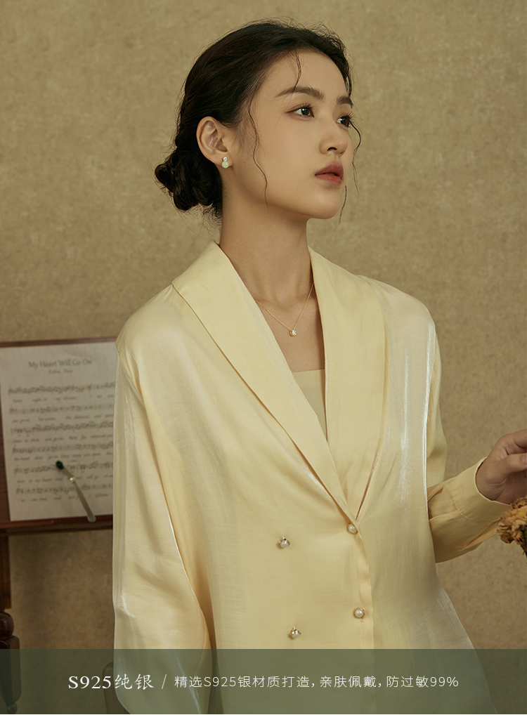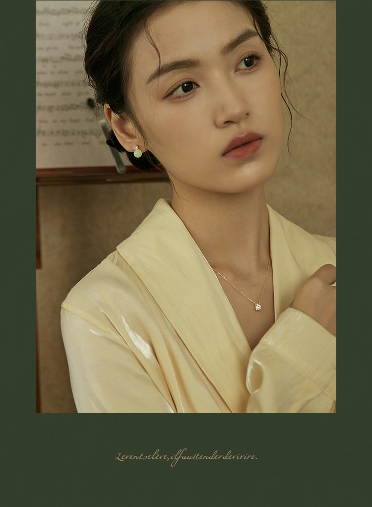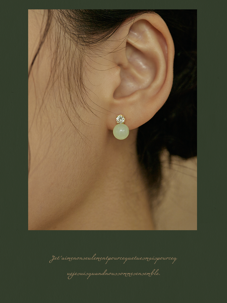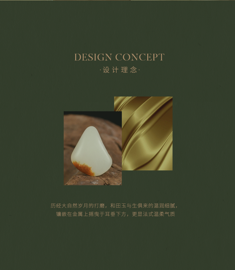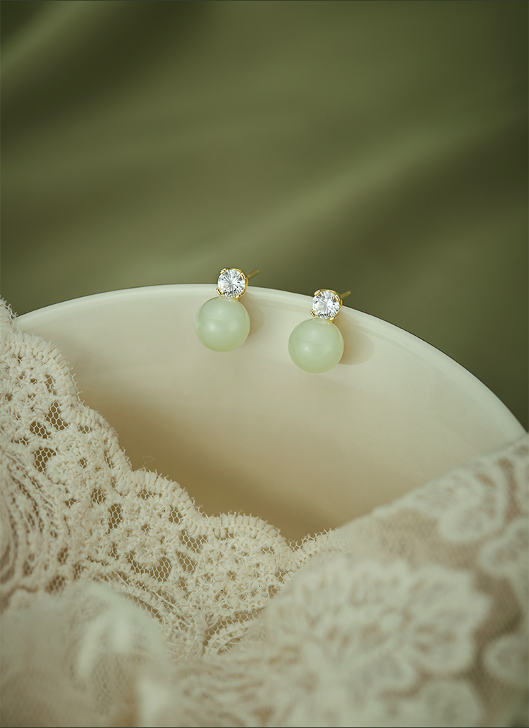 Oflye潮流饰品 天然和田玉耳饰女戴妃款古风轻奢小众925纯银耳钉气质复古耳环