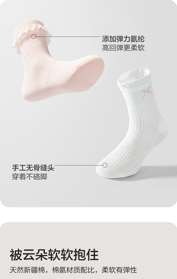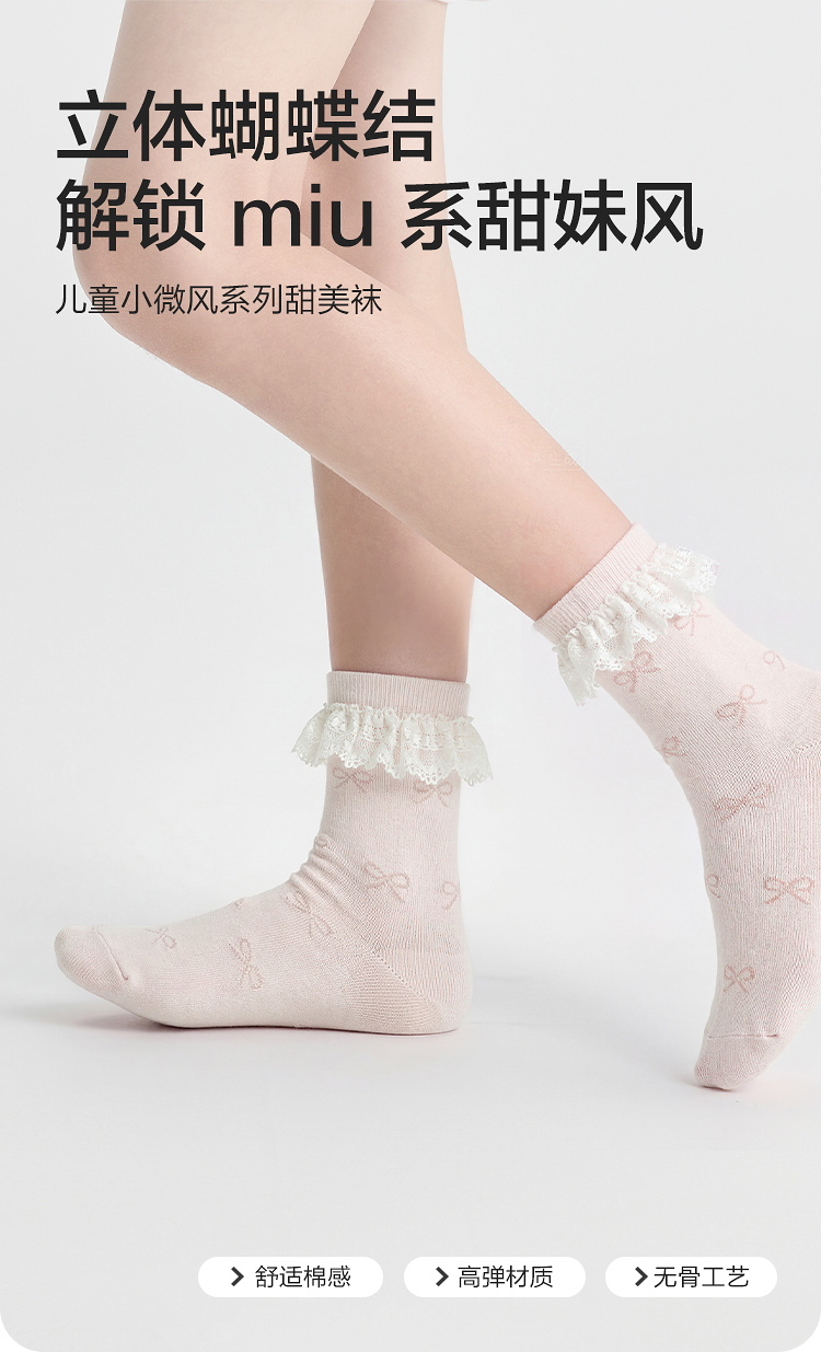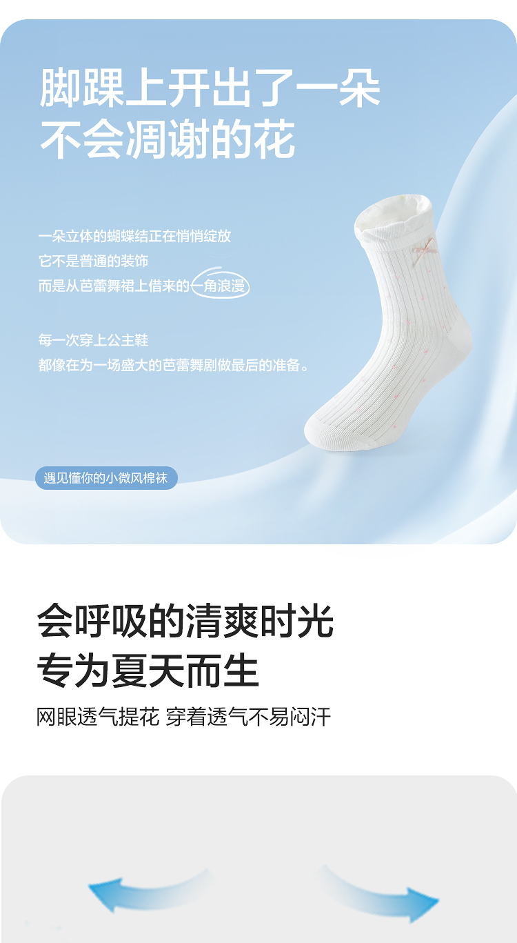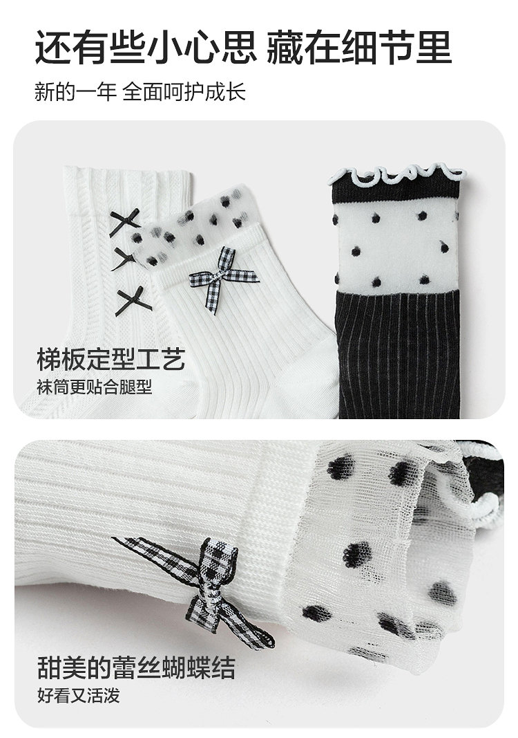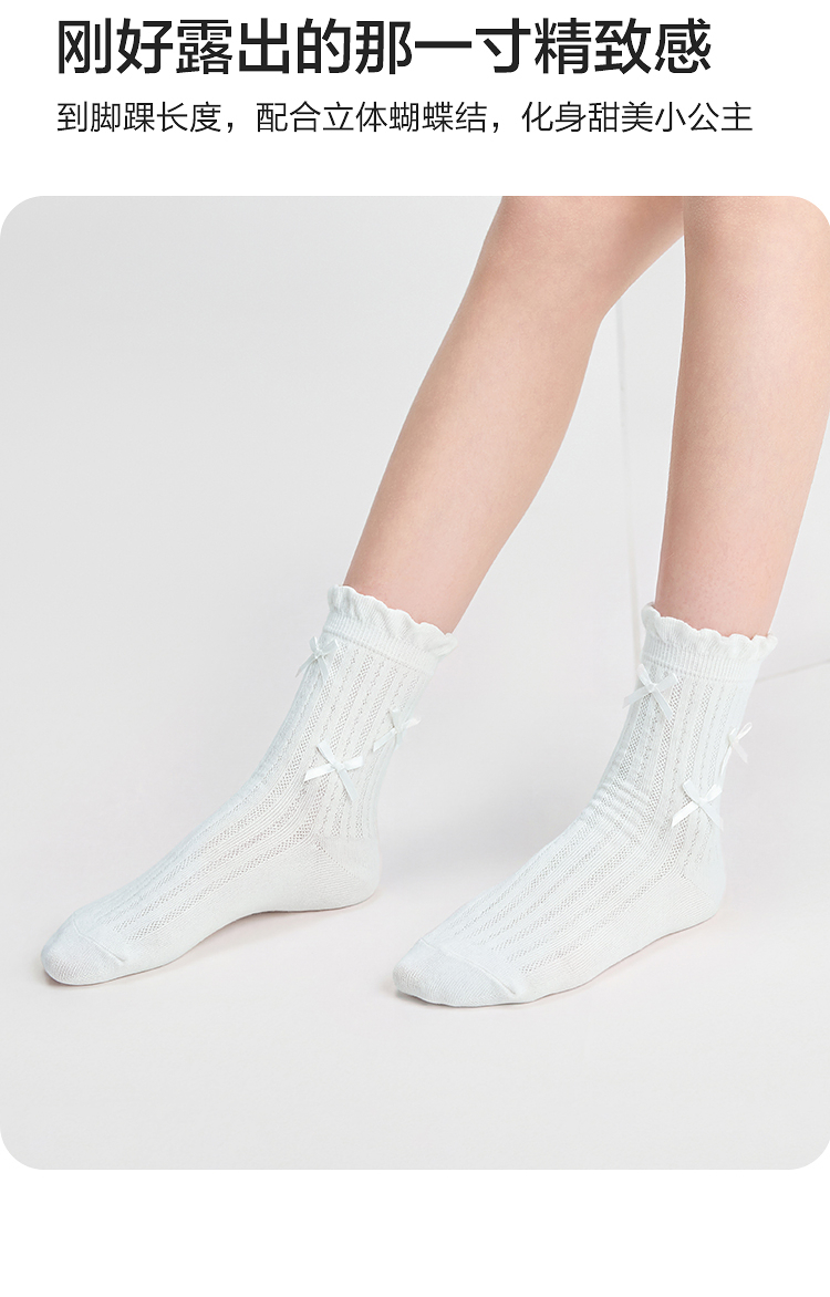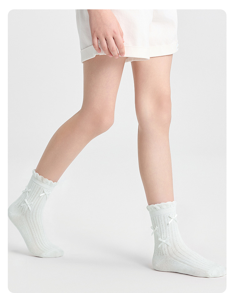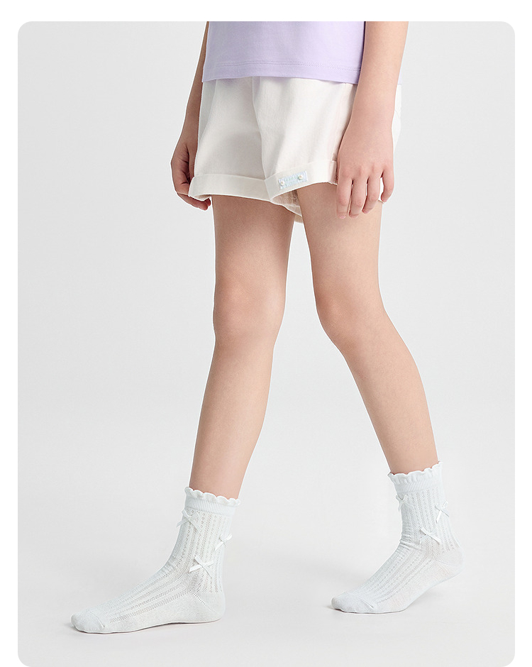 巴拉巴拉儿童袜子夏季网眼袜透气薄女童短袜甜美蝴蝶结棉弹三双装