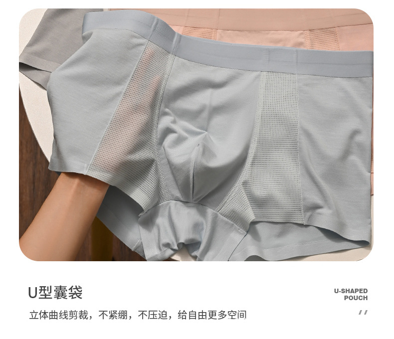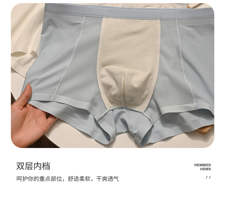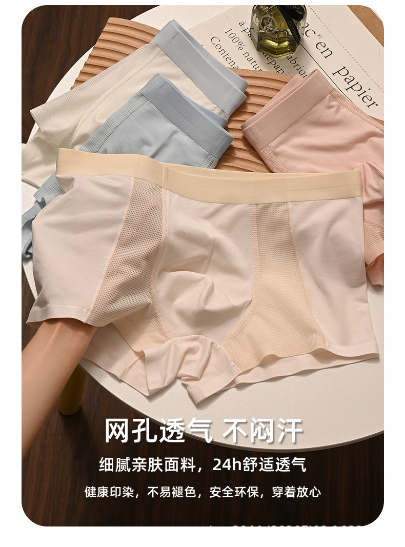买一送一【24H舒适透气!男士冰丝内裤网孔四角裤】健康染印,不易褪色,安全环保,穿着放心!夏季男生平角抗菌四角裤。ry