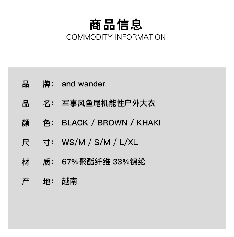 and wander fishtail Octa coat 内里抓绒军事风鱼尾机能户外大衣