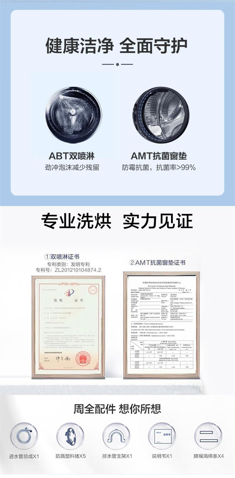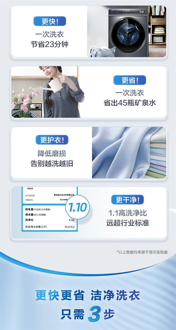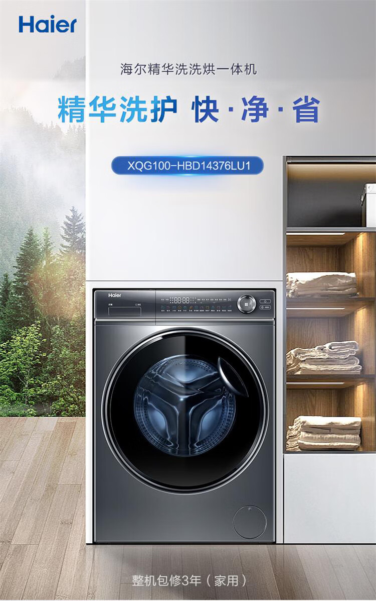 以旧换新-【精华洗】海尔(Haier) 滚筒洗衣机全自动家电 直驱10公斤 精华洗极净系列 洗烘一体XQG100-HBD14376LU1