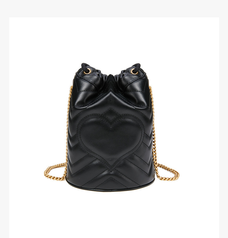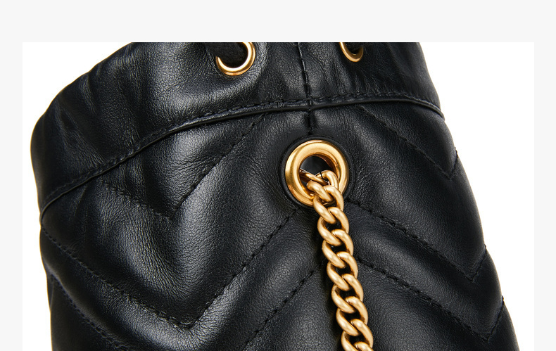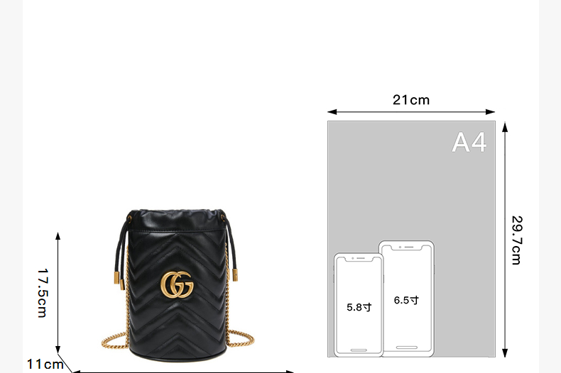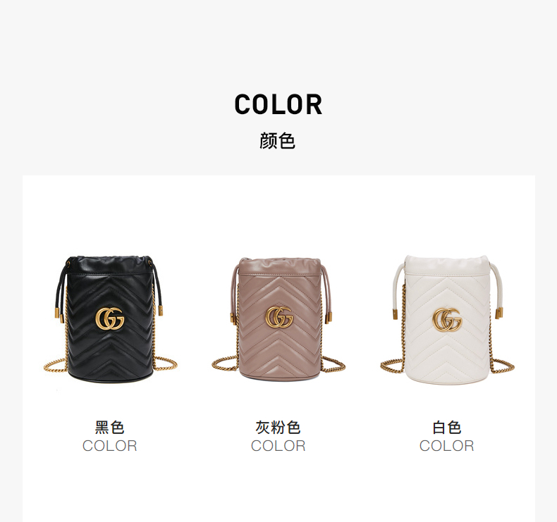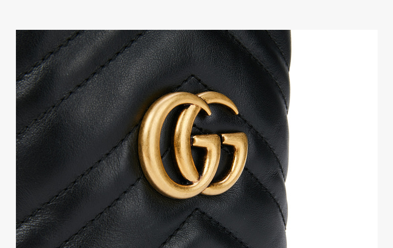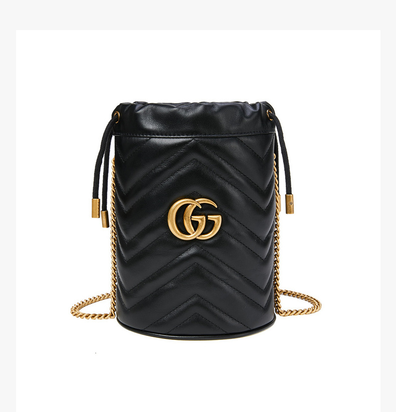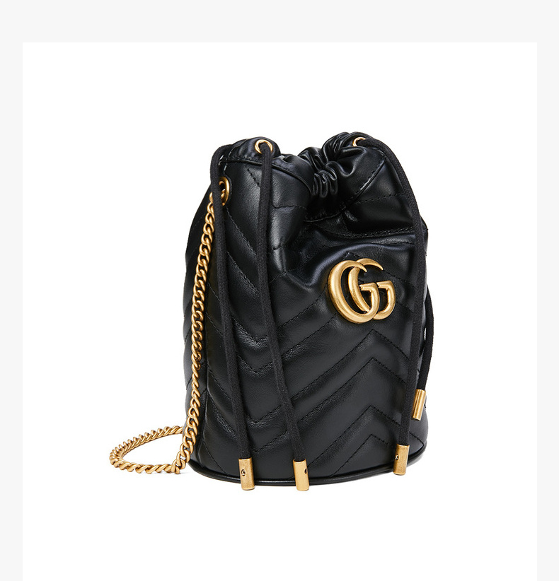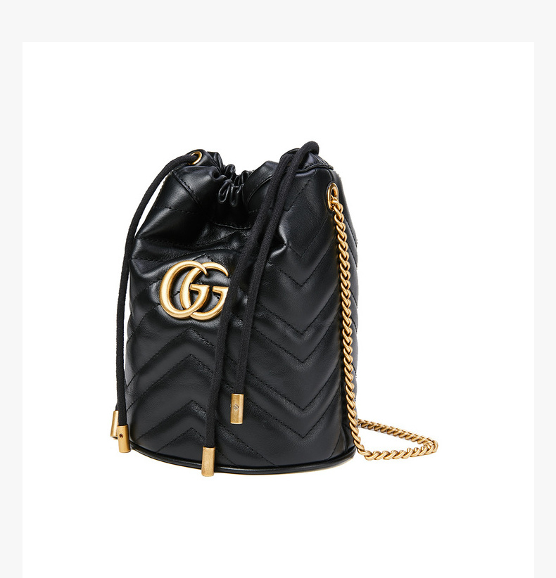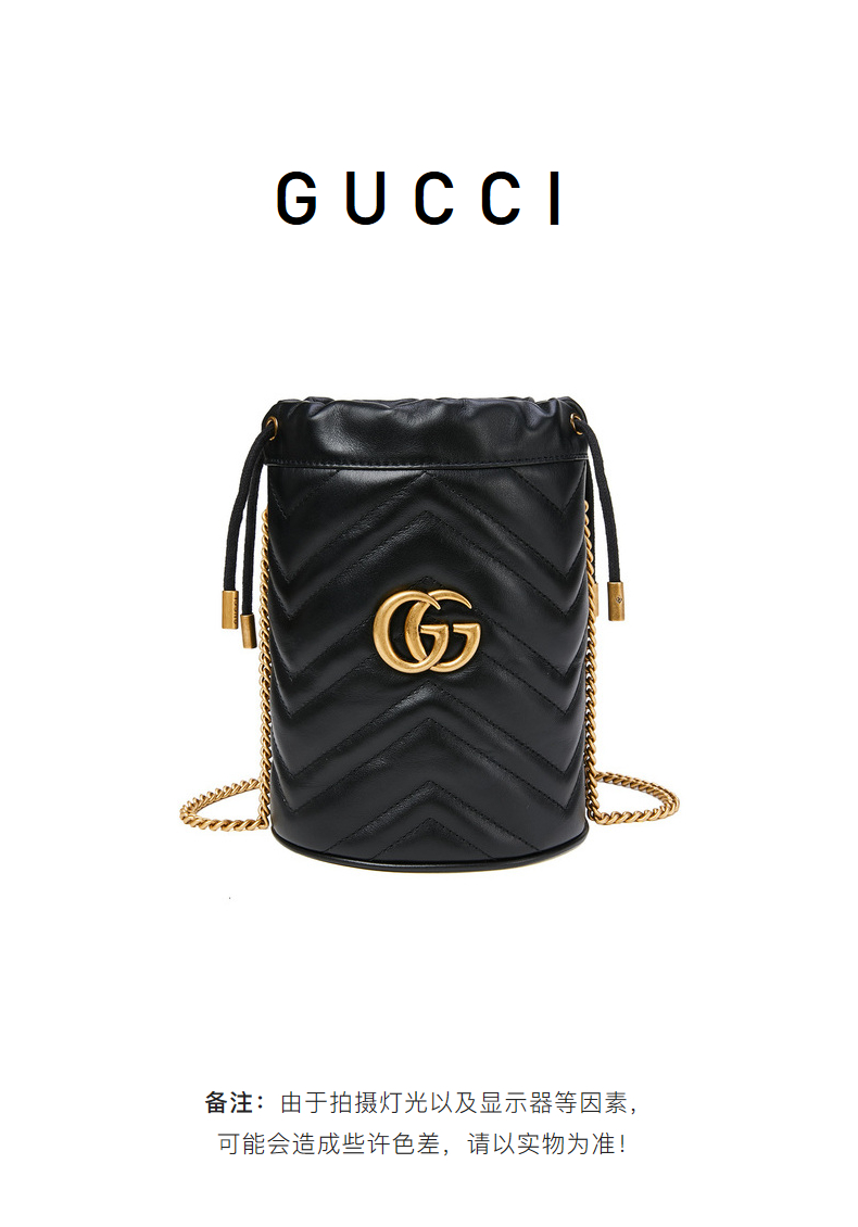 GUCCI 古驰 女士GG Marmont牛皮迷你水桶包单肩包 黑色 575163 DTDRT