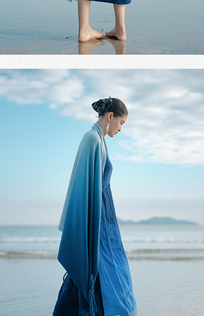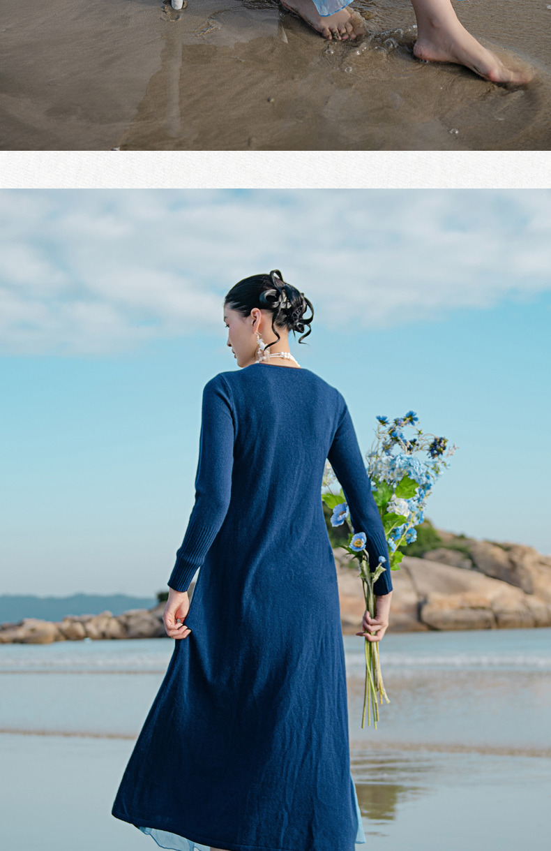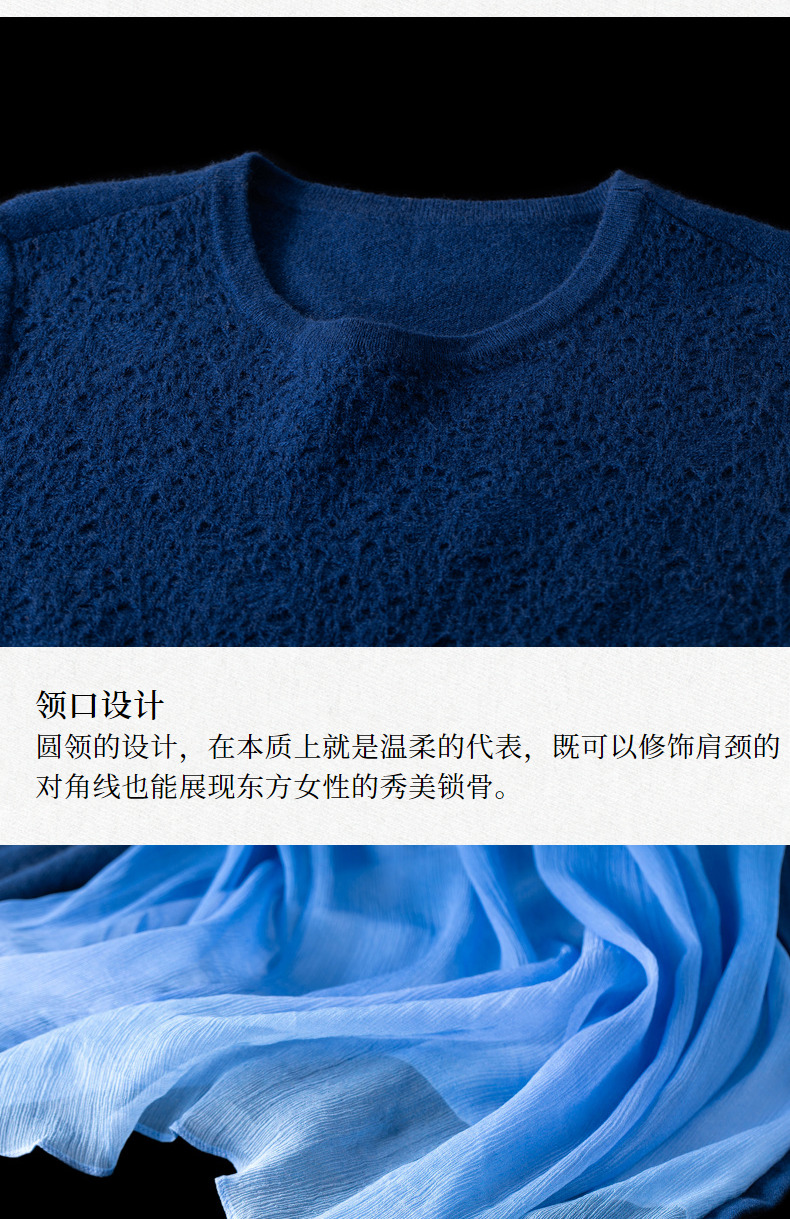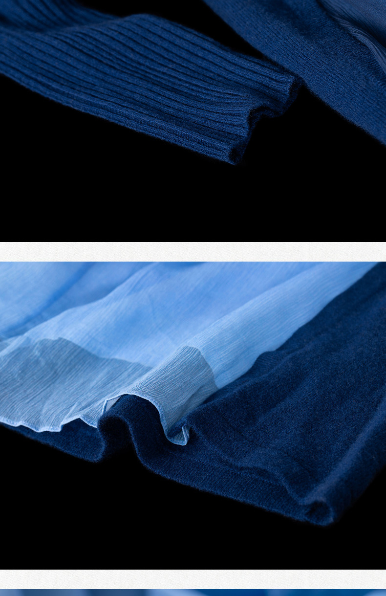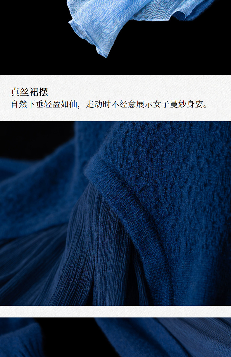 【林栖设计小店】(现货)绵羊毛拼真丝保暖舒适气质休闲渐变毛织连衣裙1924295