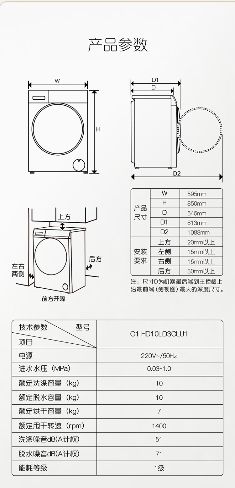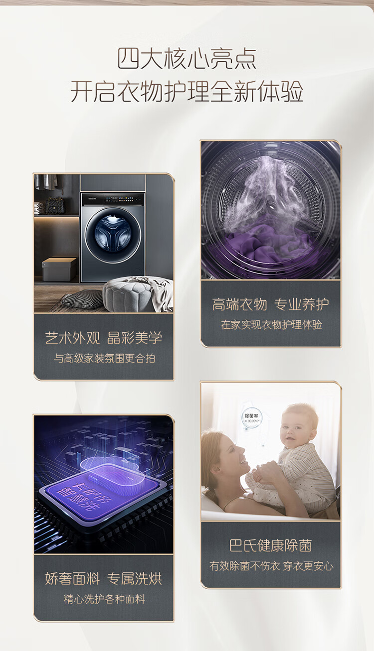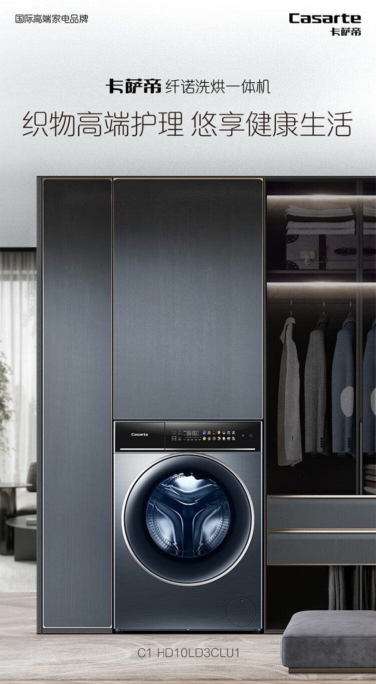 以旧换新-卡萨帝纤诺3 10公斤家用超薄滚筒洗衣机洗烘一体机 超声波空气洗 变频智能投放 巴氏除菌C1 HD10LD3CLU1