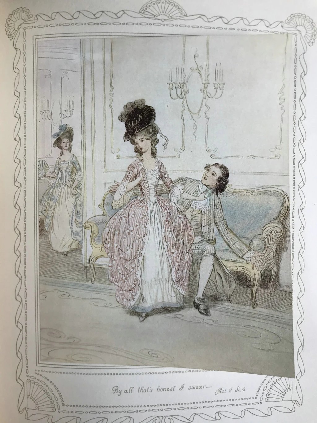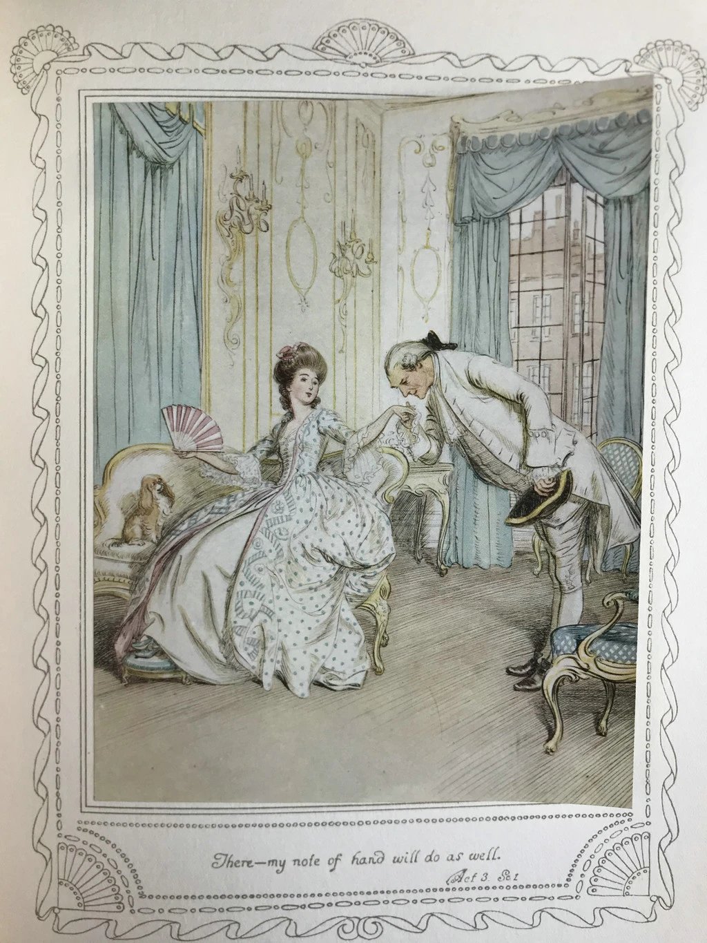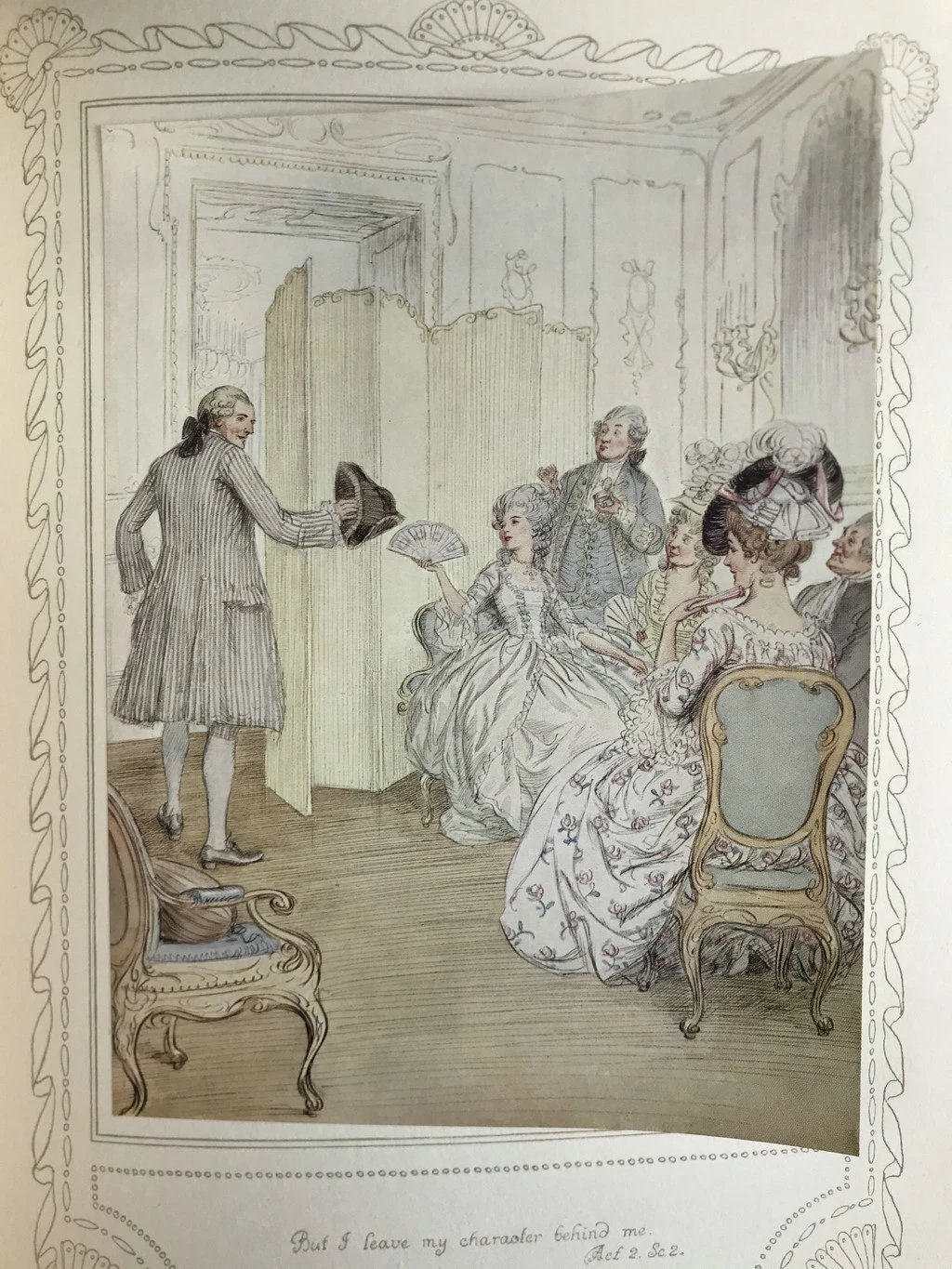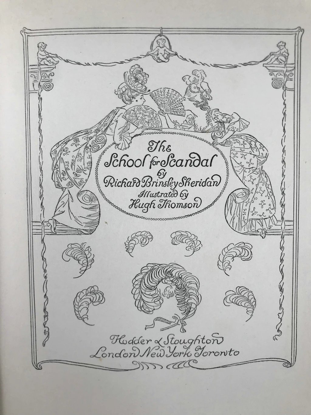 约20世纪早期 谢里丹《造谣学校》 休·汤姆森25幅彩色手工贴图 漆布精装16开