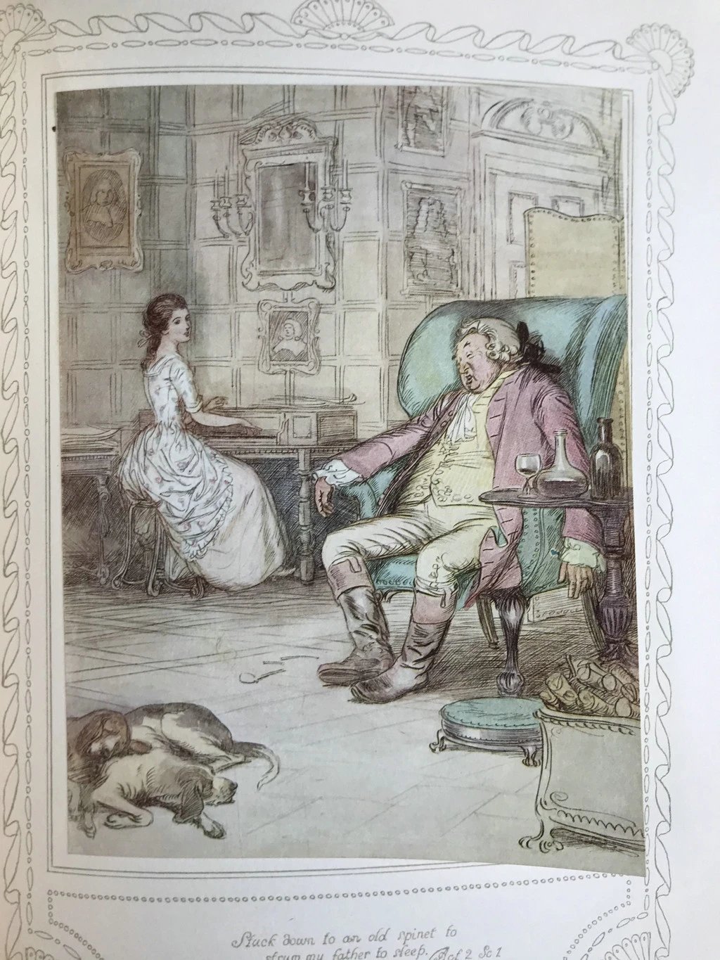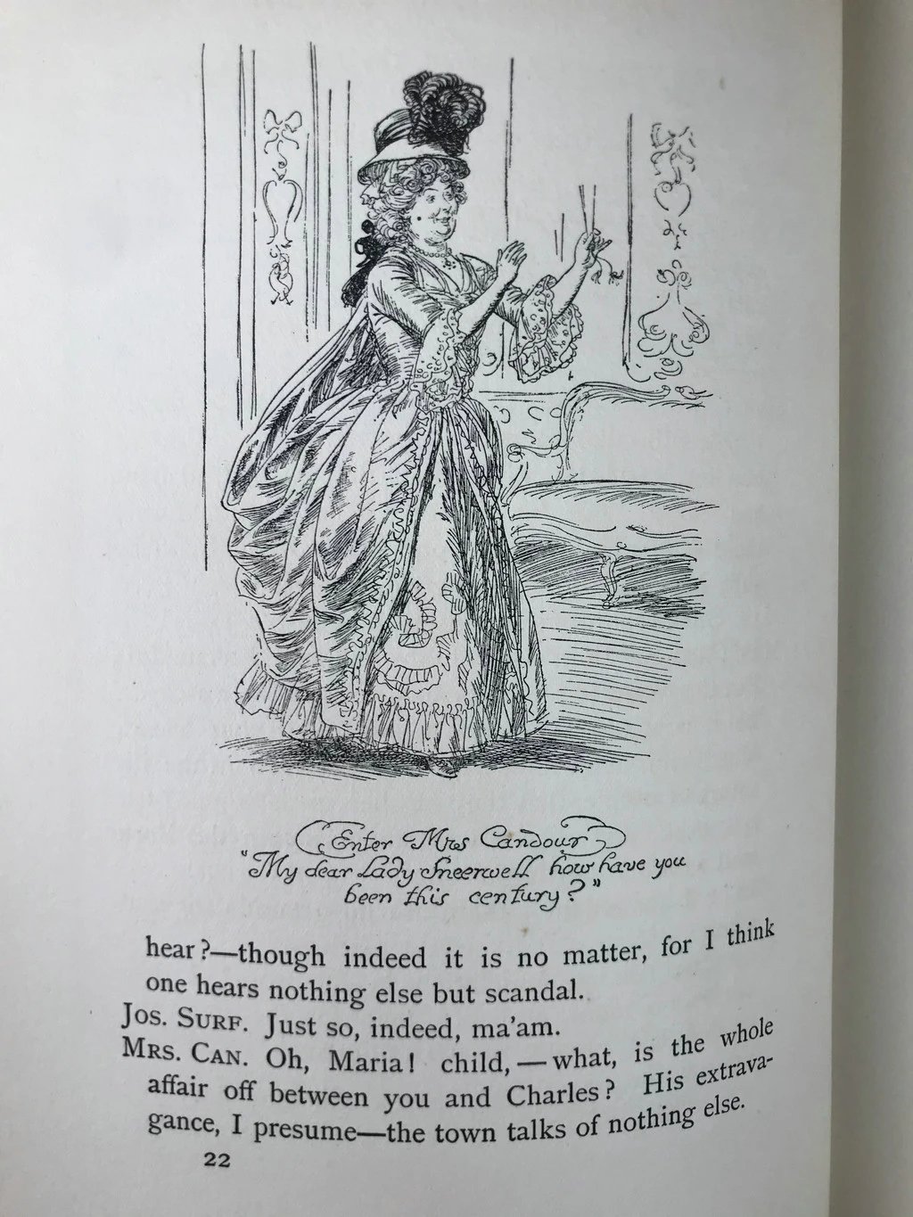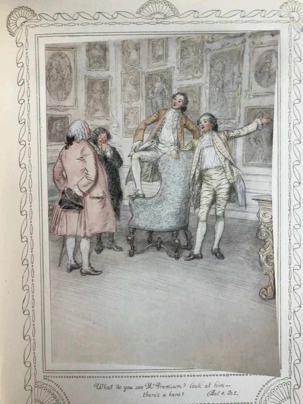 约20世纪早期 谢里丹《造谣学校》 休·汤姆森25幅彩色手工贴图 漆布精装16开
