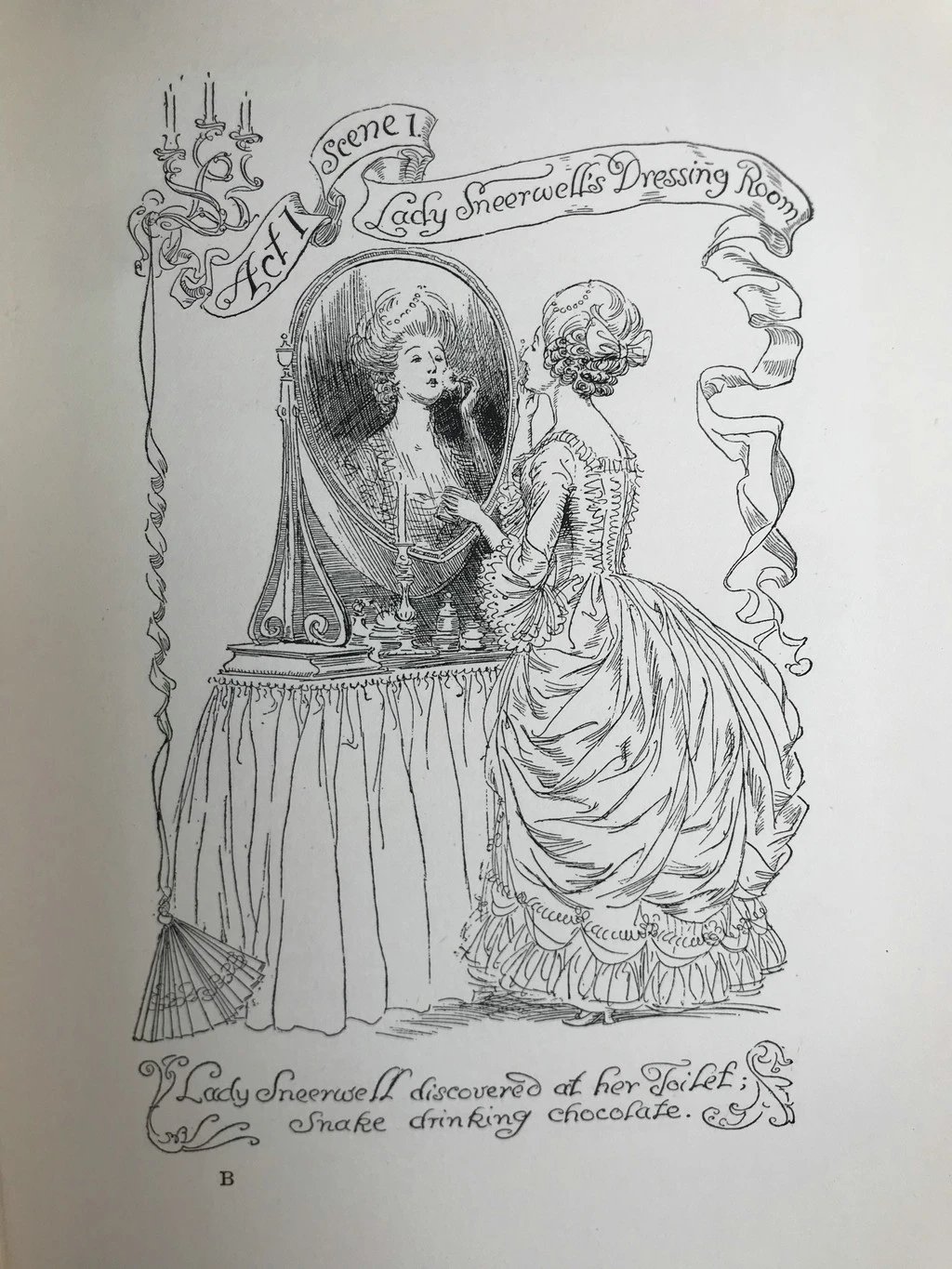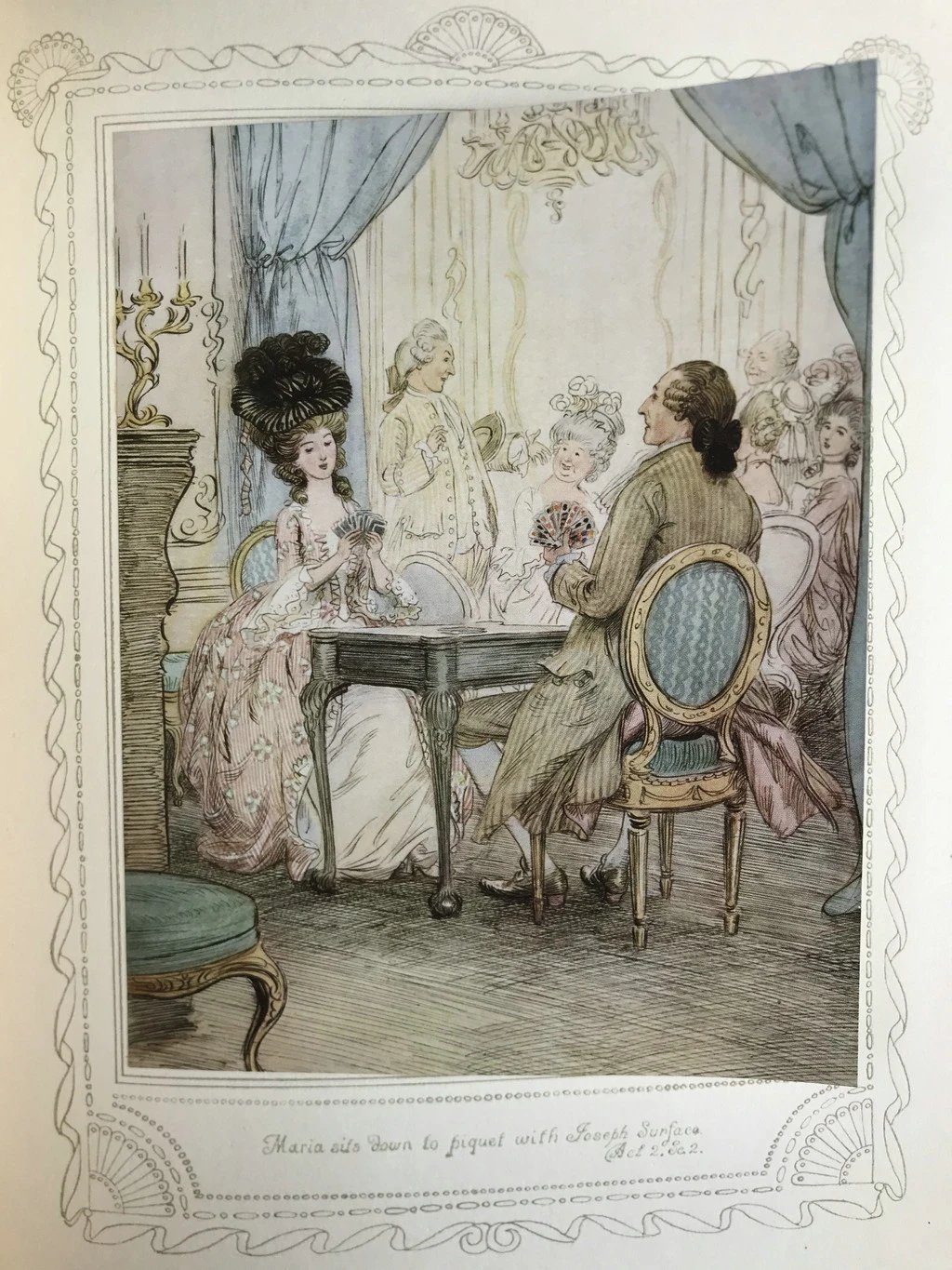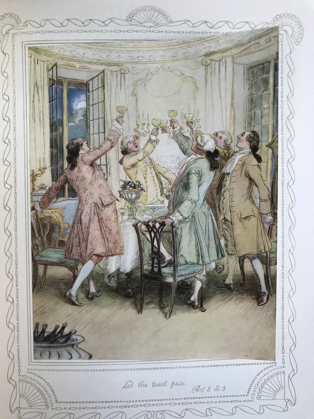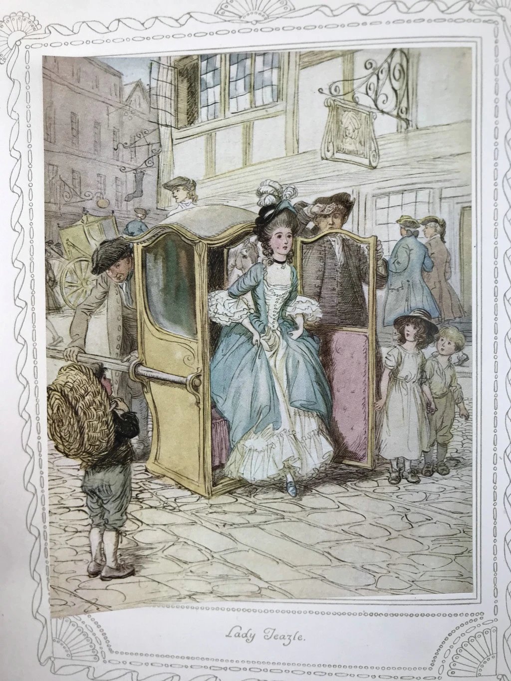 约20世纪早期 谢里丹《造谣学校》 休·汤姆森25幅彩色手工贴图 漆布精装16开