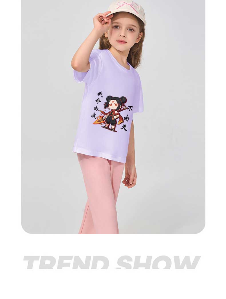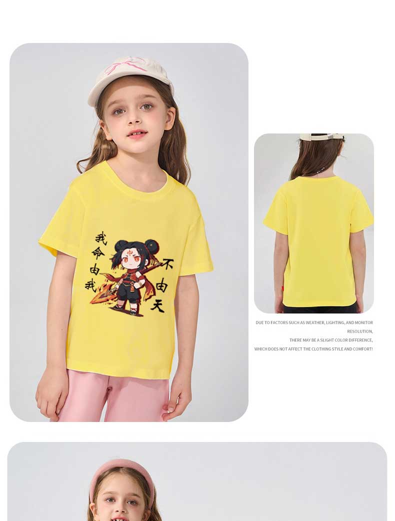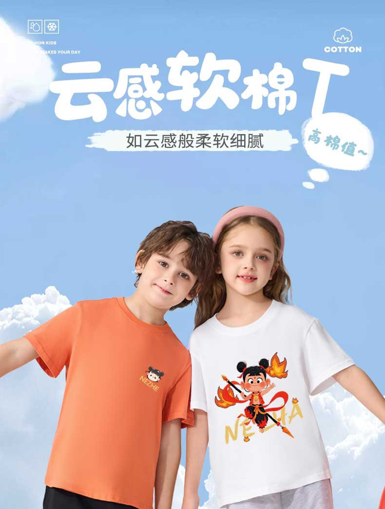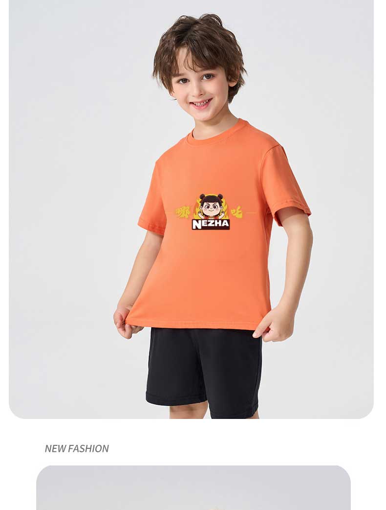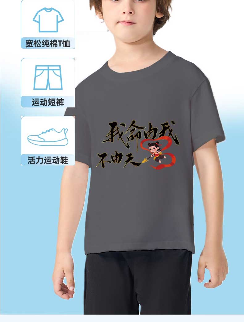 小黄鸭2025夏季儿童休闲潮酷时尚男童女童哪吒印花圆领短袖T恤