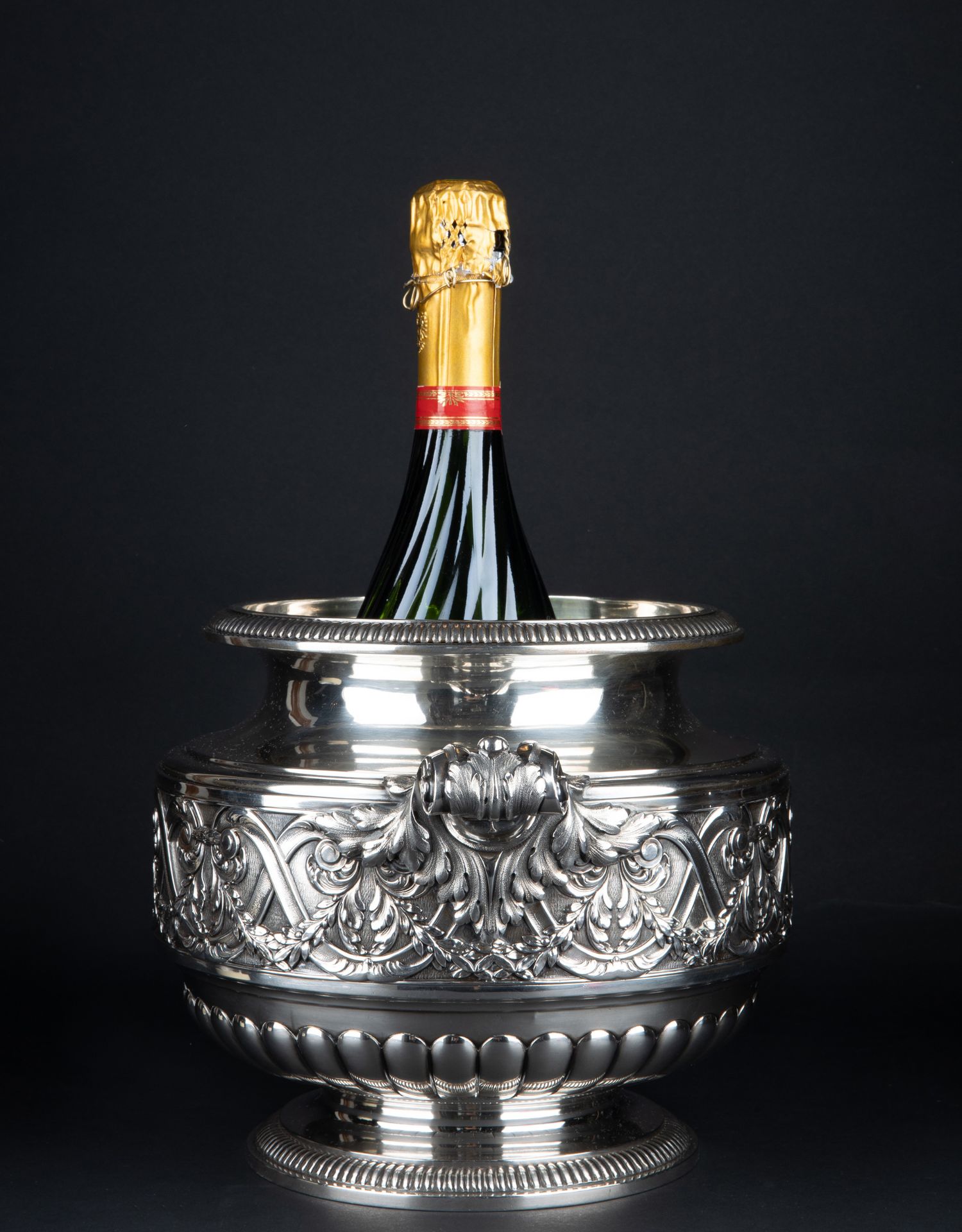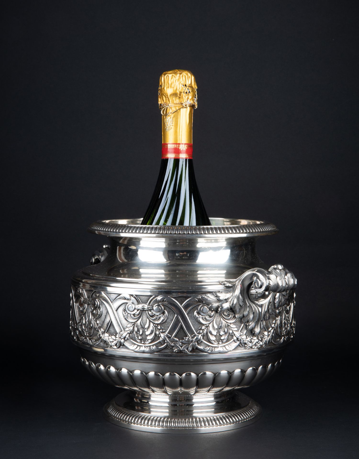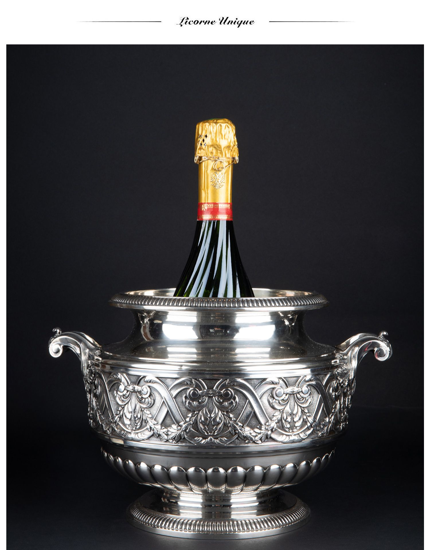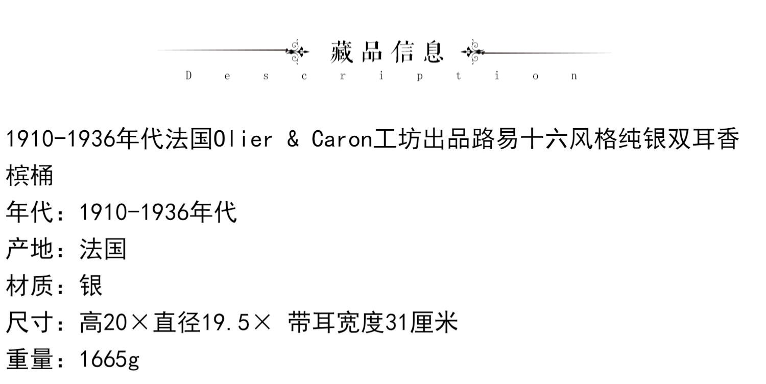 独角鹿西洋古董银器法国Olier&Caron路易十六风格纯银双耳香槟桶
