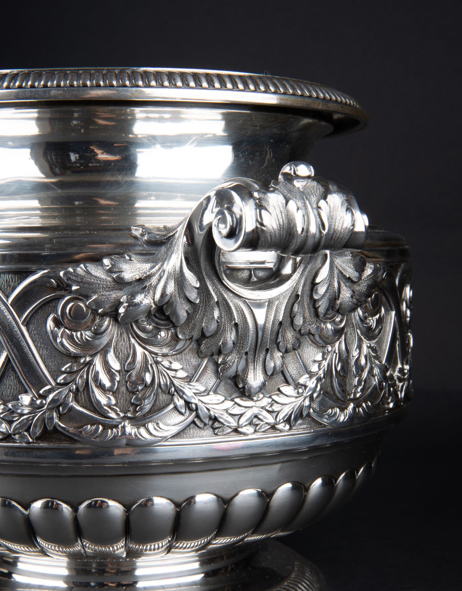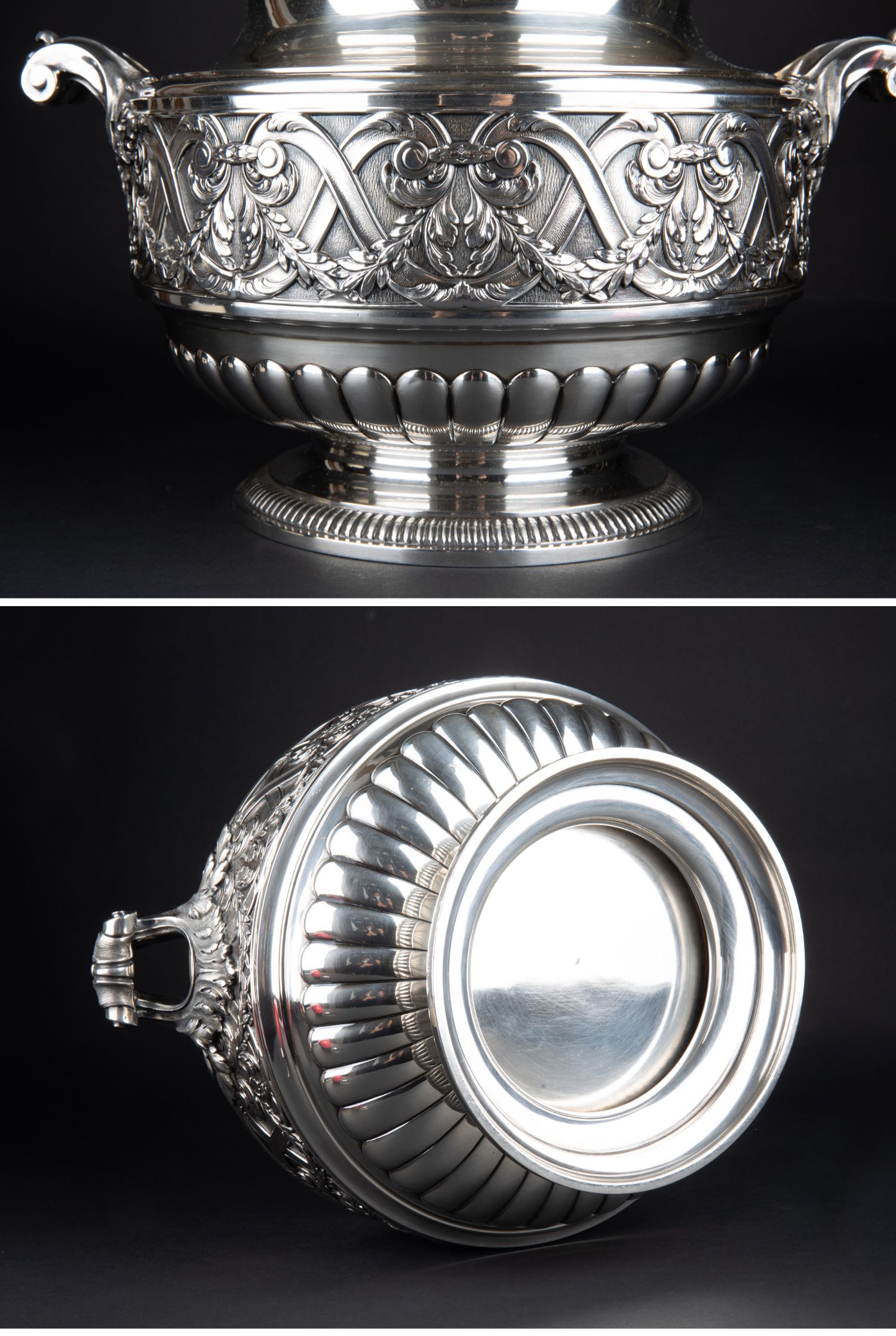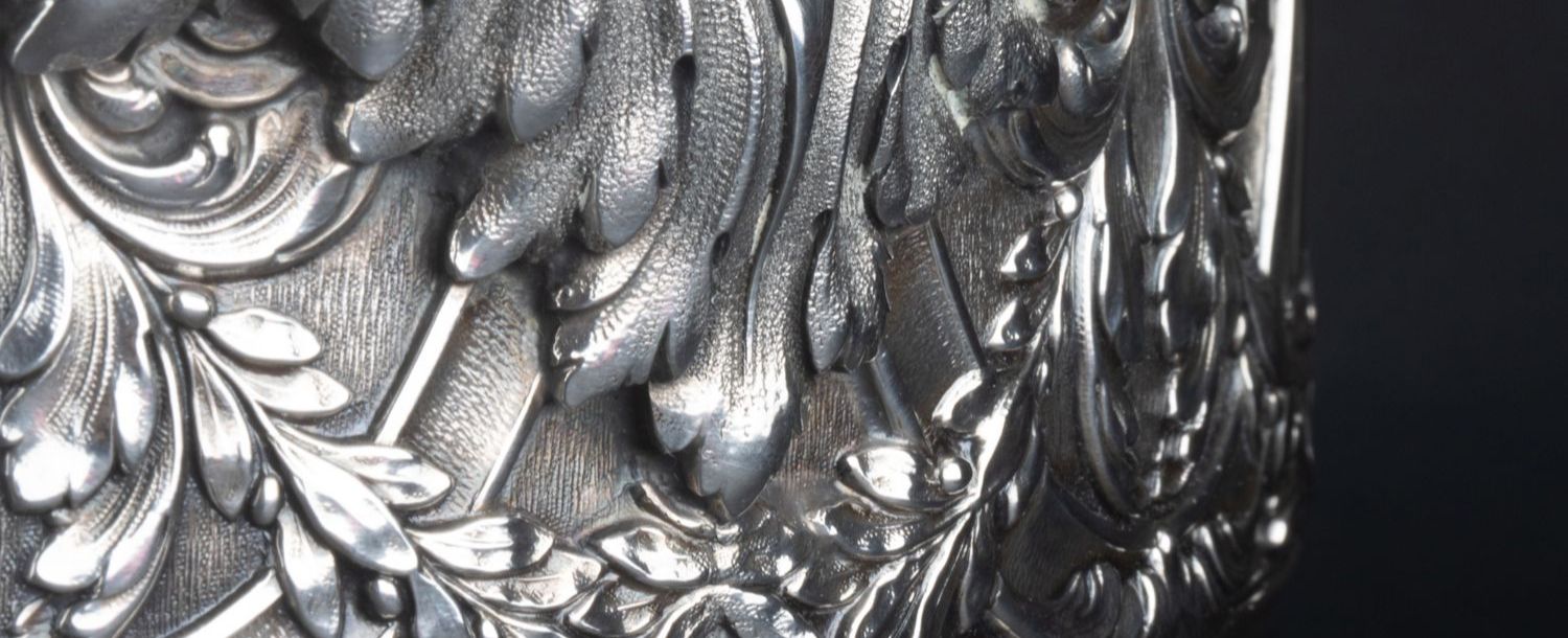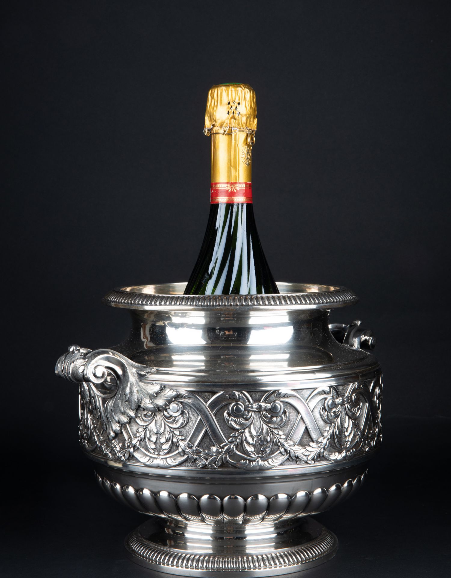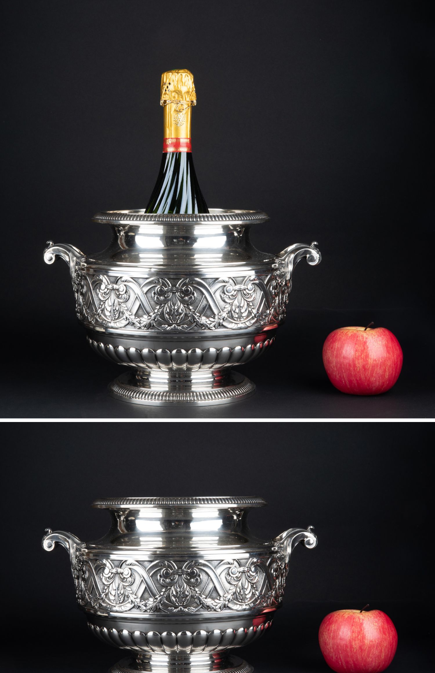 独角鹿西洋古董银器法国Olier&Caron路易十六风格纯银双耳香槟桶