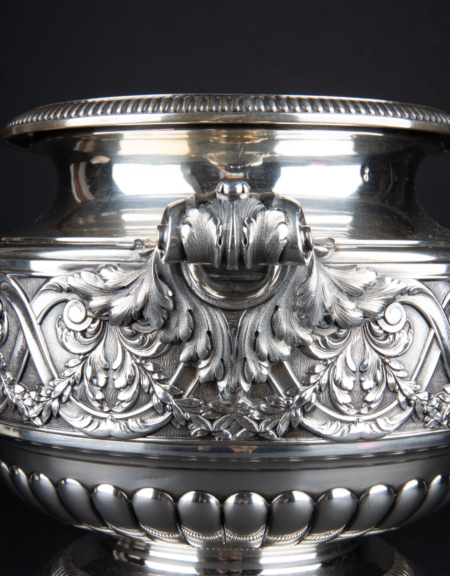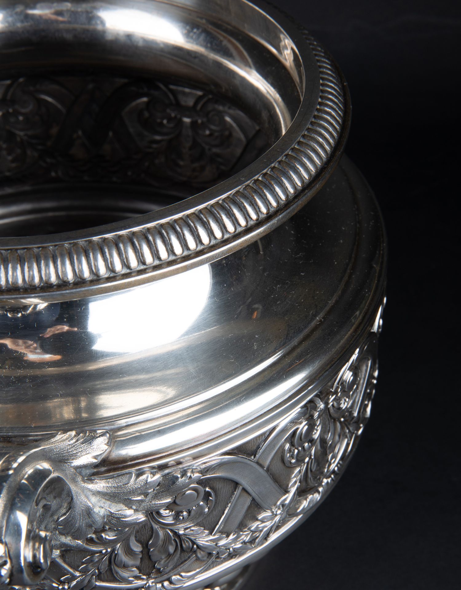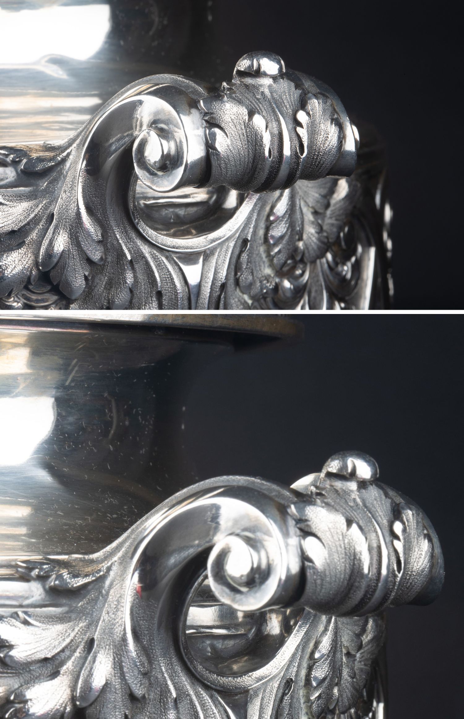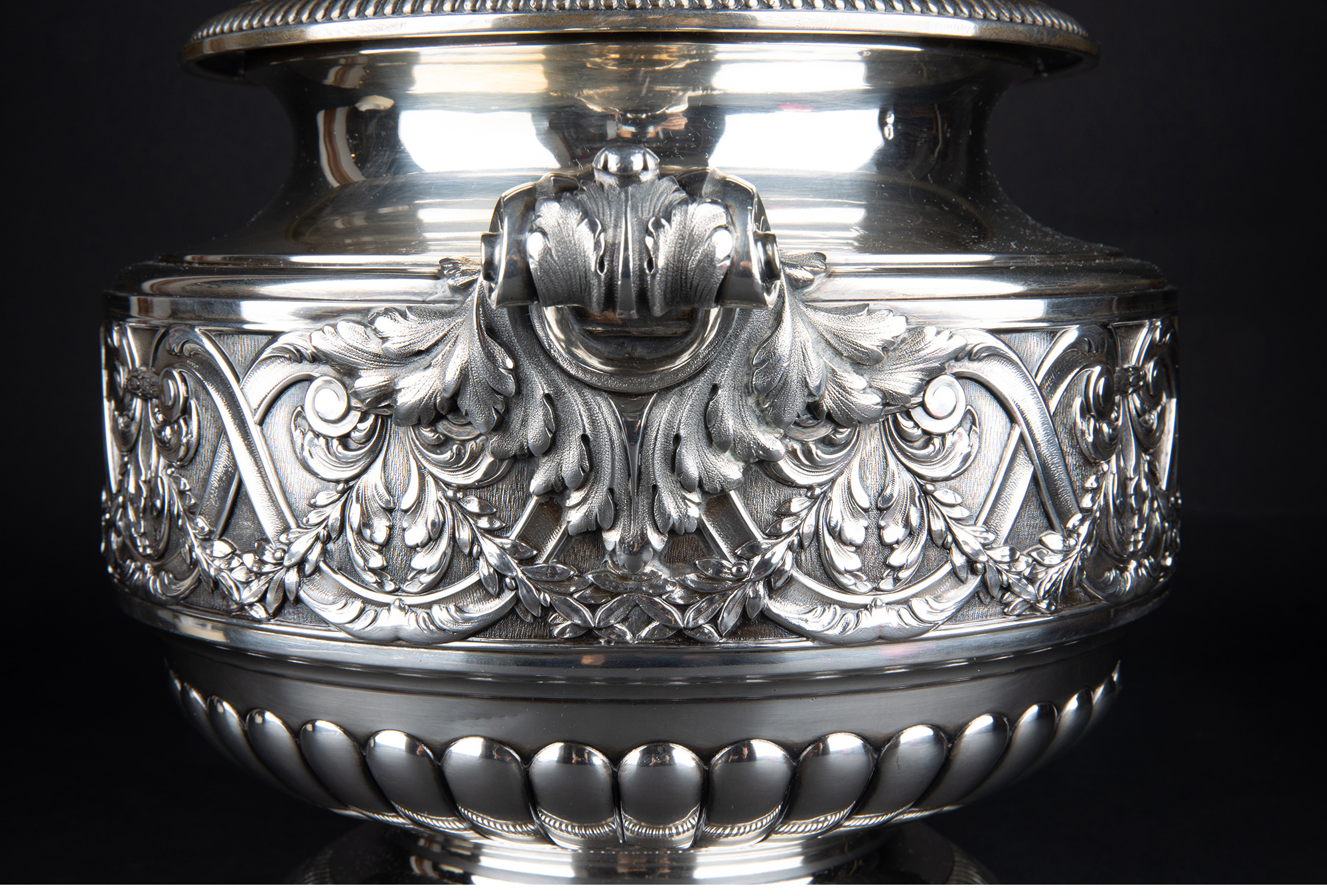 独角鹿西洋古董银器法国Olier&Caron路易十六风格纯银双耳香槟桶