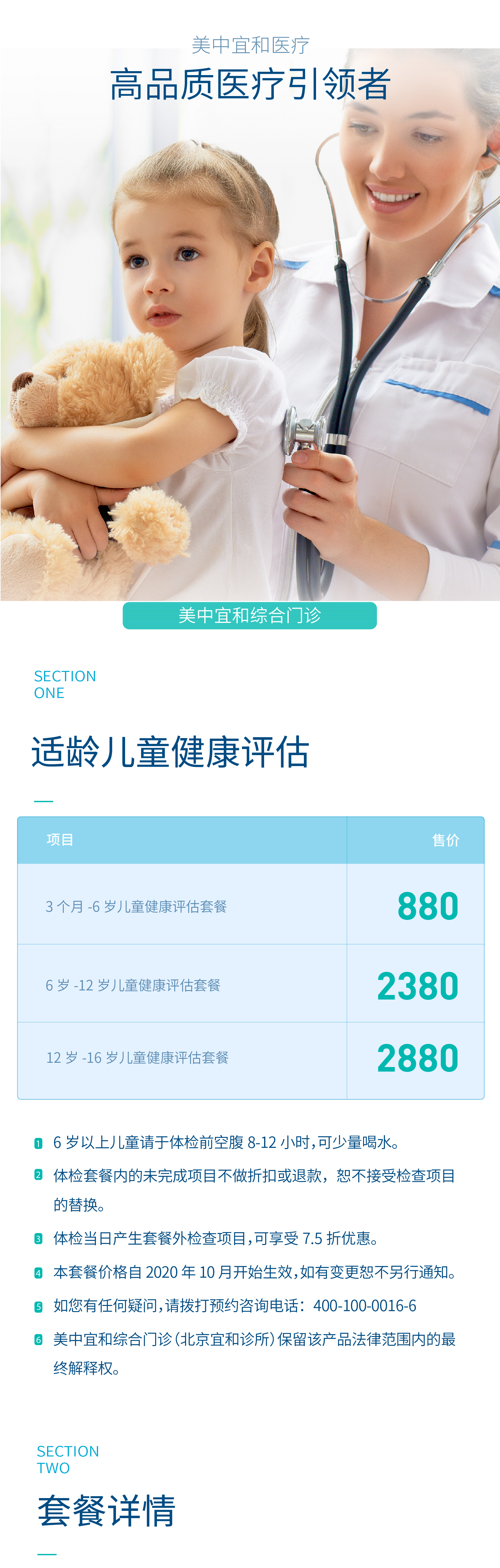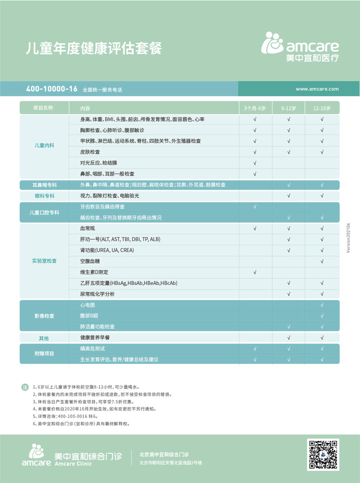 儿童健康评估(3个月-6岁龄)(适用于北京美中宜和门诊部)