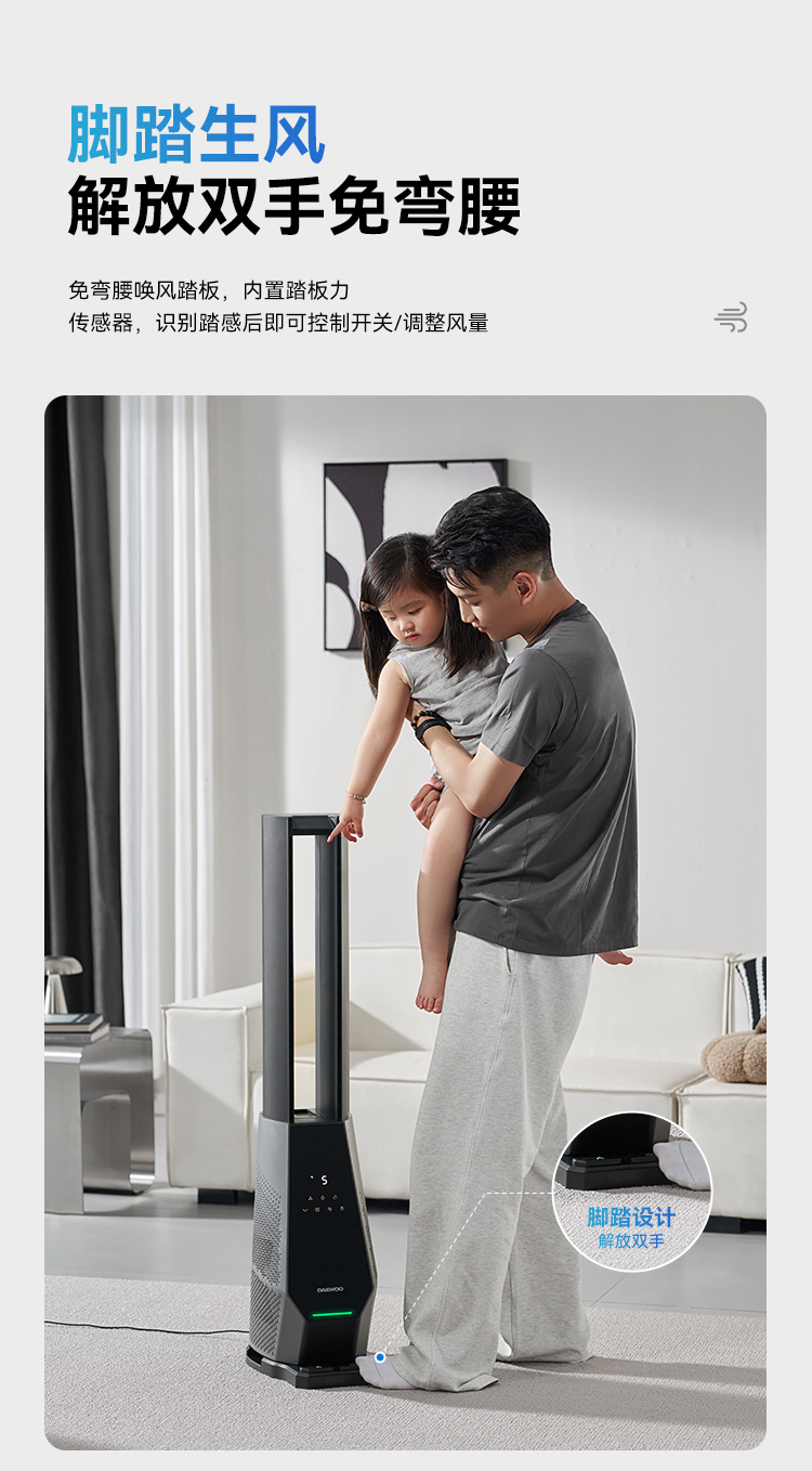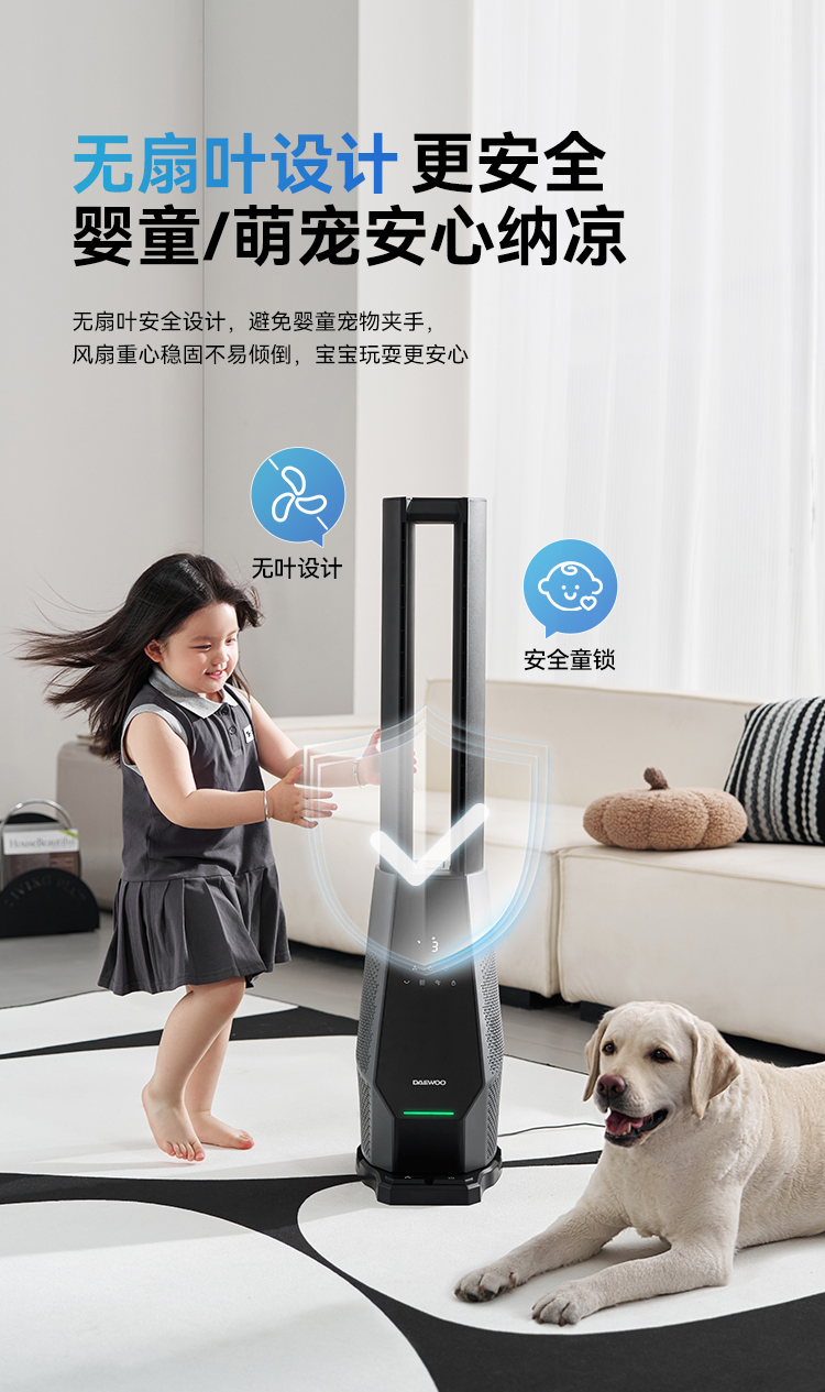 大宇无叶风扇AM09家用低噪无扇叶落地循环空气过滤2025年新款