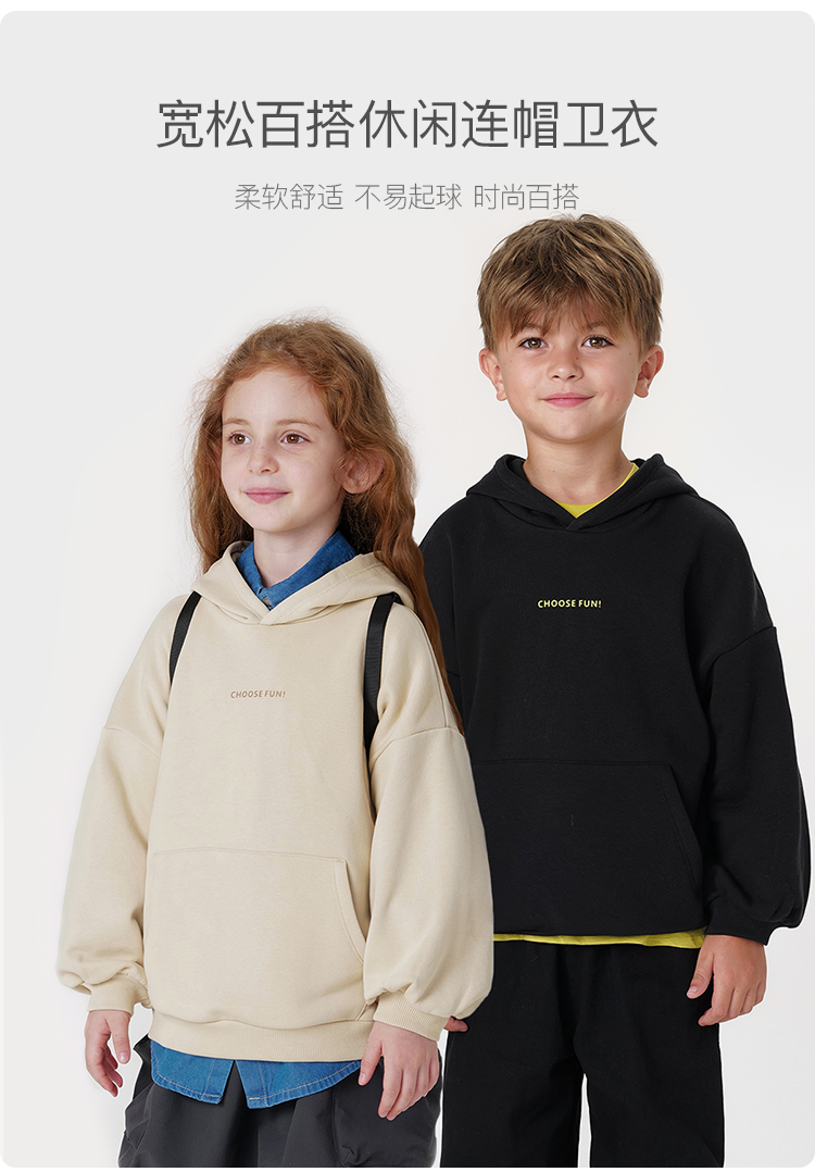 马克珍妮秋装新款男女童超舒棉时尚宽松字母连帽卫衣231711