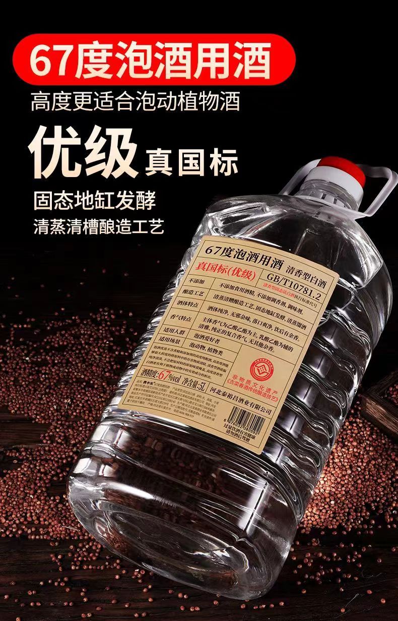[泡药酒]67度10斤-高度泡酒白酒泡人参枸杞鹿茸用酒清香大桶散酒纯粮5L