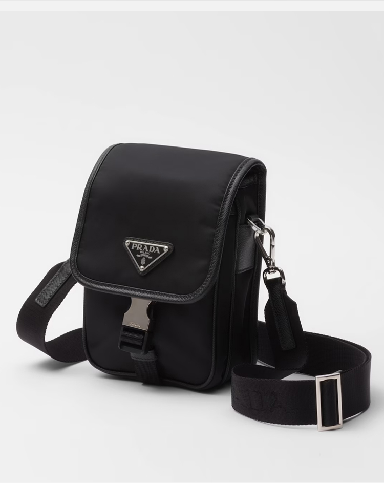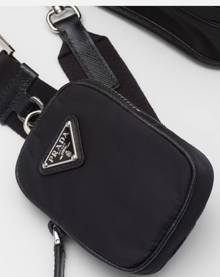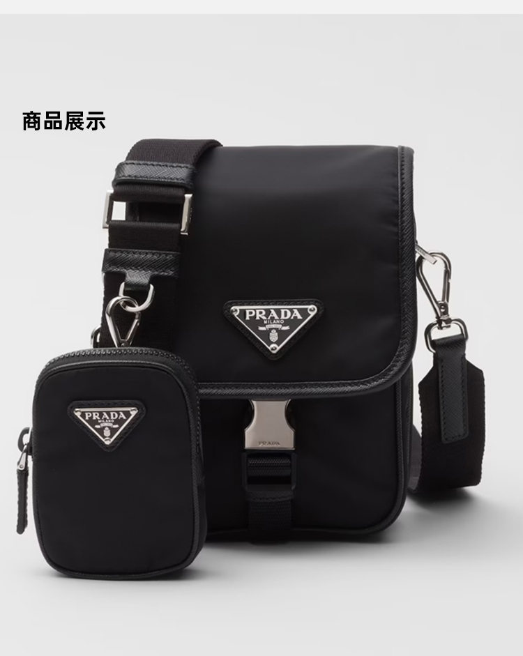 PRADA 普拉达 男士 Re-Nylon 和 Saffiano 皮革珐琅金属三角形徽标单肩包 黑色 2VD043 2DMH F0002 XOP