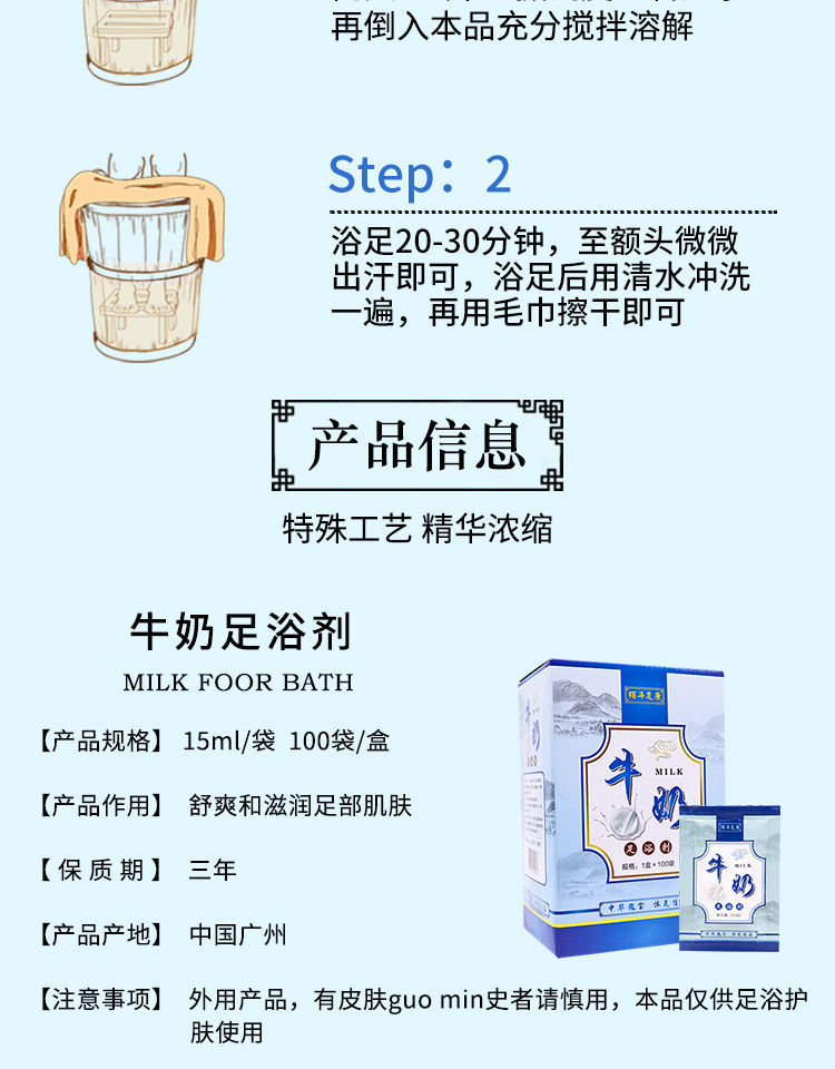 牛奶泡脚足浴包香醋液滋润嫩肤泡脚液艾草生姜足疗药柏年足康袋装