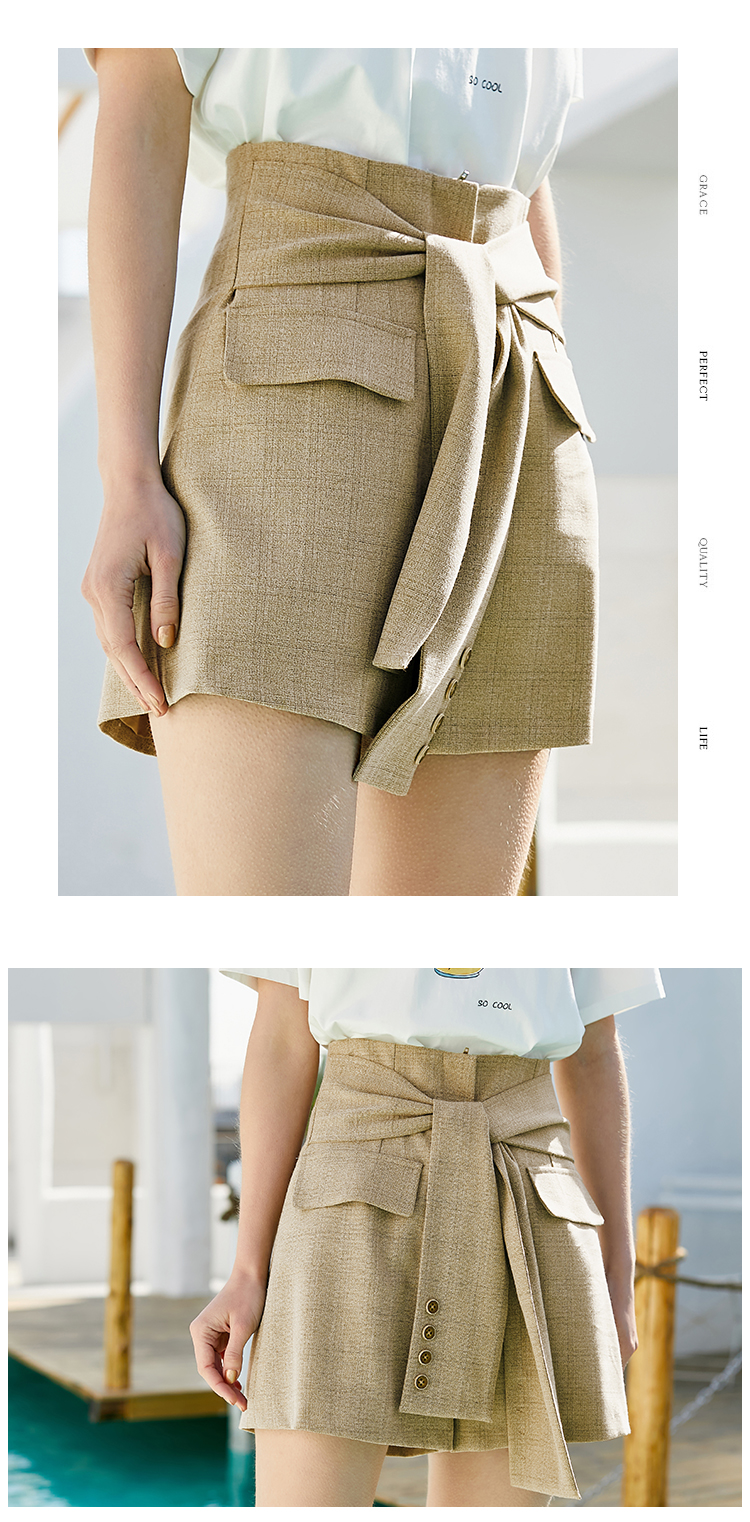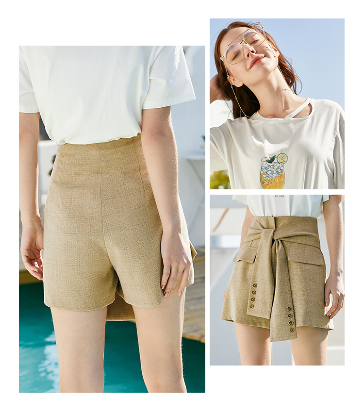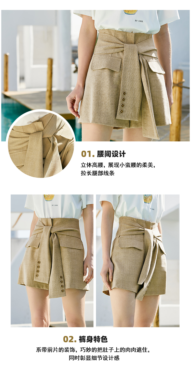 欧芮儿2020春装新款高腰显瘦格子西装休闲裤女不规则短裤宽松阔腿
