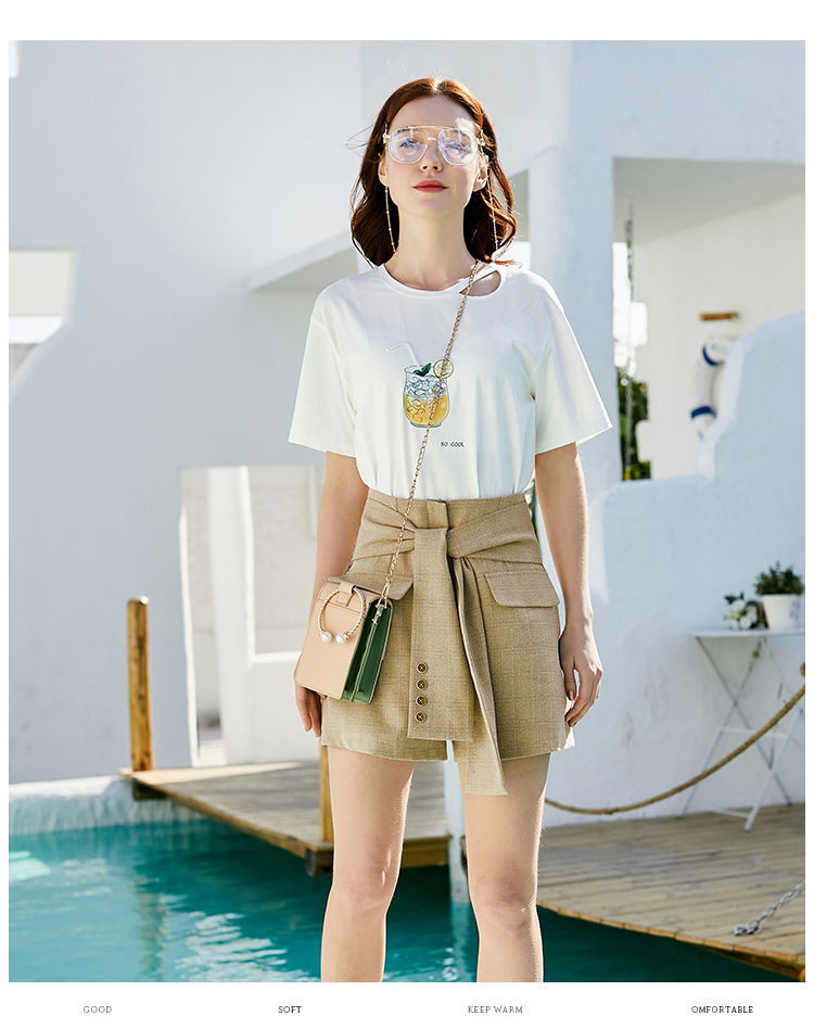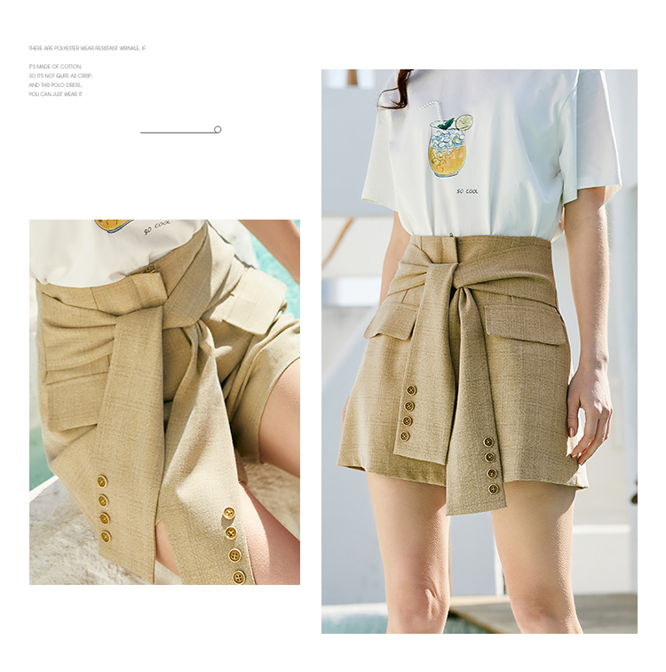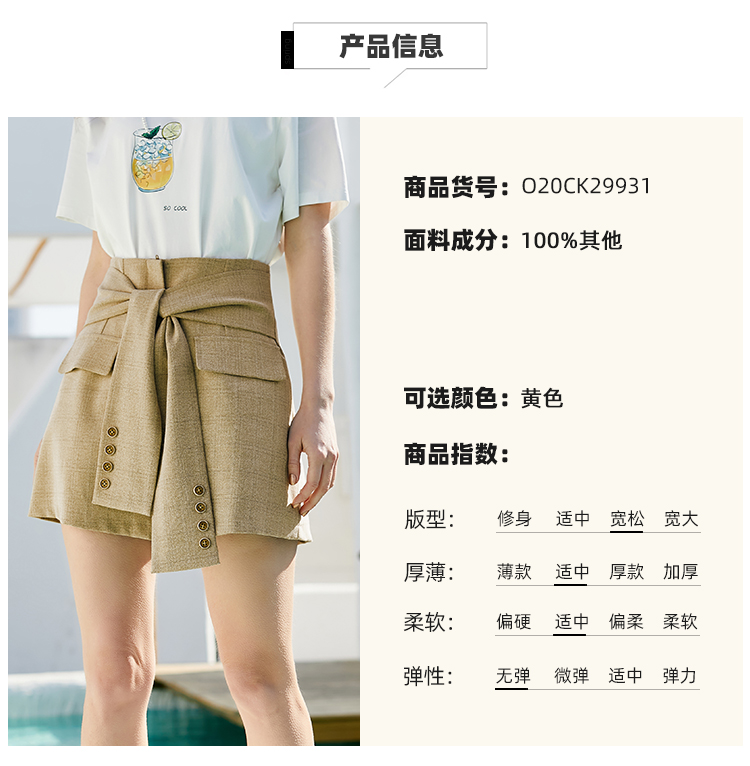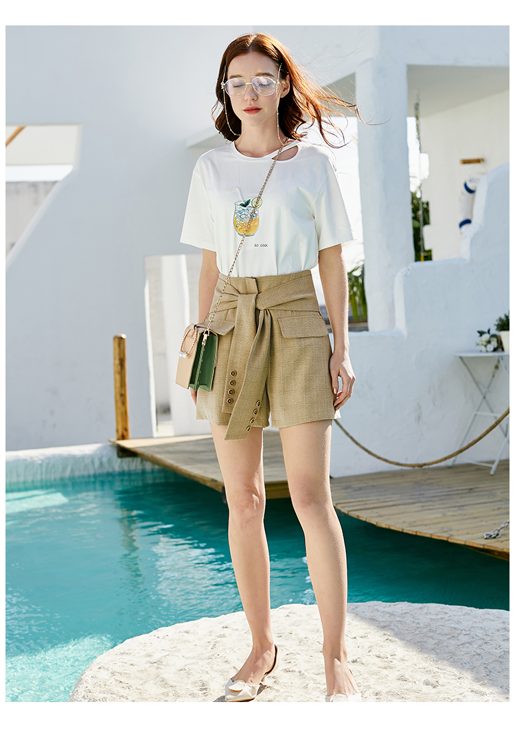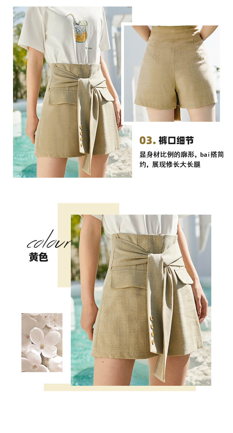 欧芮儿2020春装新款高腰显瘦格子西装休闲裤女不规则短裤宽松阔腿