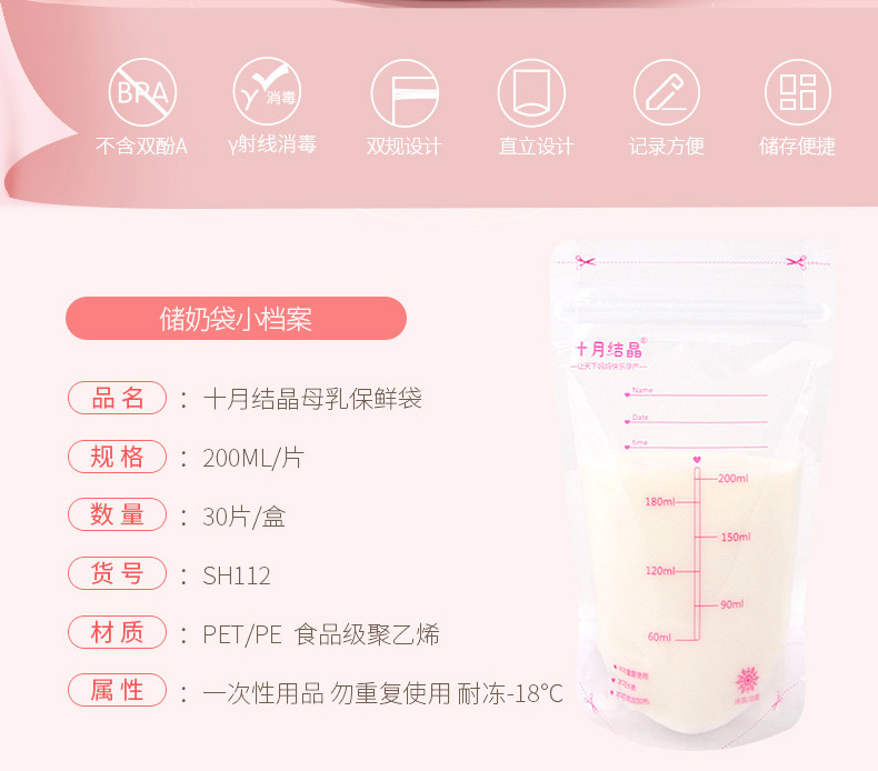 【十月结晶】十月结晶母乳保鲜袋 储奶袋200ml*30片