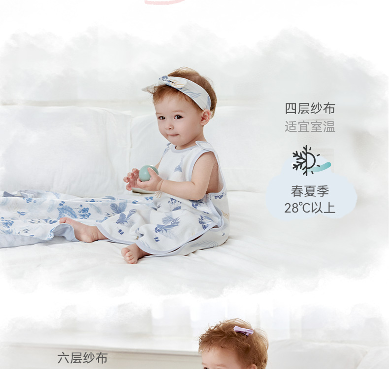 【2025年春夏新款】i-baby/英伦宝贝自然生长纱布恒温背心睡袋夏季婴儿薄款