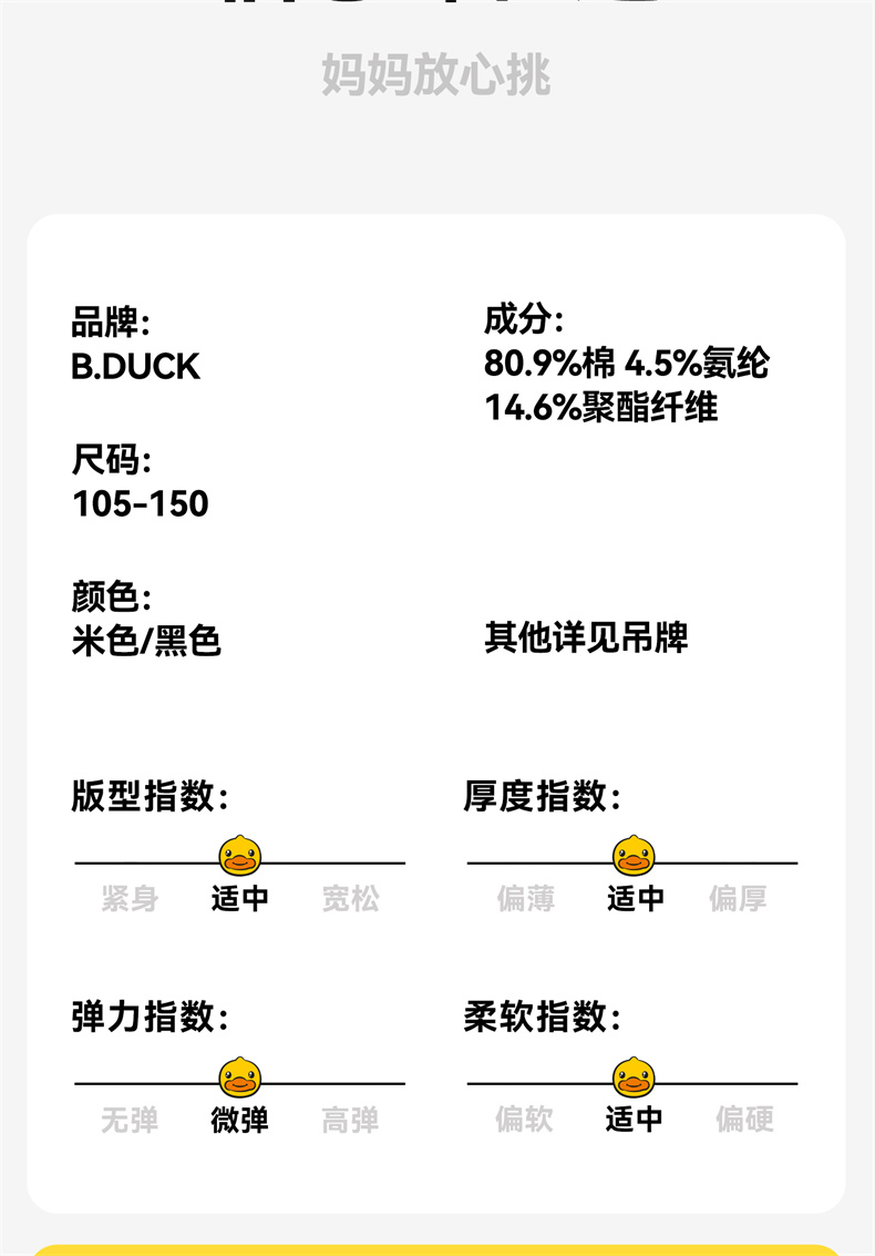 B.Duck小黄鸭童装春秋针织裤105-150 BF1563950