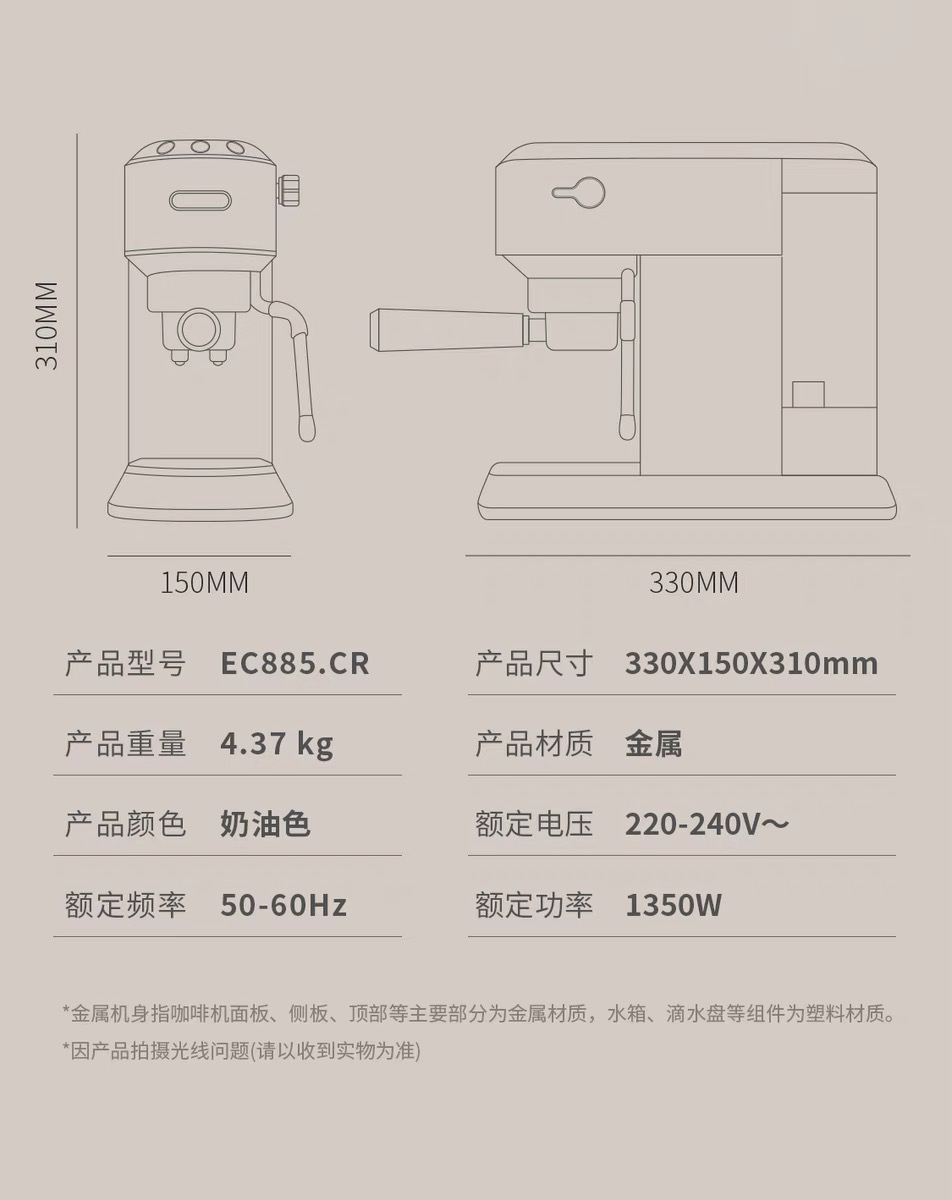 Delonghi/德龙 咖啡机EC885.CR不锈钢打奶泡家用半自动