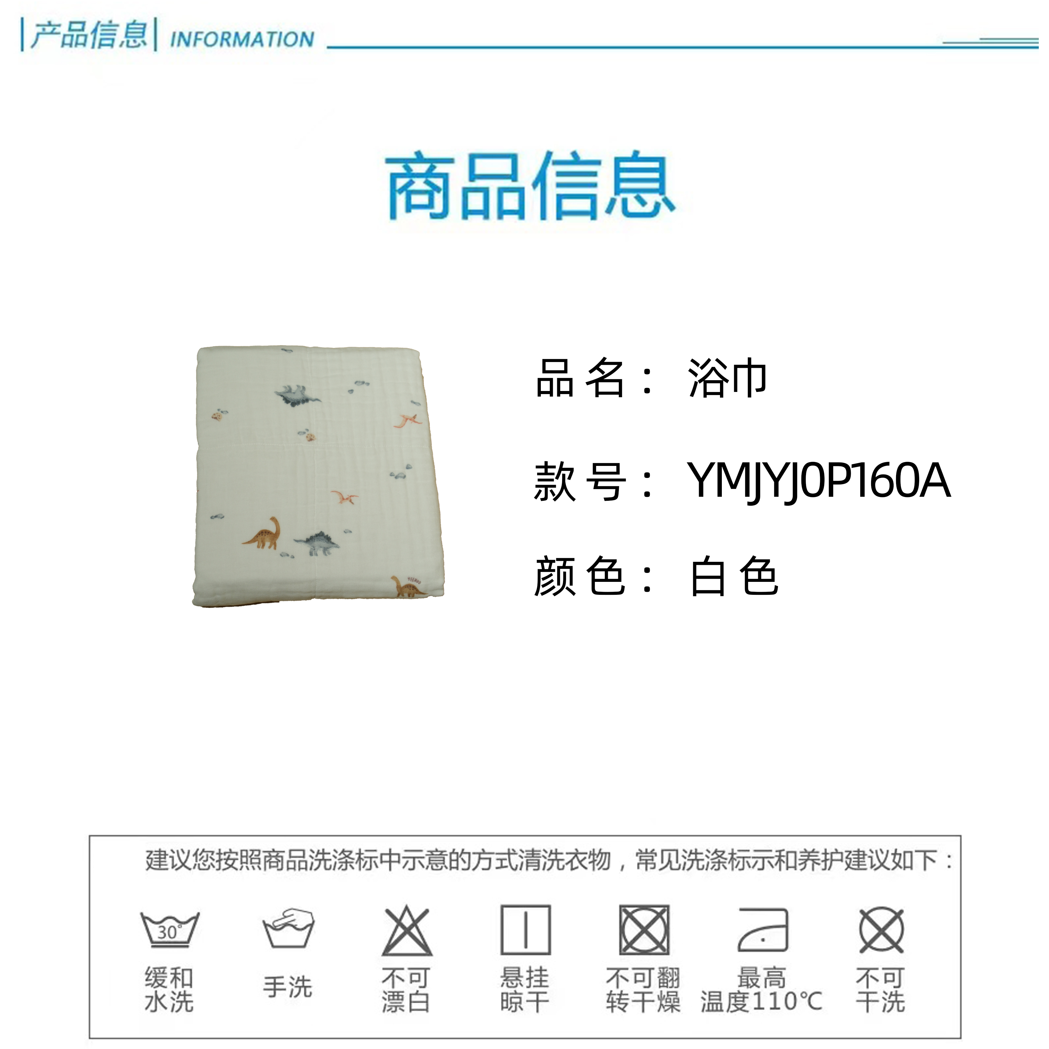 英氏-浴巾毛巾(秋)G3恐龙时代浴巾110*110英氏白