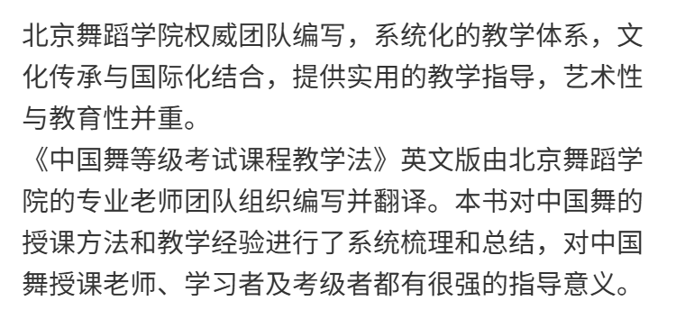 中国舞等级考试课程教学法(英文版)北京舞蹈学院编写翻译