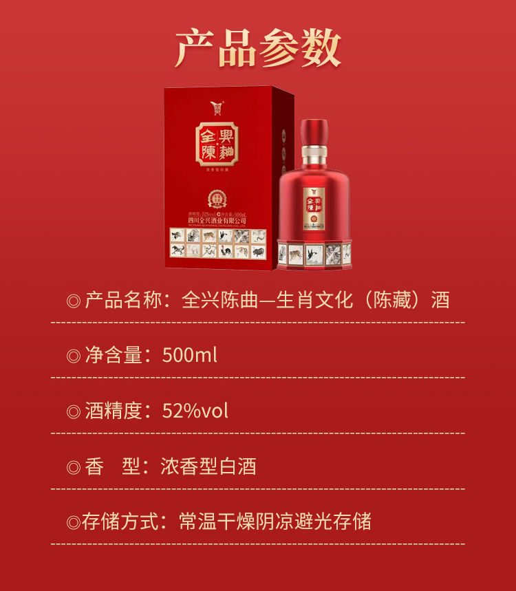 【新品】52度全兴陈曲陈藏生肖文化酒浓香型白酒500ML
