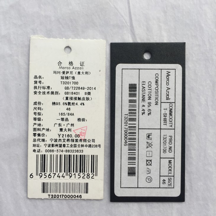 Marco Azzali 白底蓝绿领几何印花短袖POLO衫 T3201700