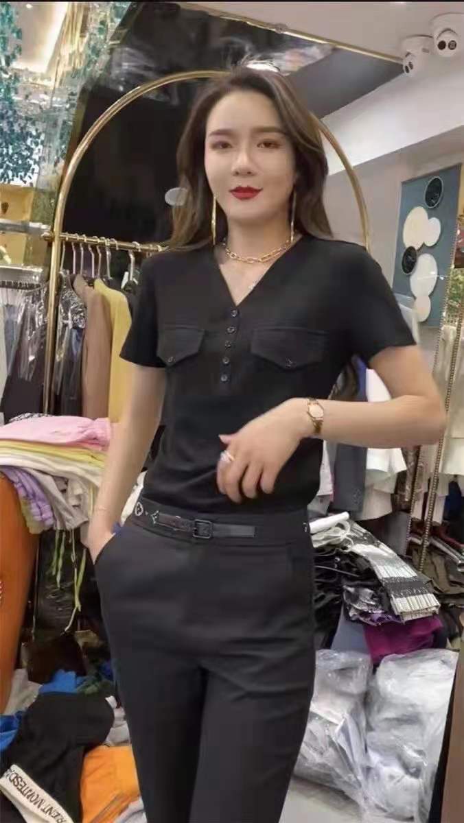 亿尚秀半袖8852有黑色和白色两个颜色,涤棉面料有弹性,M、L、XL、2XL四个号从80-140斤都可以穿着