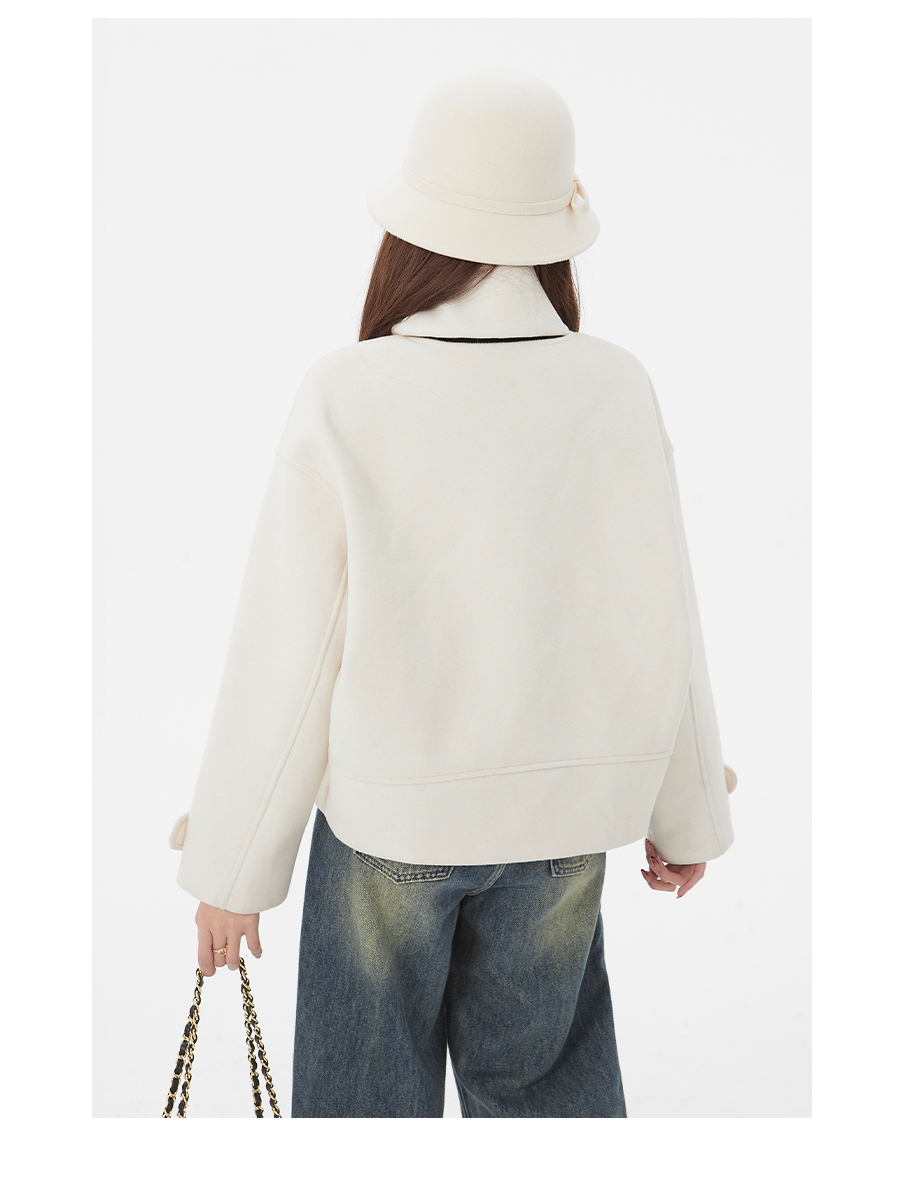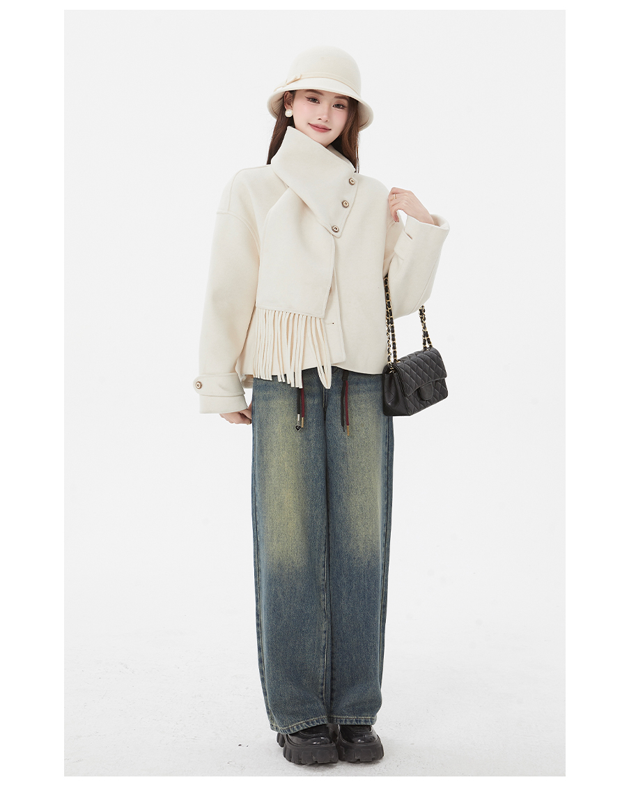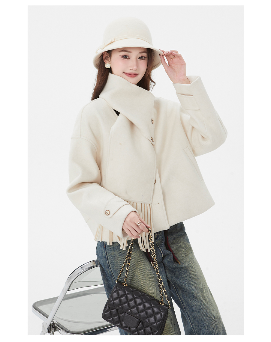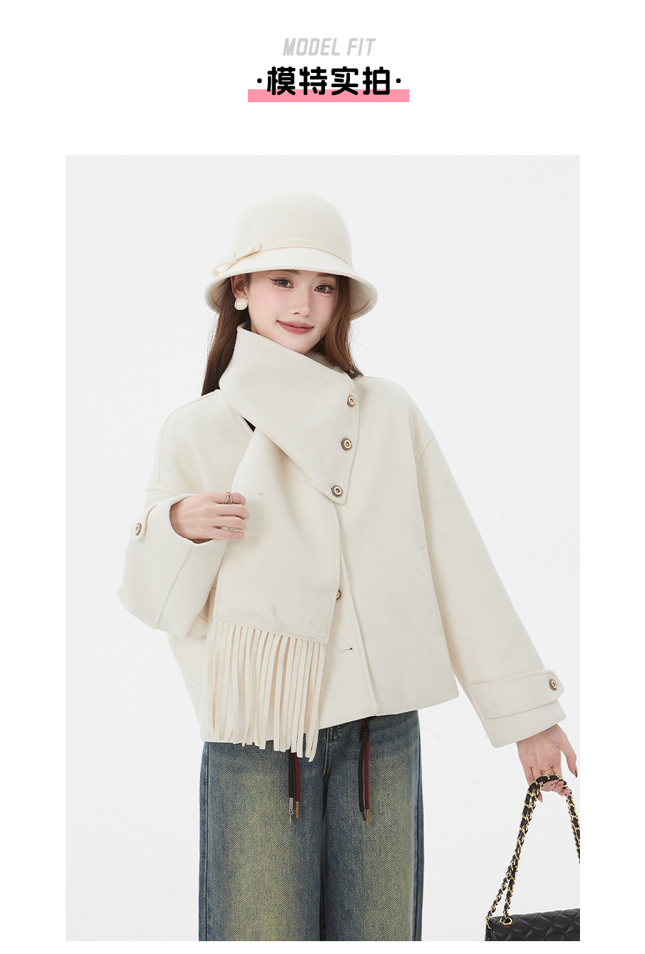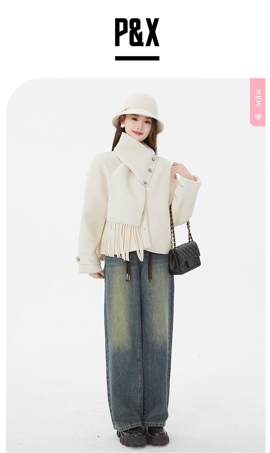 P&X设计师女装春季新款围脖设计梭织短款大衣825134039 杏色