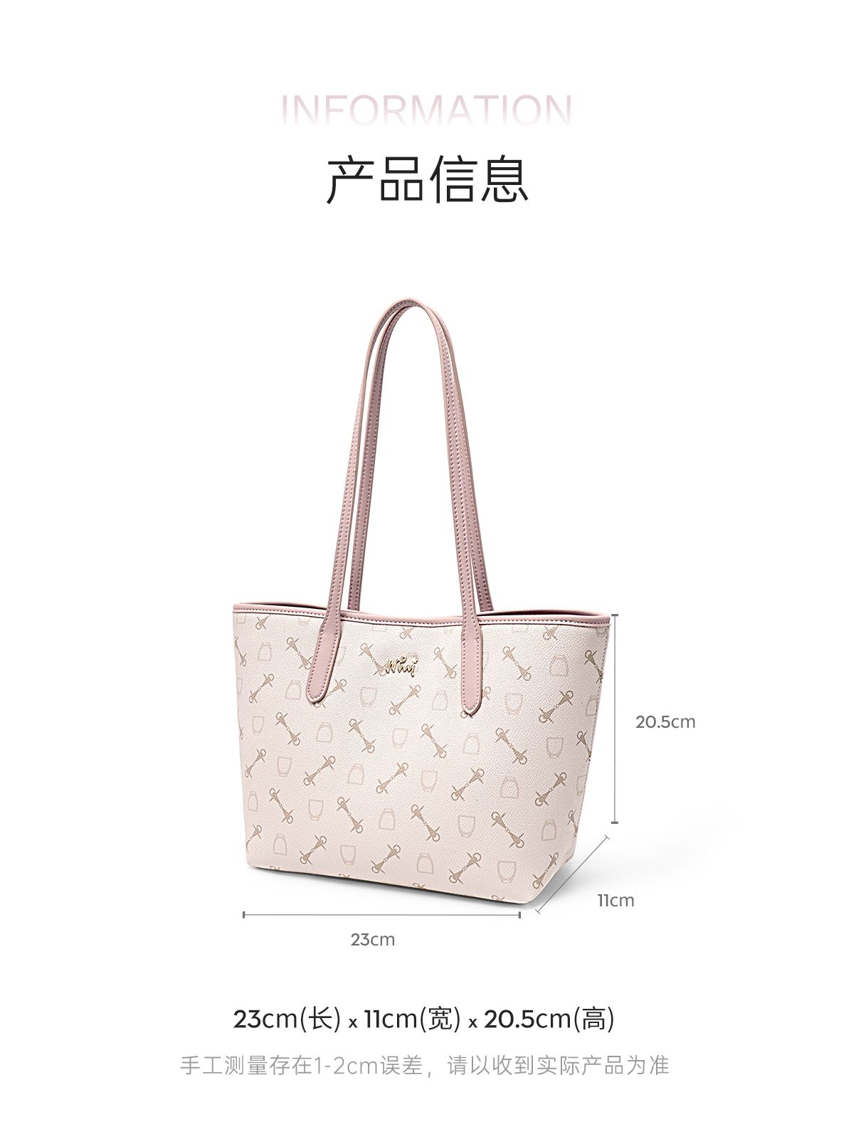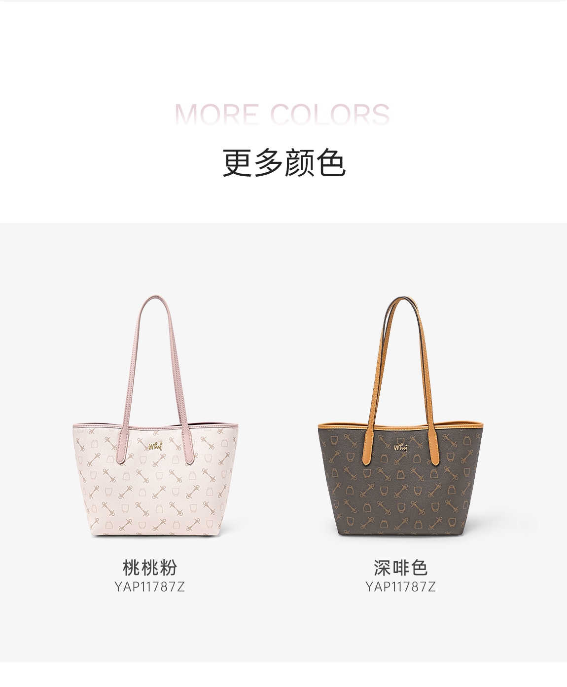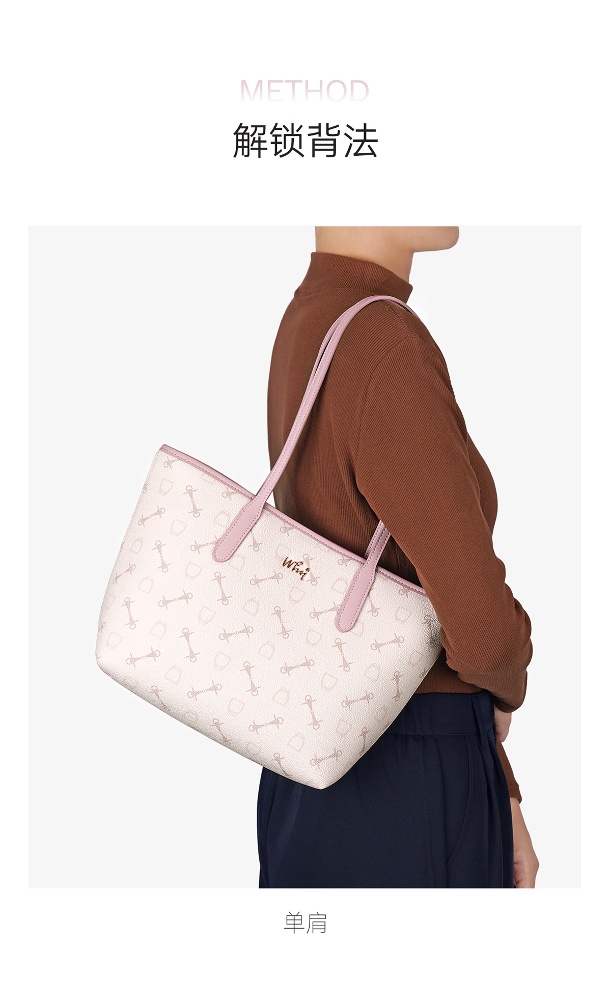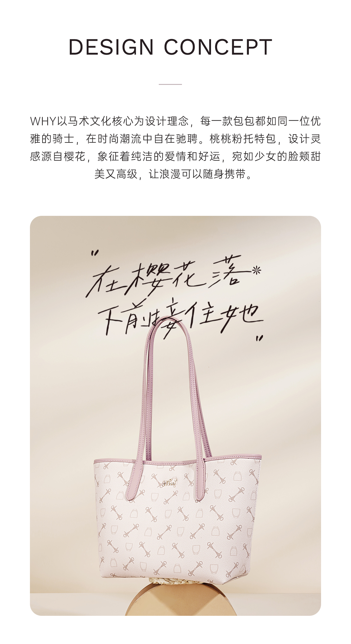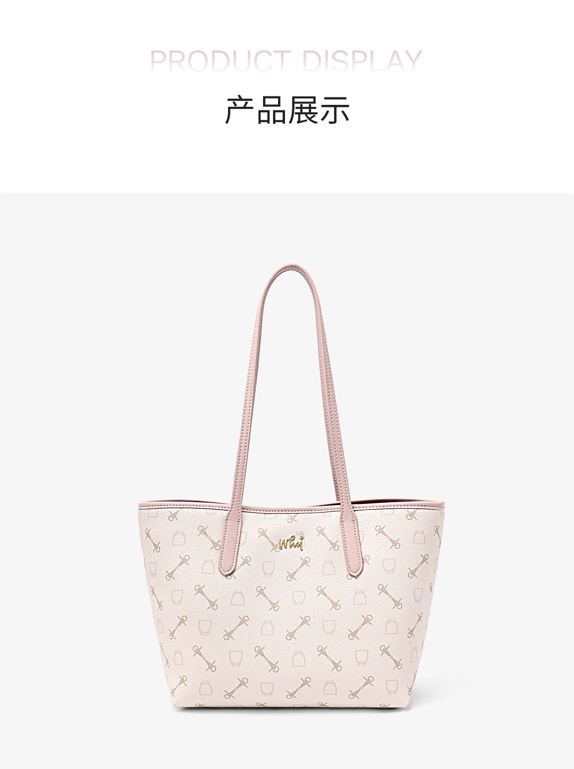 WHY新款印花托特包女2026夏季大容量单肩包粉色通勤手提包YAP11787Z