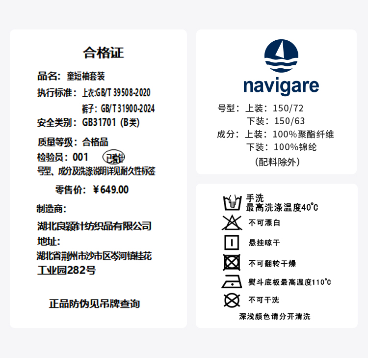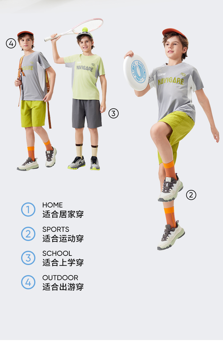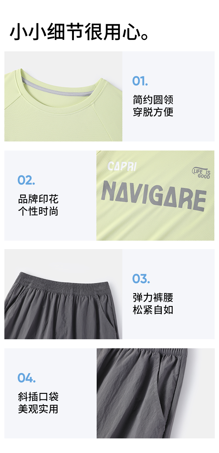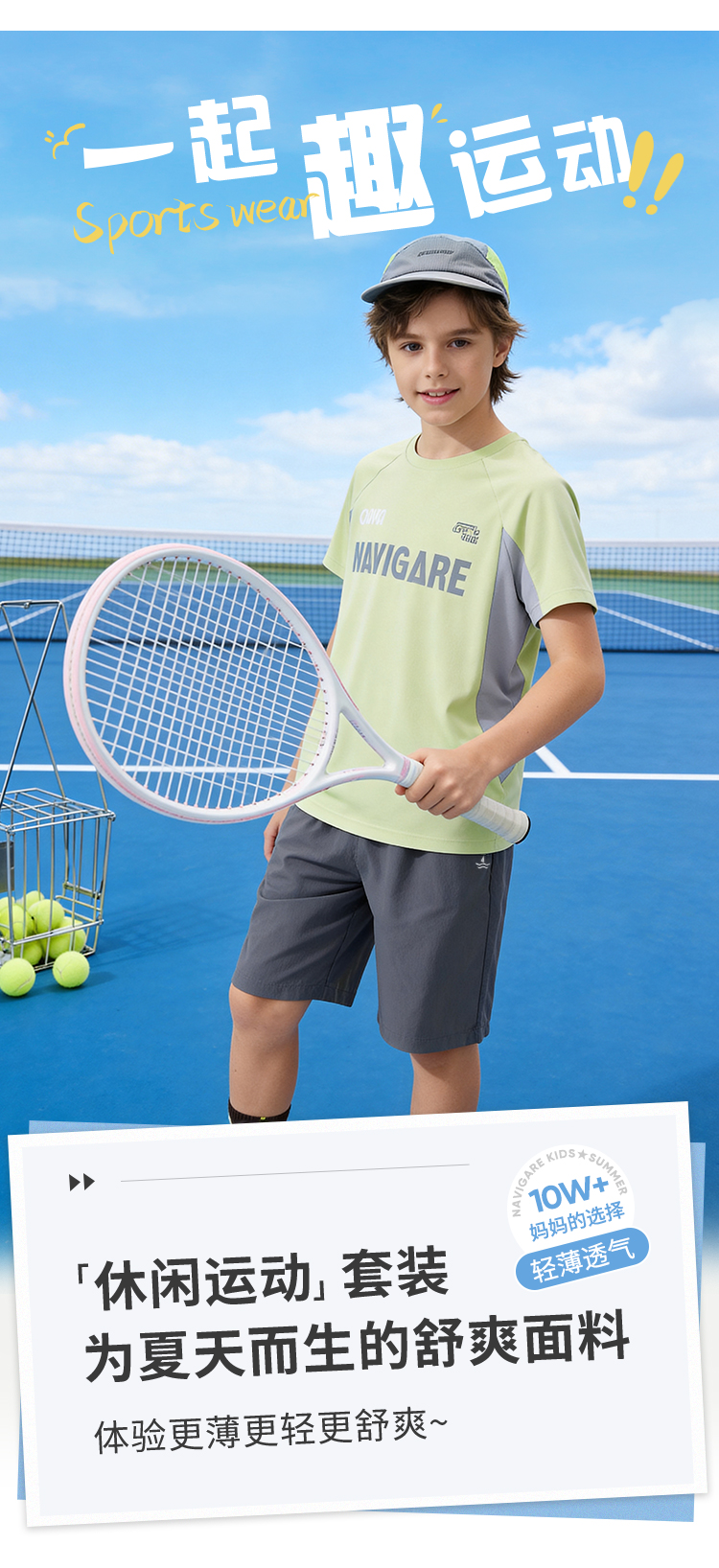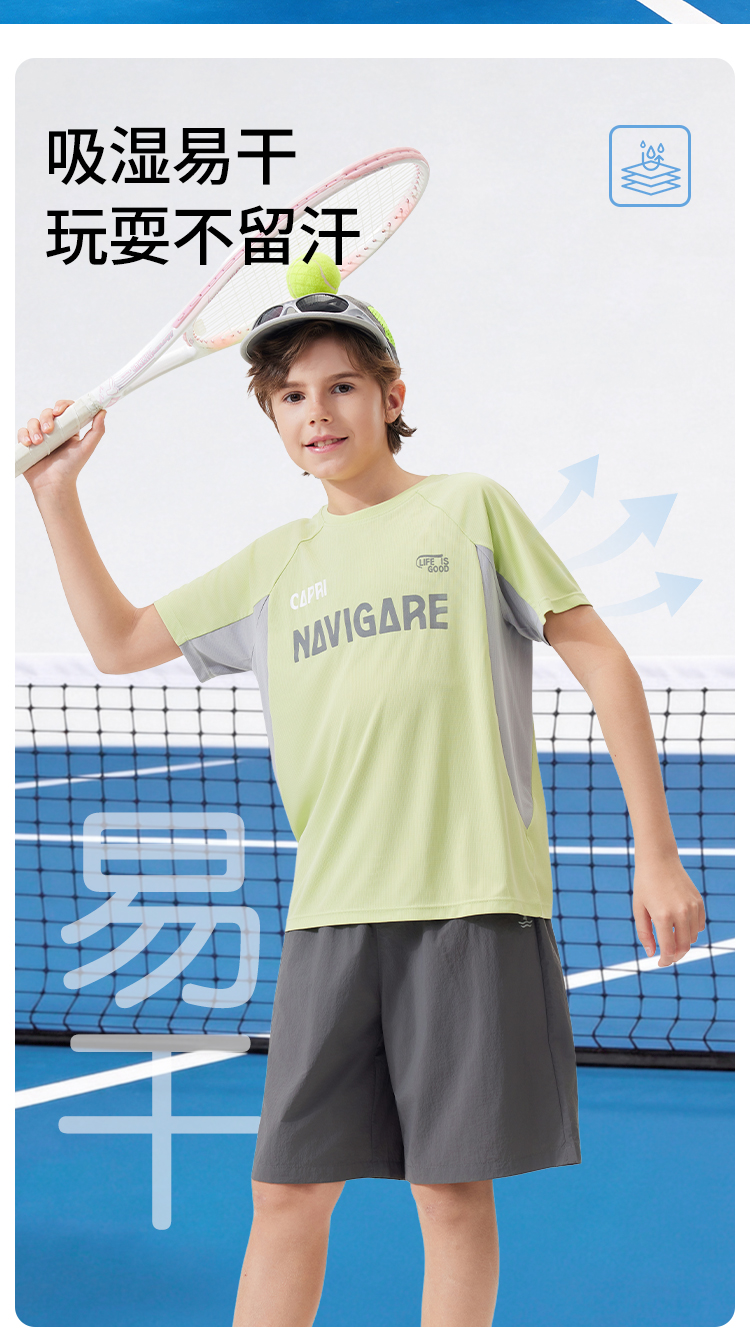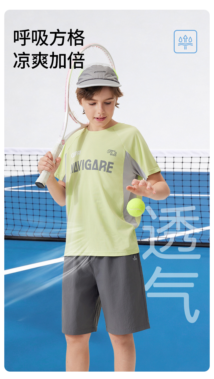 【速干2件套】【120-165】【纳维凯尔】Navigare男童夏季短袖短裤套装