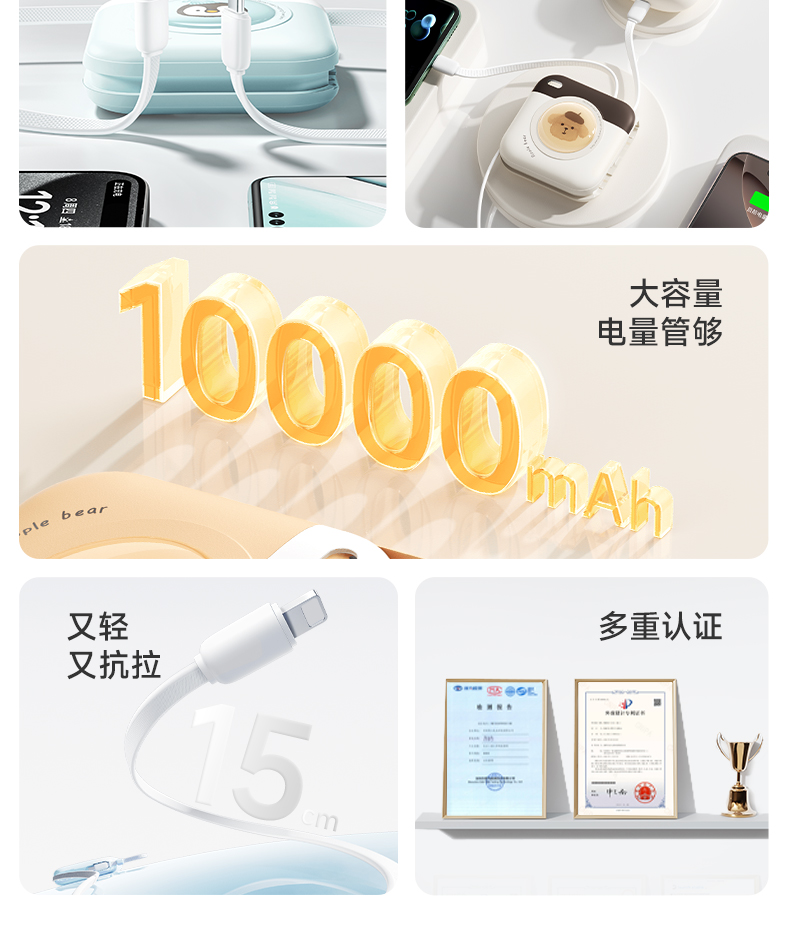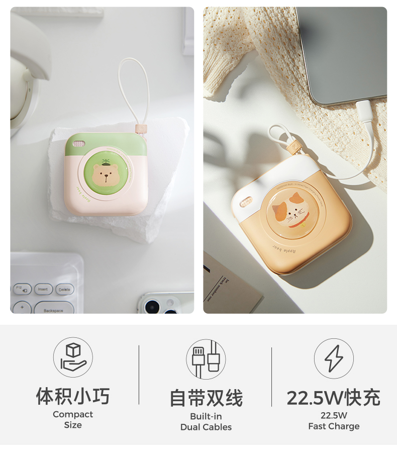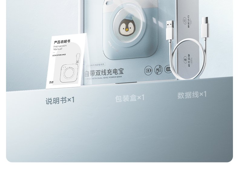 【分销】冇心×蓝忘机联名快充移动电源 22.5W双向闪充 10000mAh大容量 双线自带苹果安卓快充 迷你便携可登机充电宝