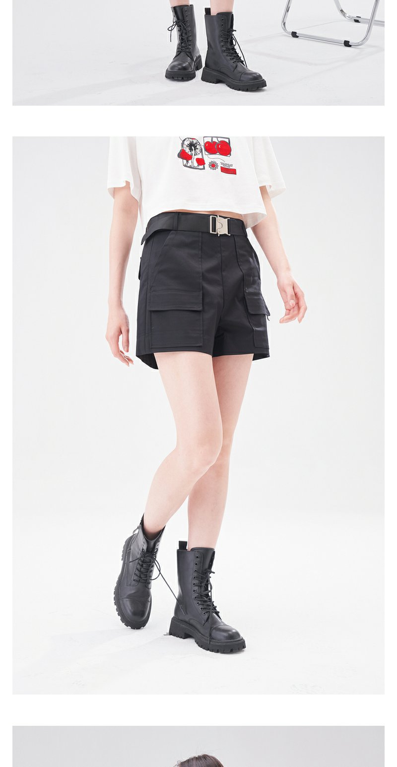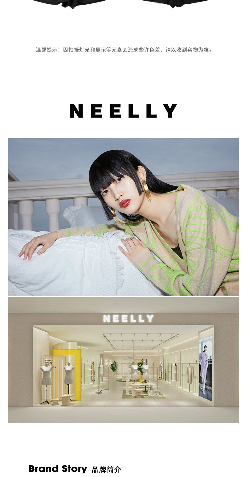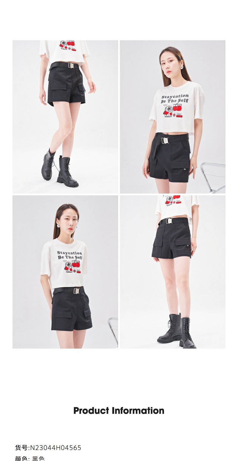 NEELLY纳俪商场同款2023夏季黑色短裤女系带阔腿休闲裤百搭直筒裤