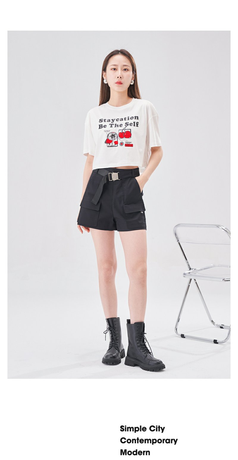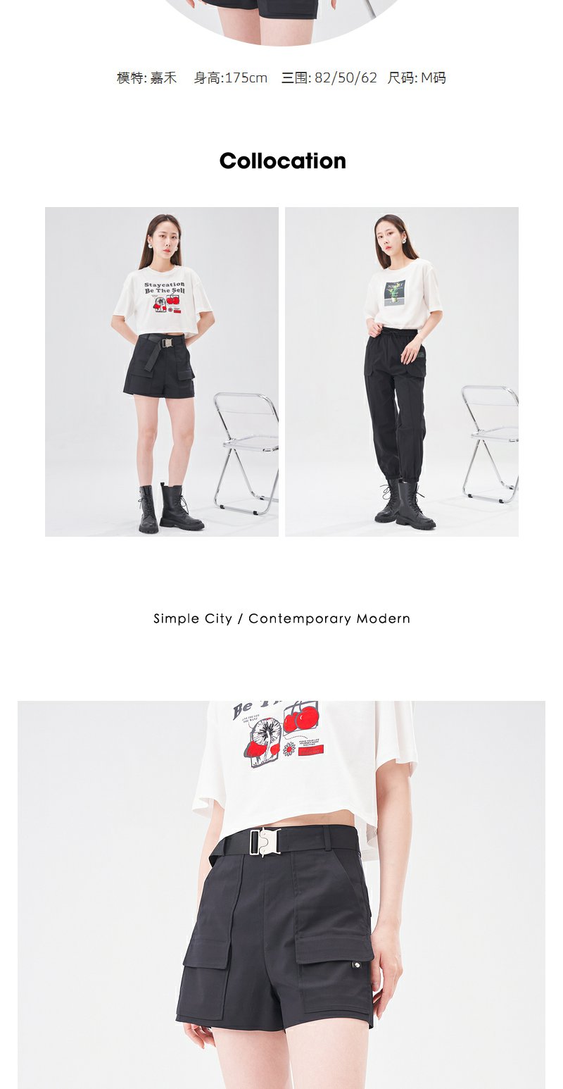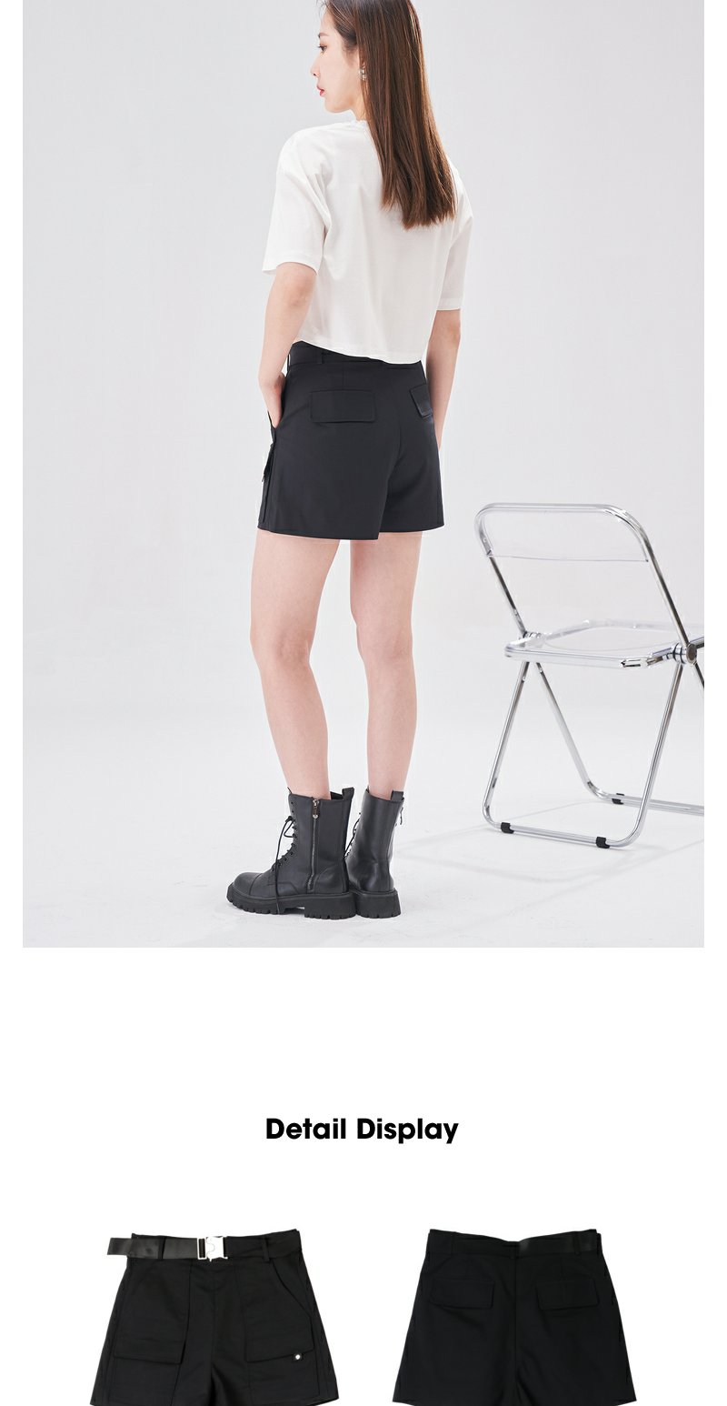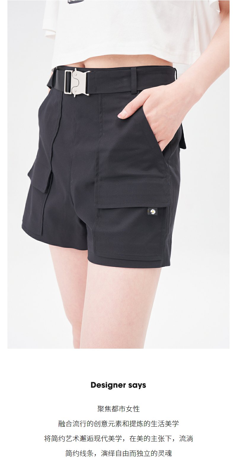 NEELLY纳俪商场同款2023夏季黑色短裤女系带阔腿休闲裤百搭直筒裤