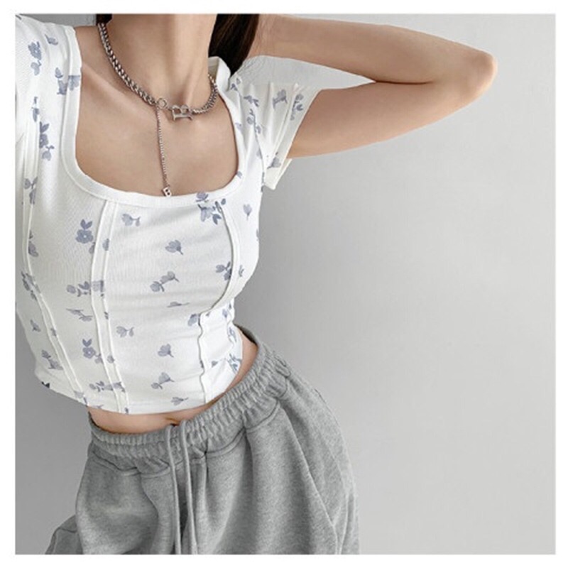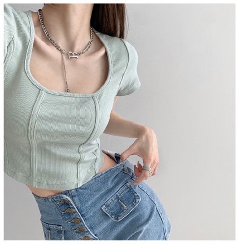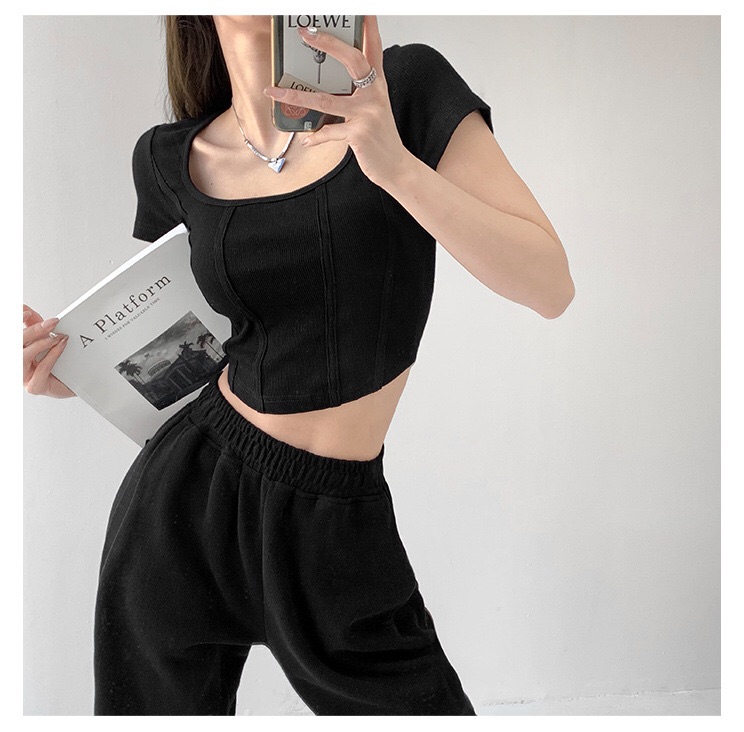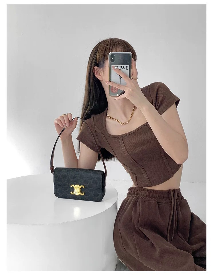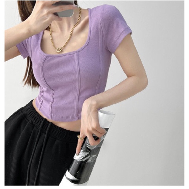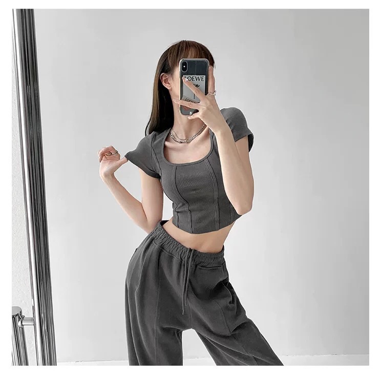 【社群供V】2022夏季新款 复古立体鱼骨线条修身打底衫ins风(下单后五天内发货)