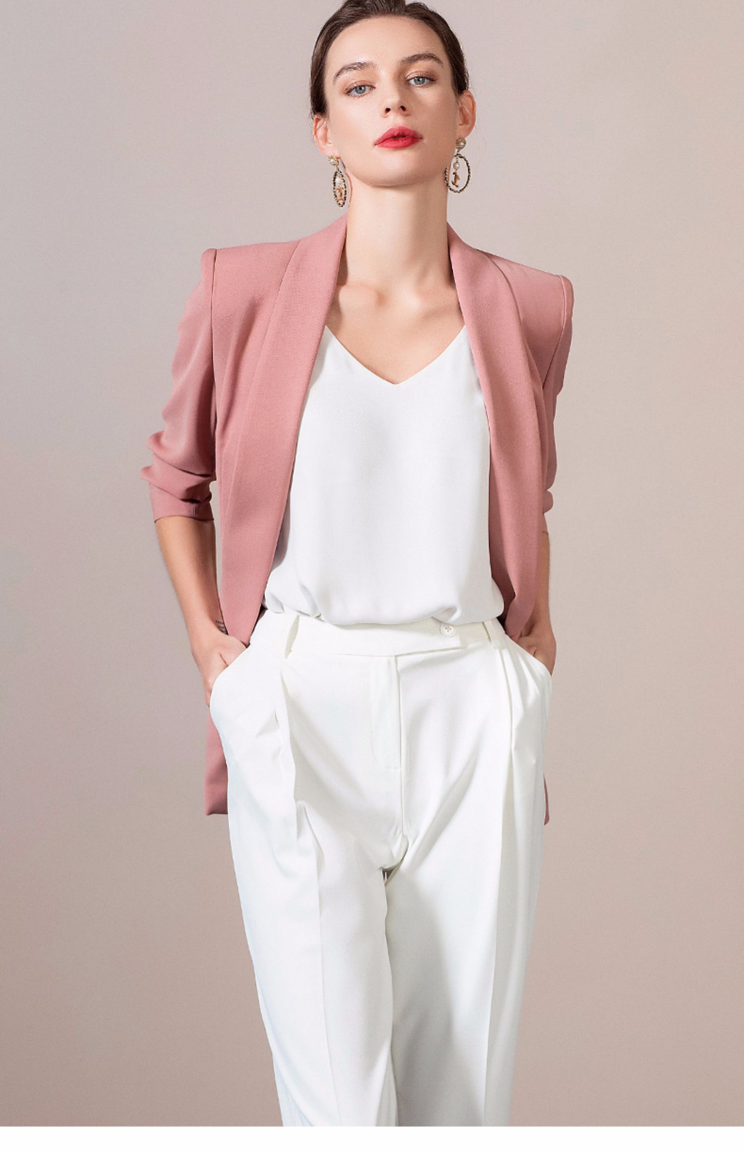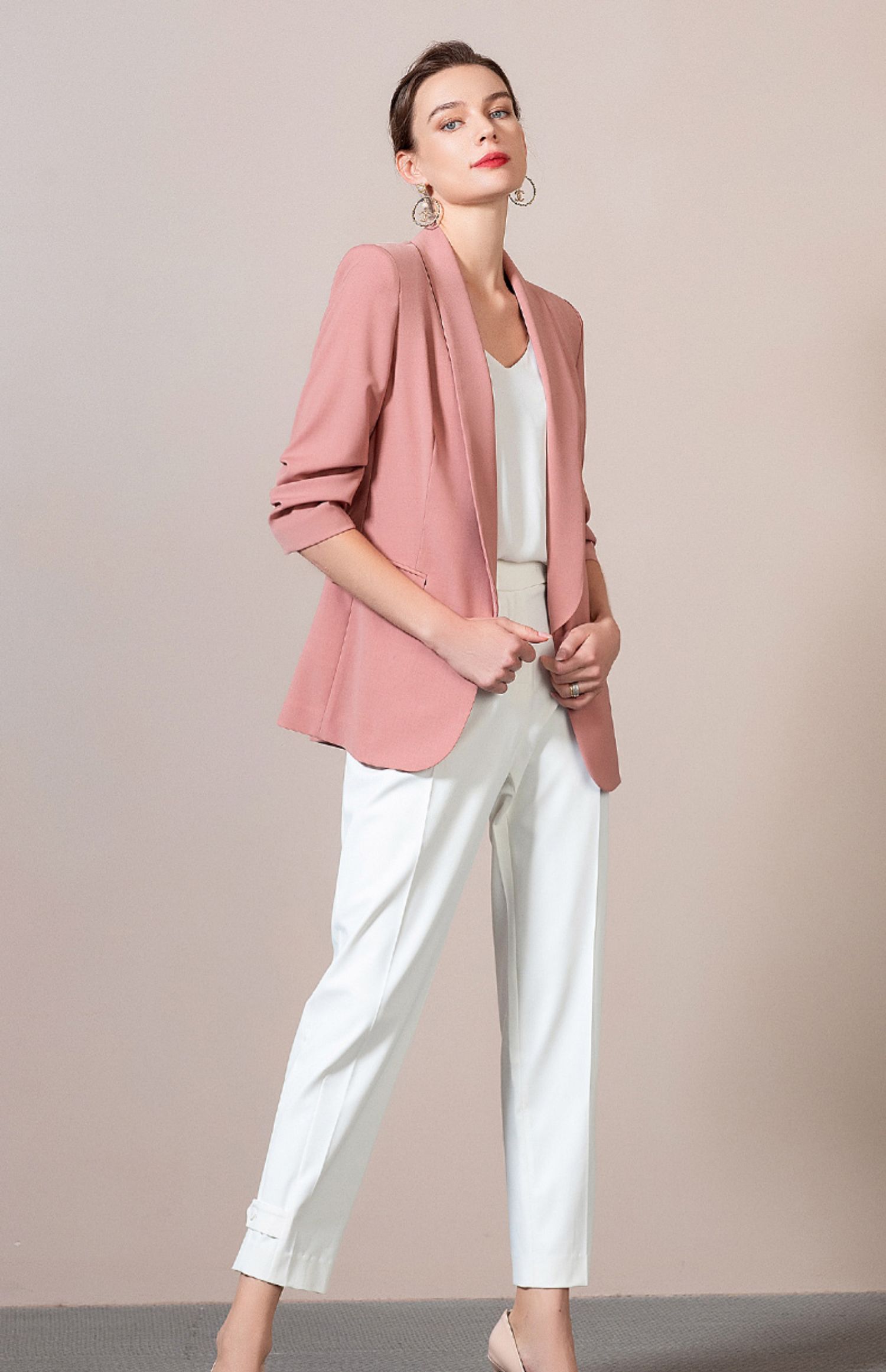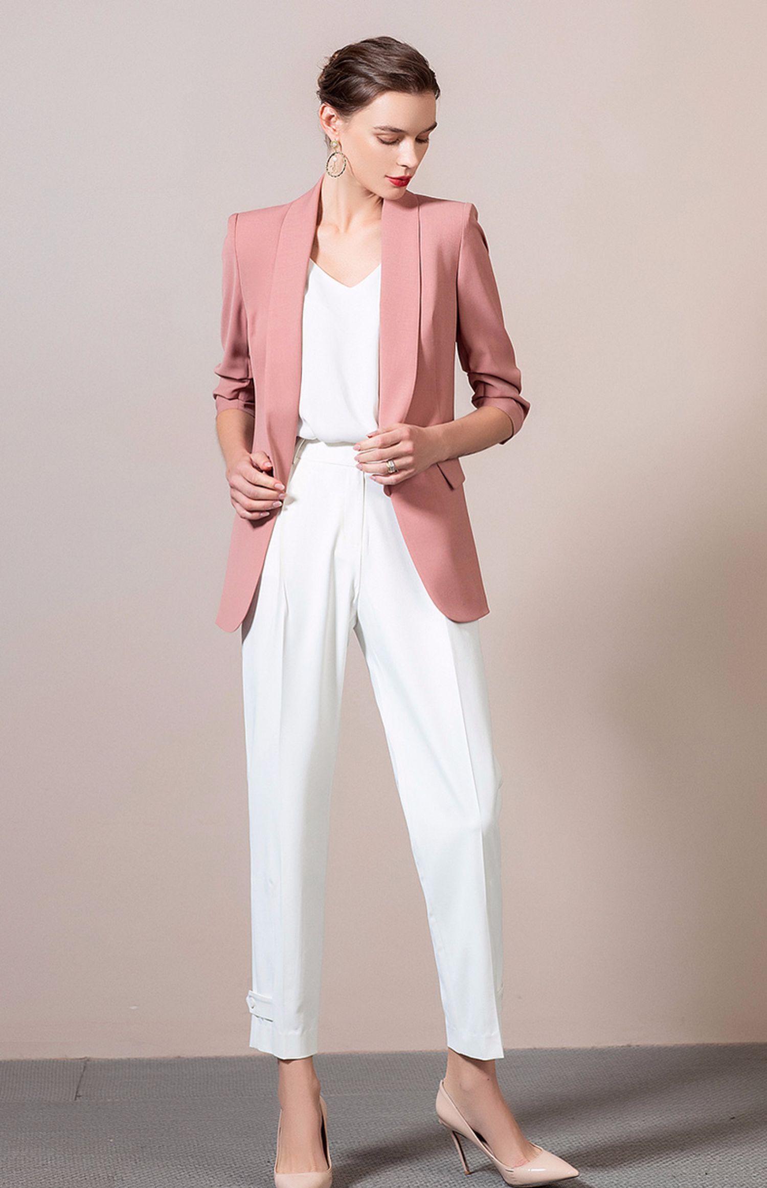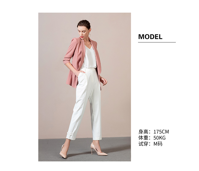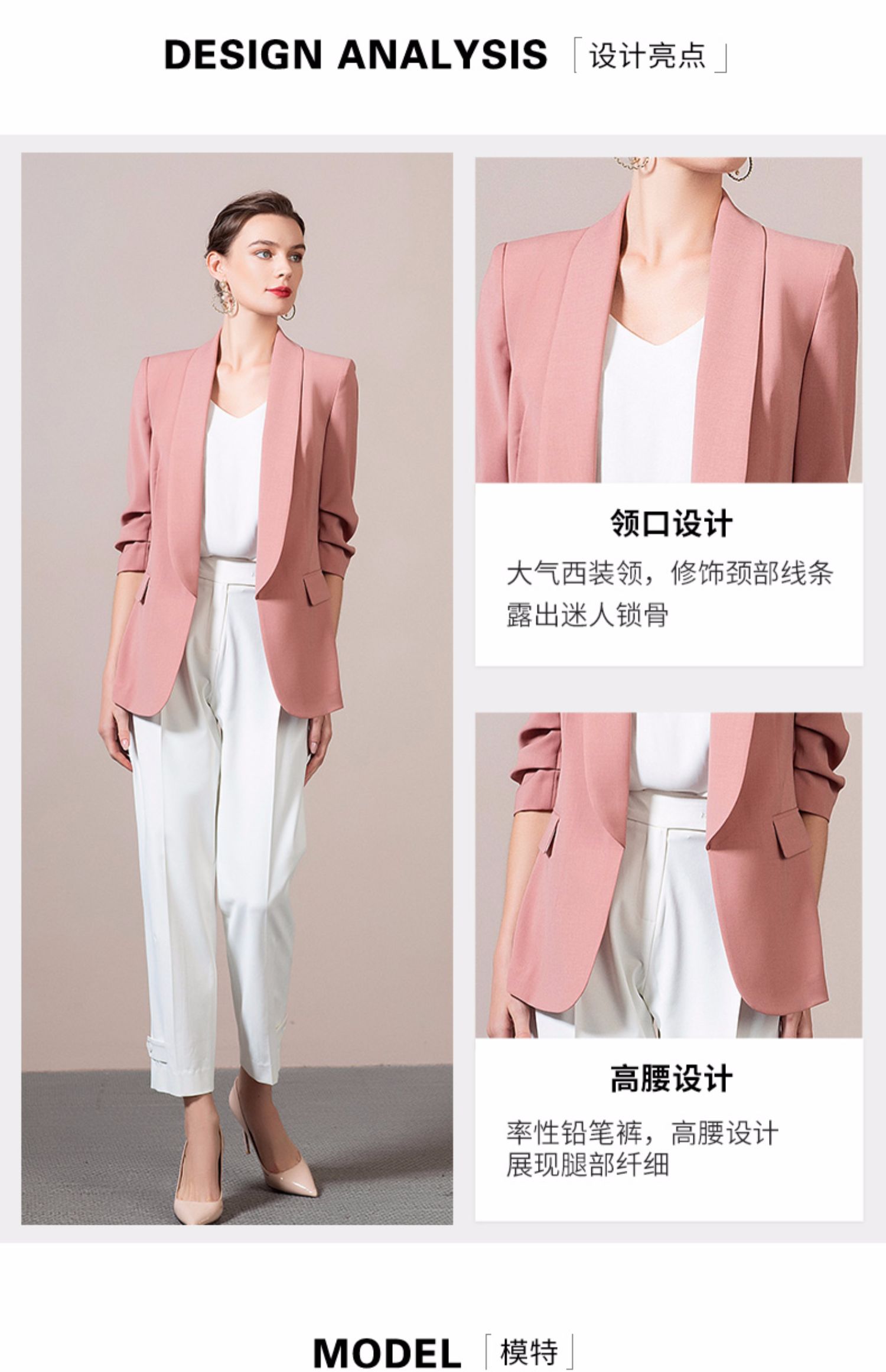 IWY/粉色西装套装女短袖职业装时尚气质面试通勤正装修身工作西服 212061C1+212072P1(粉)