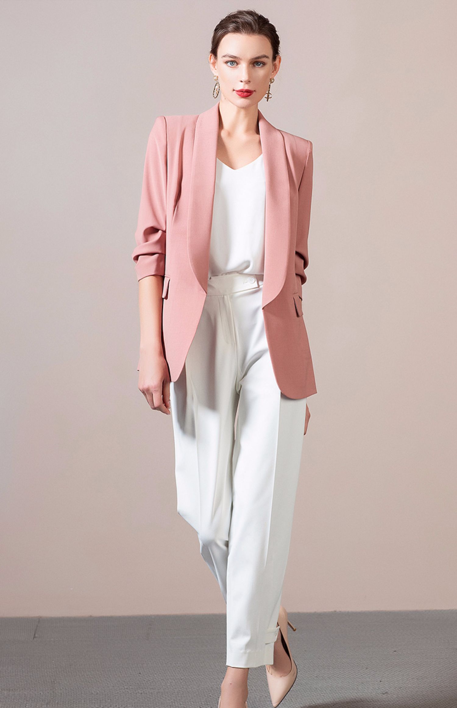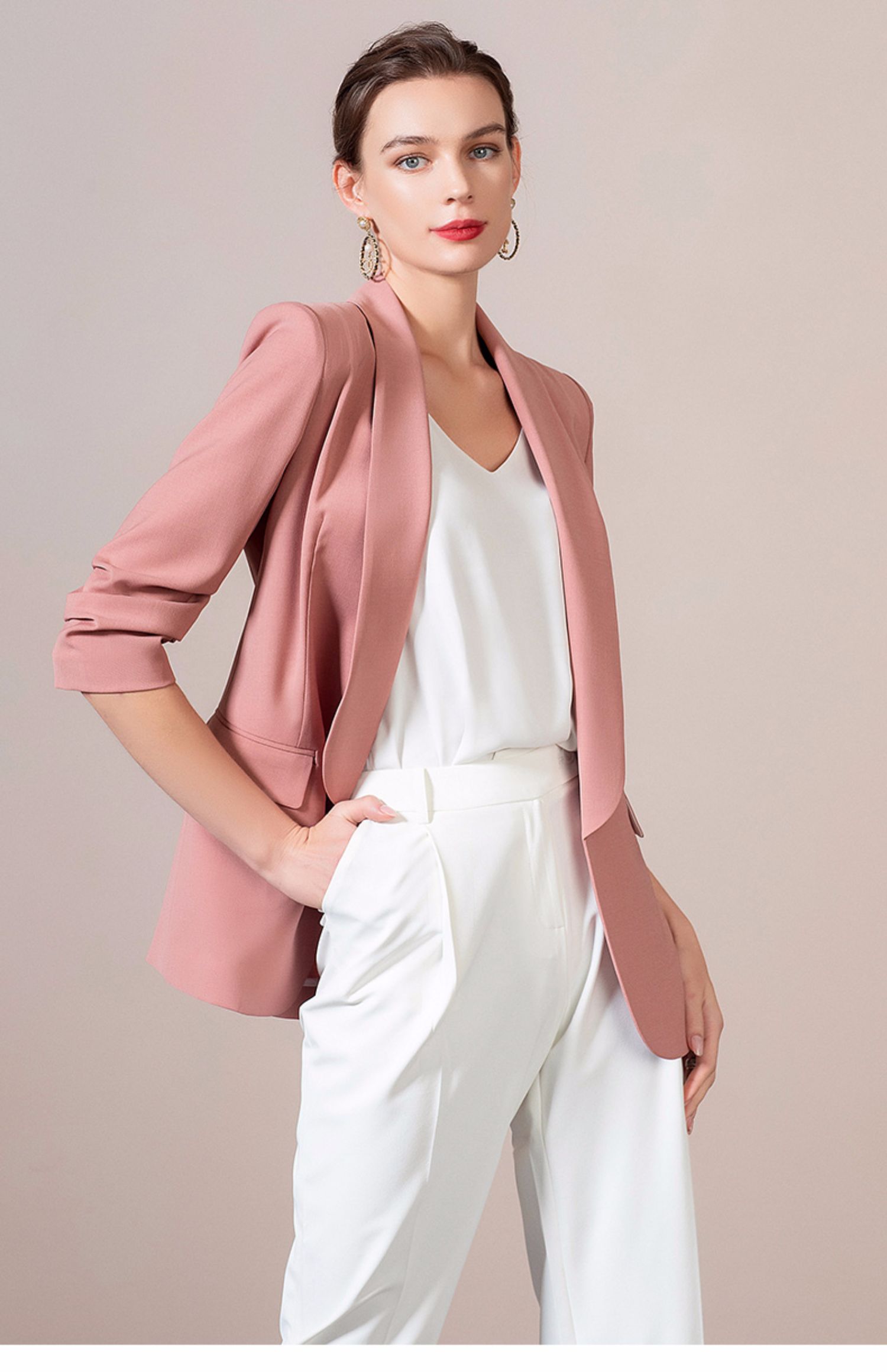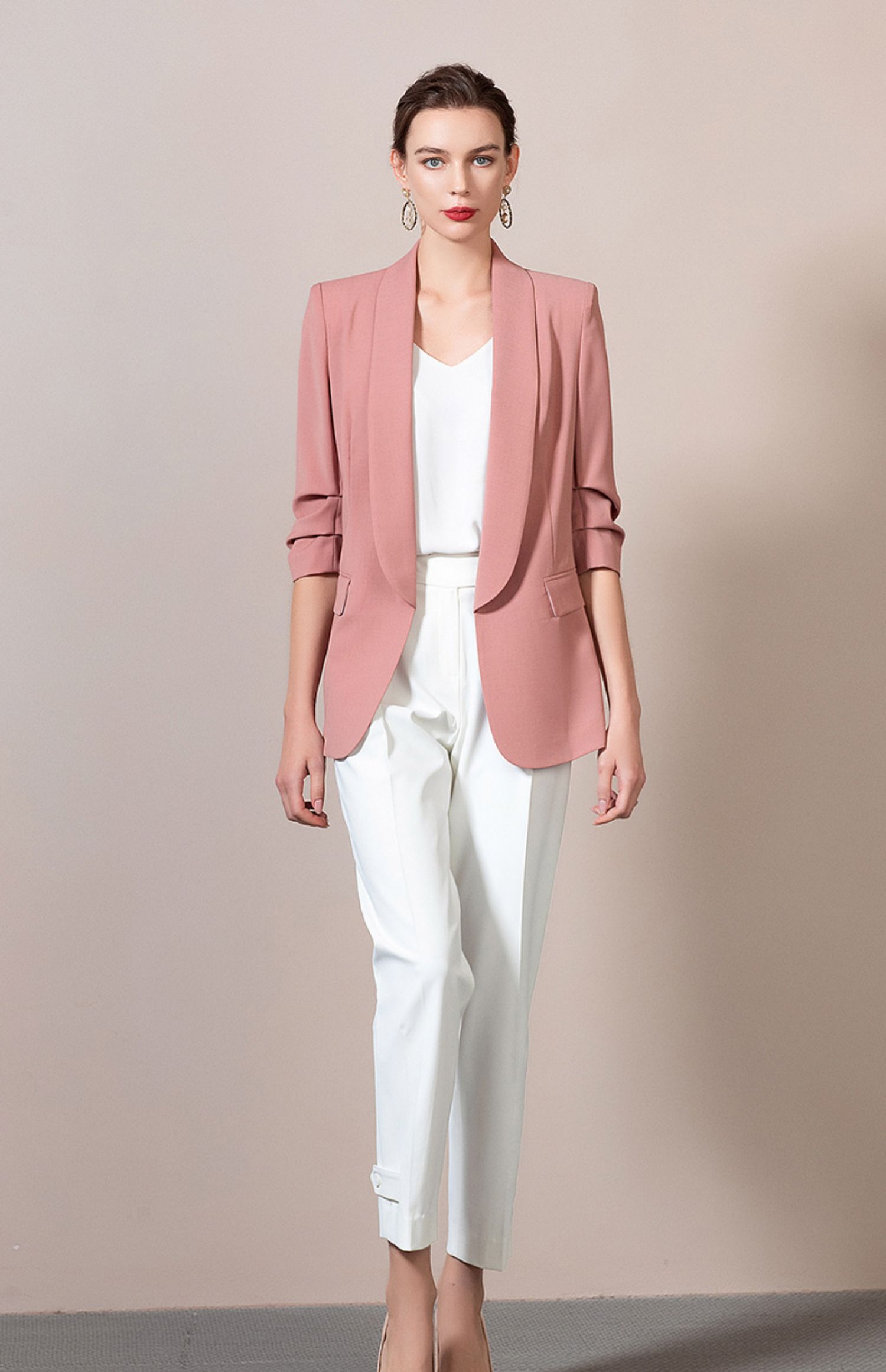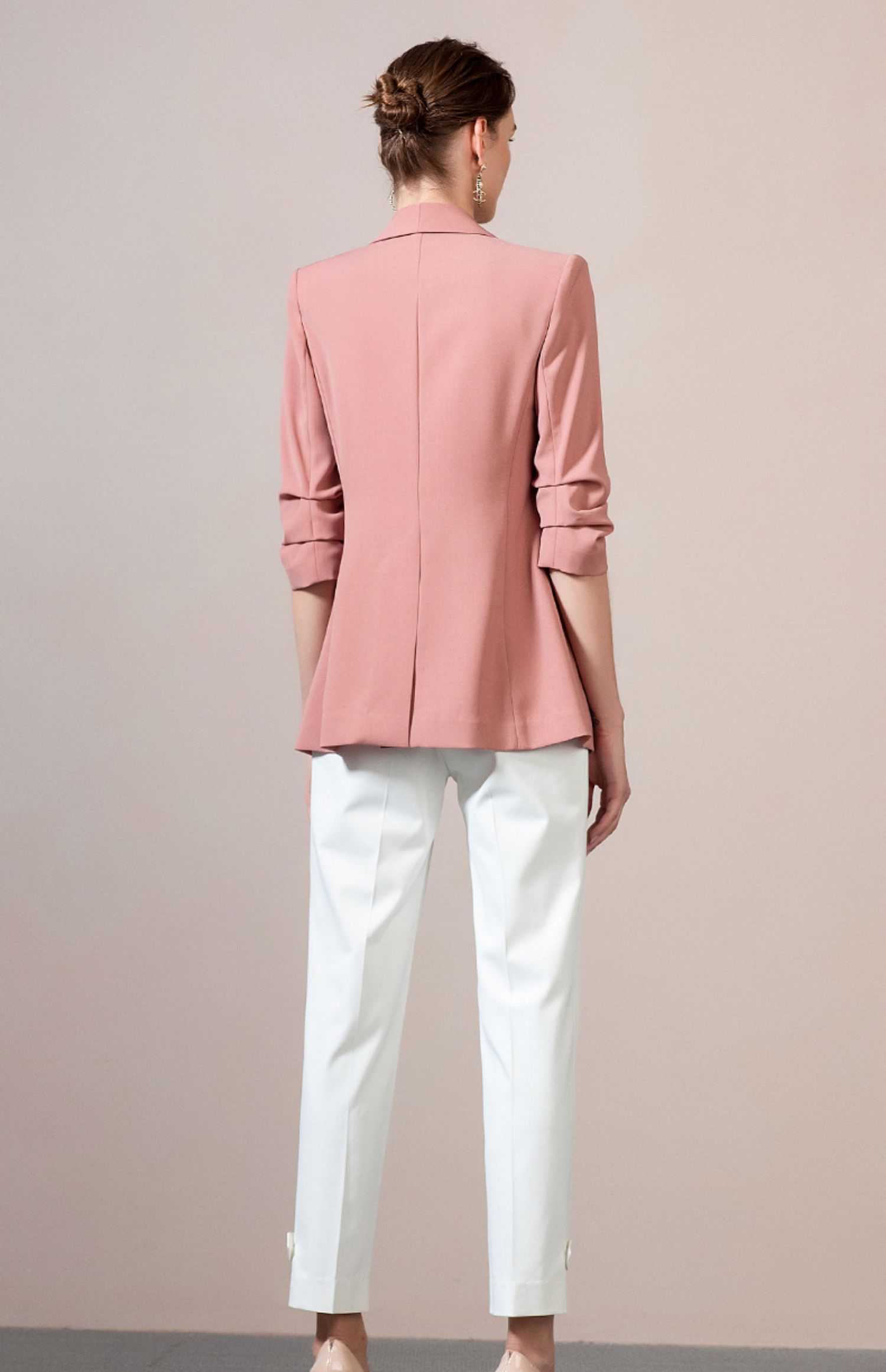 IWY/粉色西装套装女短袖职业装时尚气质面试通勤正装修身工作西服 212061C1+212072P1(粉)