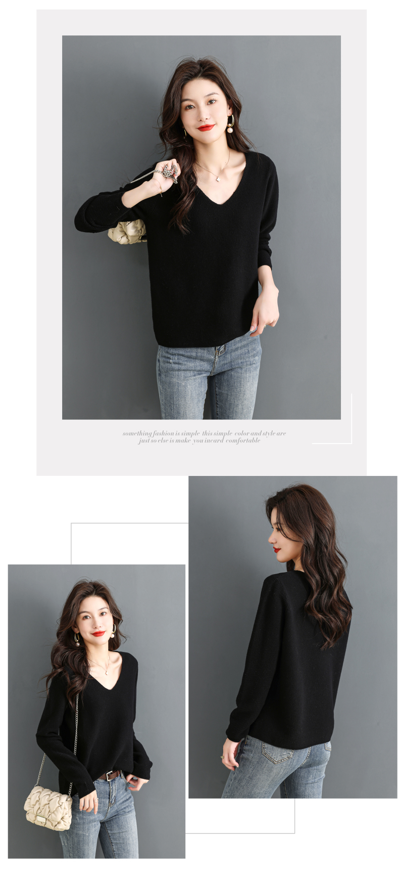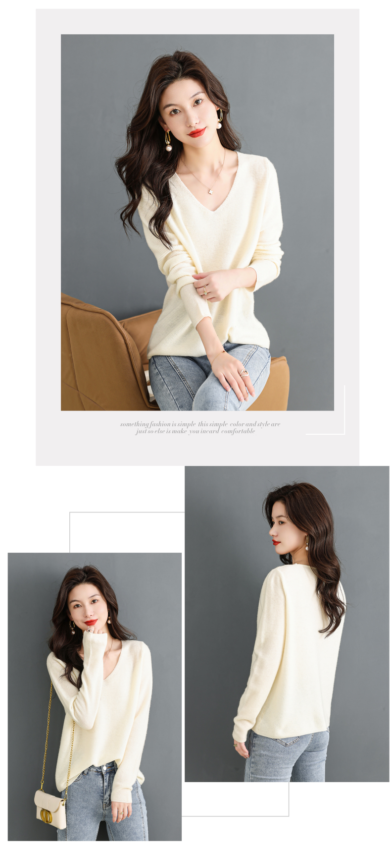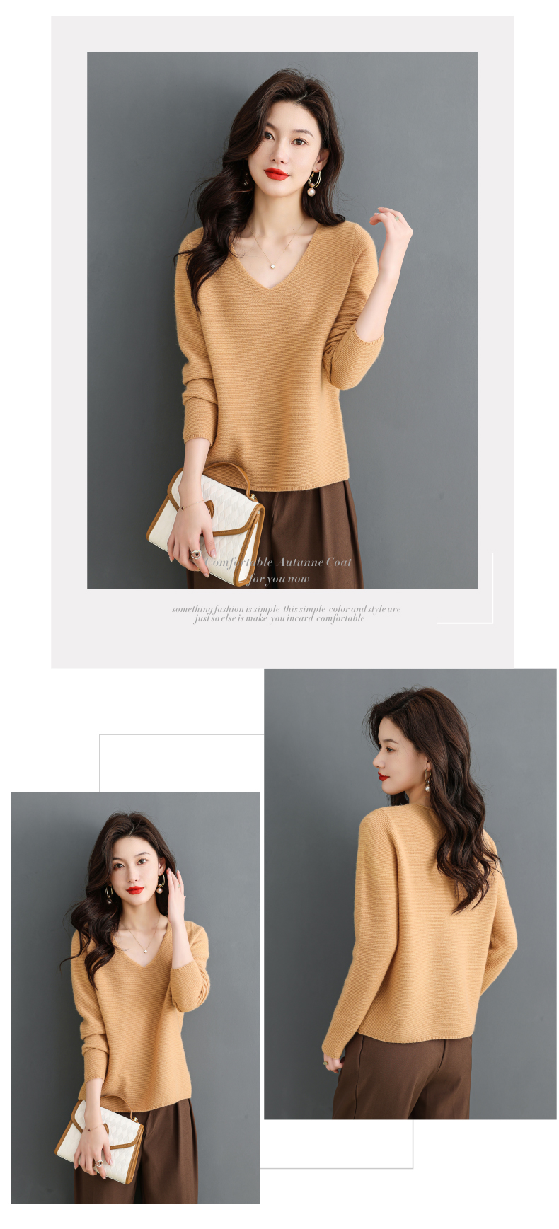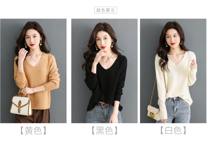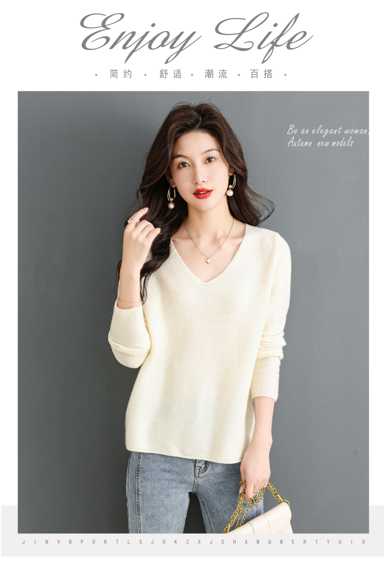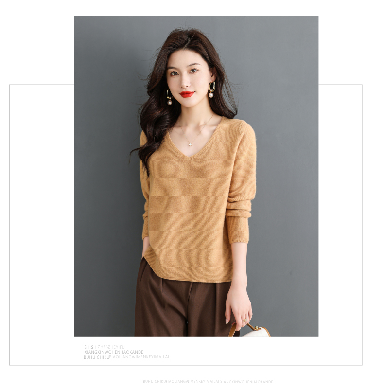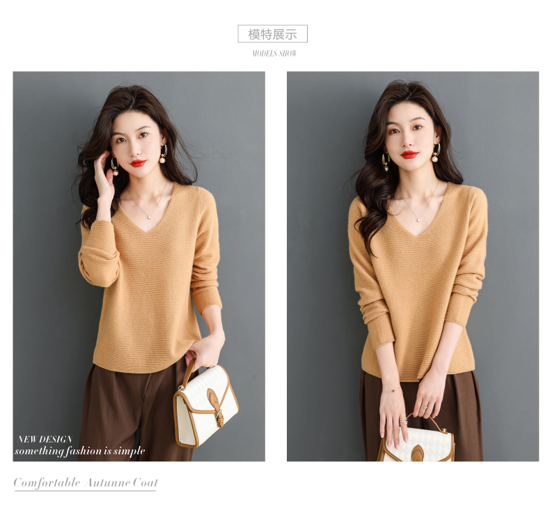 V领羊毛衫,100纯羊毛内搭鸡心领打底衫CC-28-6101