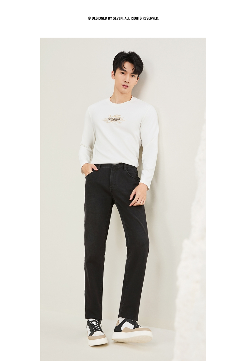 【提花】柒牌牛仔裤2025秋季新款长裤中腰直筒裤子商务休闲裤装129H71700