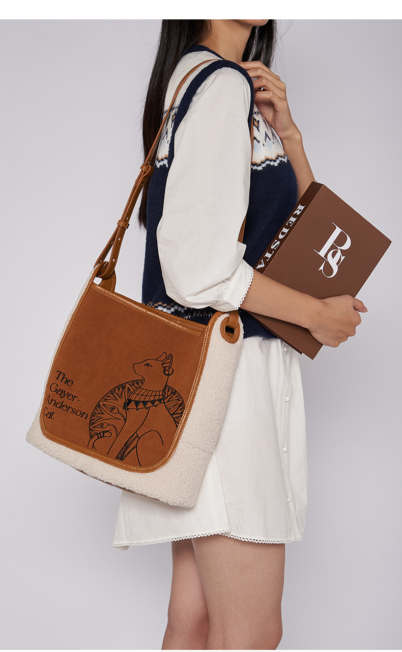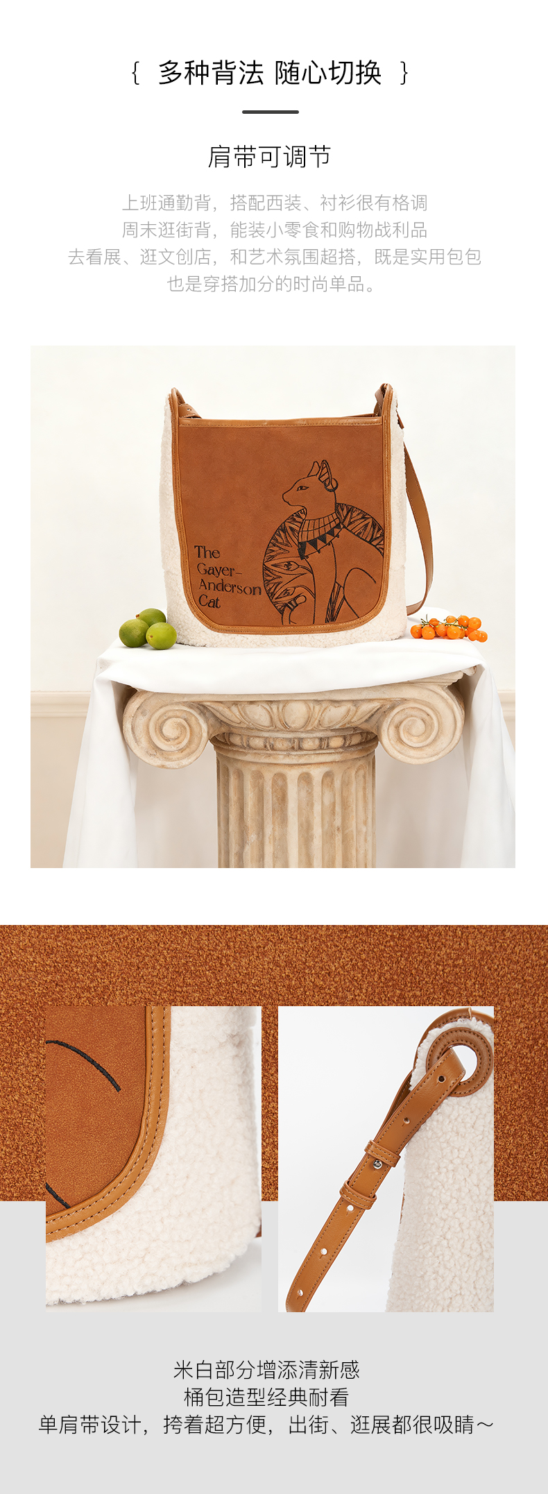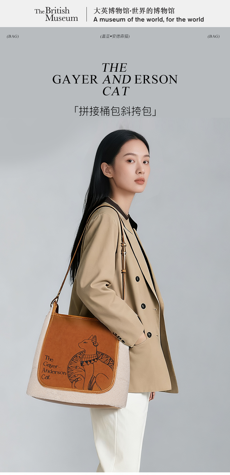 大英博物馆 盖亚·安德森猫系列 拼接桶包斜挎包-暖棕色