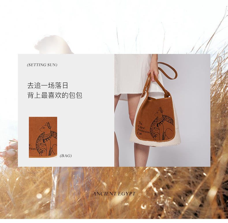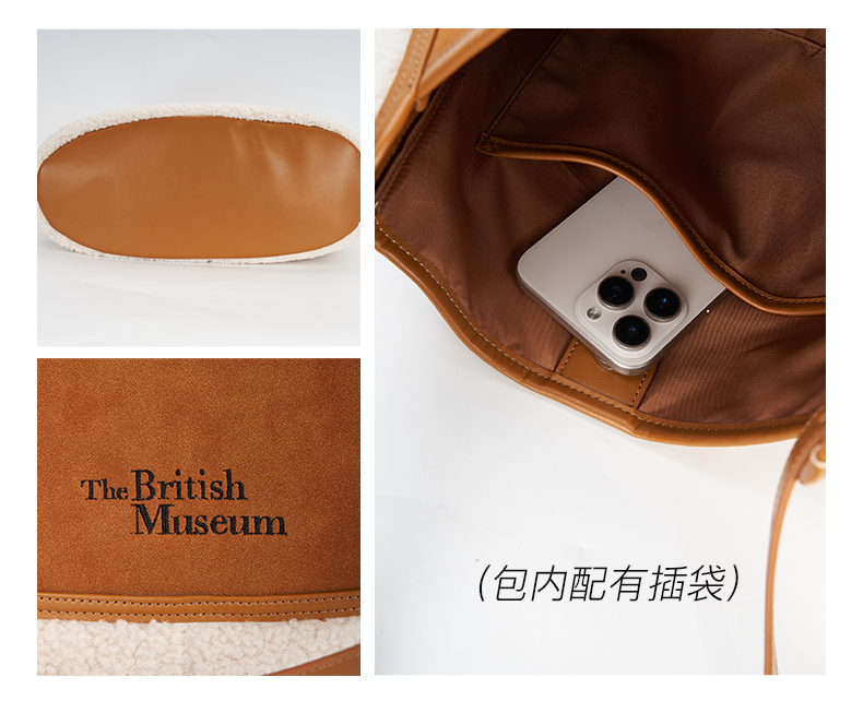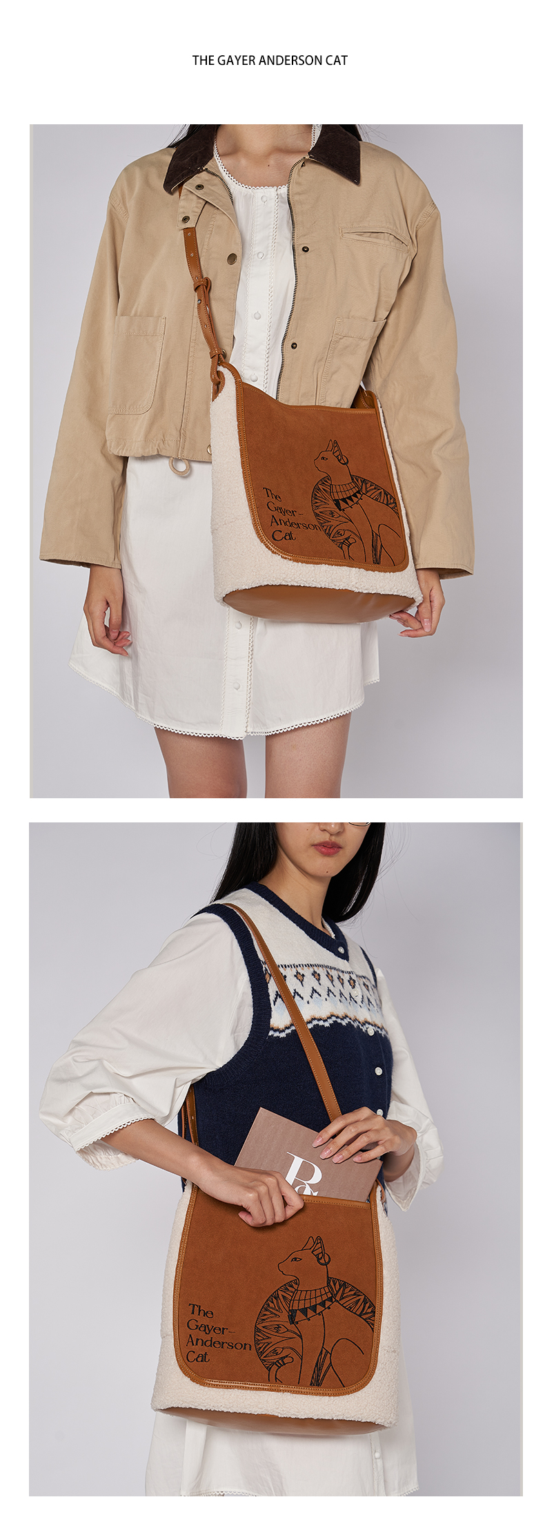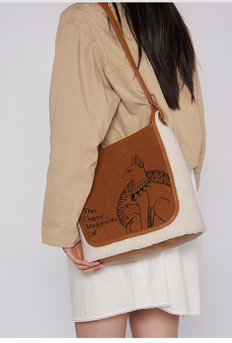 大英博物馆 盖亚·安德森猫系列 拼接桶包斜挎包-暖棕色