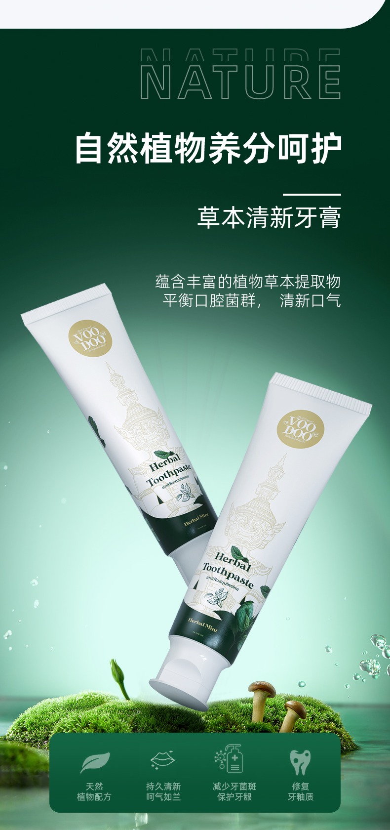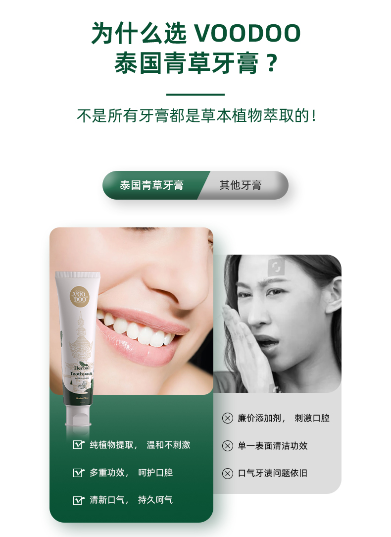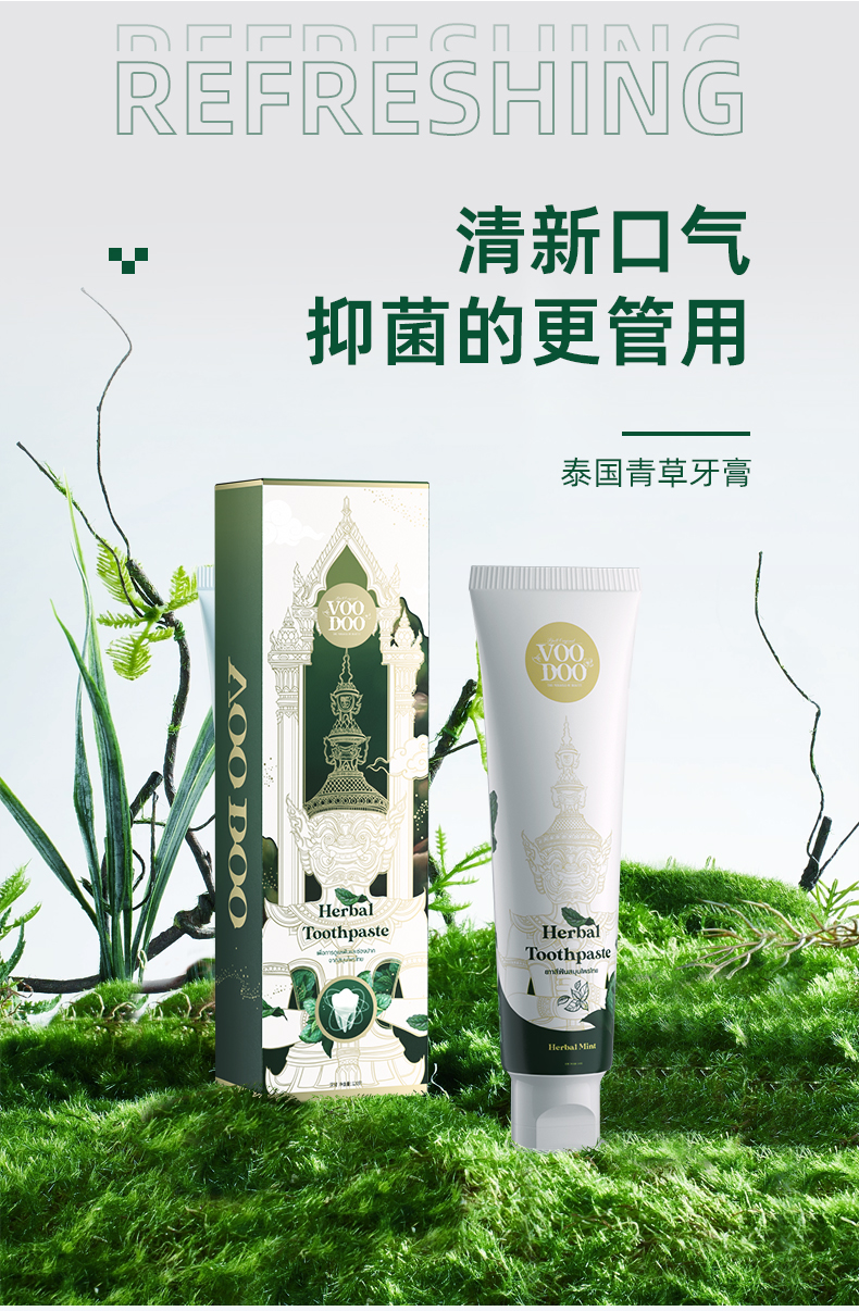 【泰国进口】VOODOO青草牙膏清新口气去渍去牙垢牙齿去口臭120g【国牙膏网备进字(粤)2024000102】
