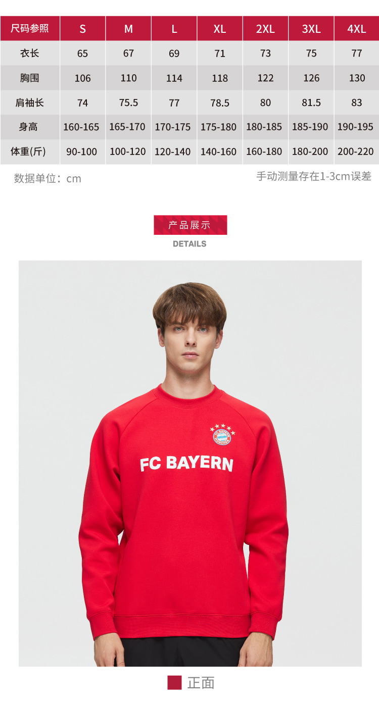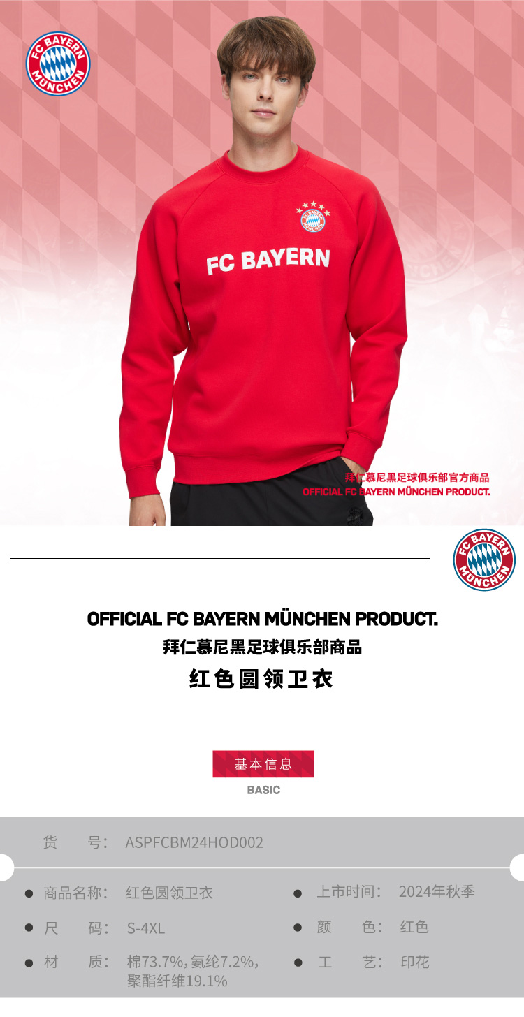 【官方正版】拜仁慕尼黑足球俱乐部|红色圆领卫衣球迷加绒保暖宽松