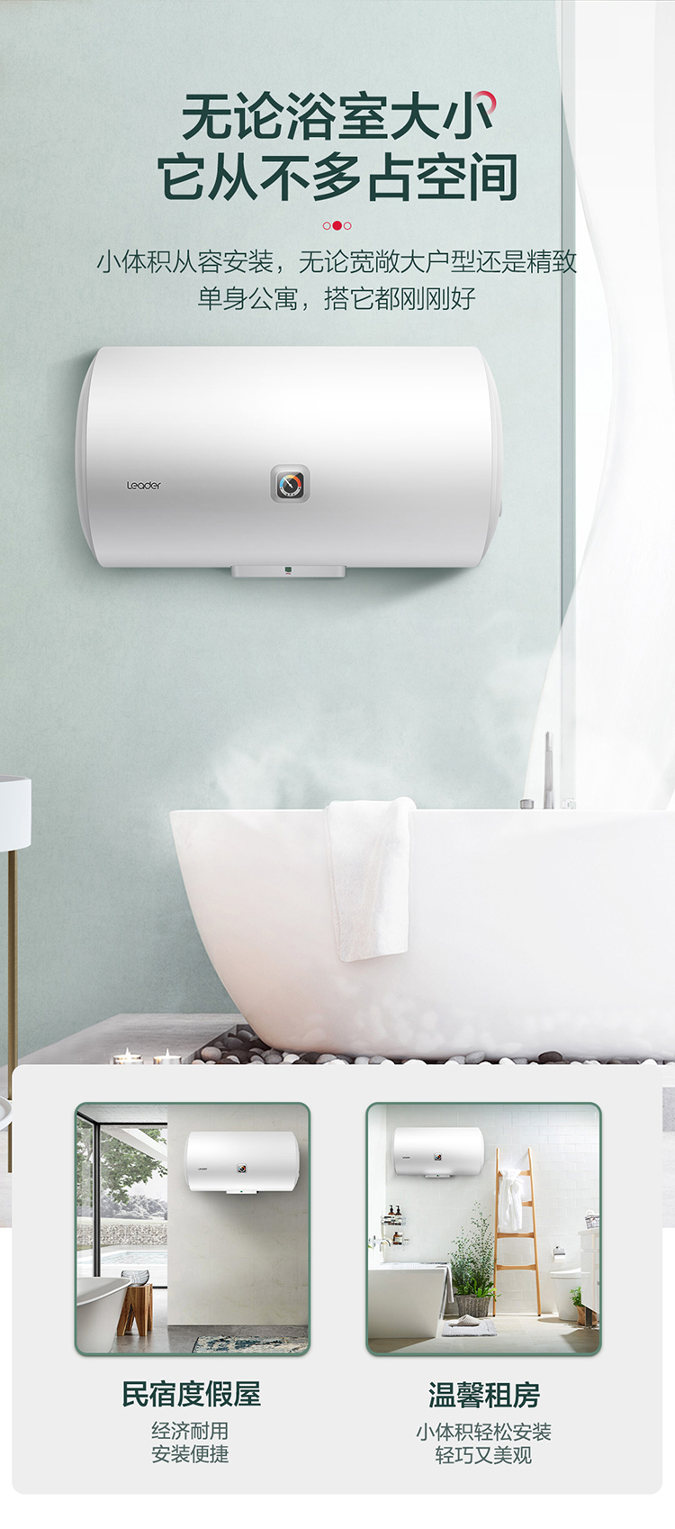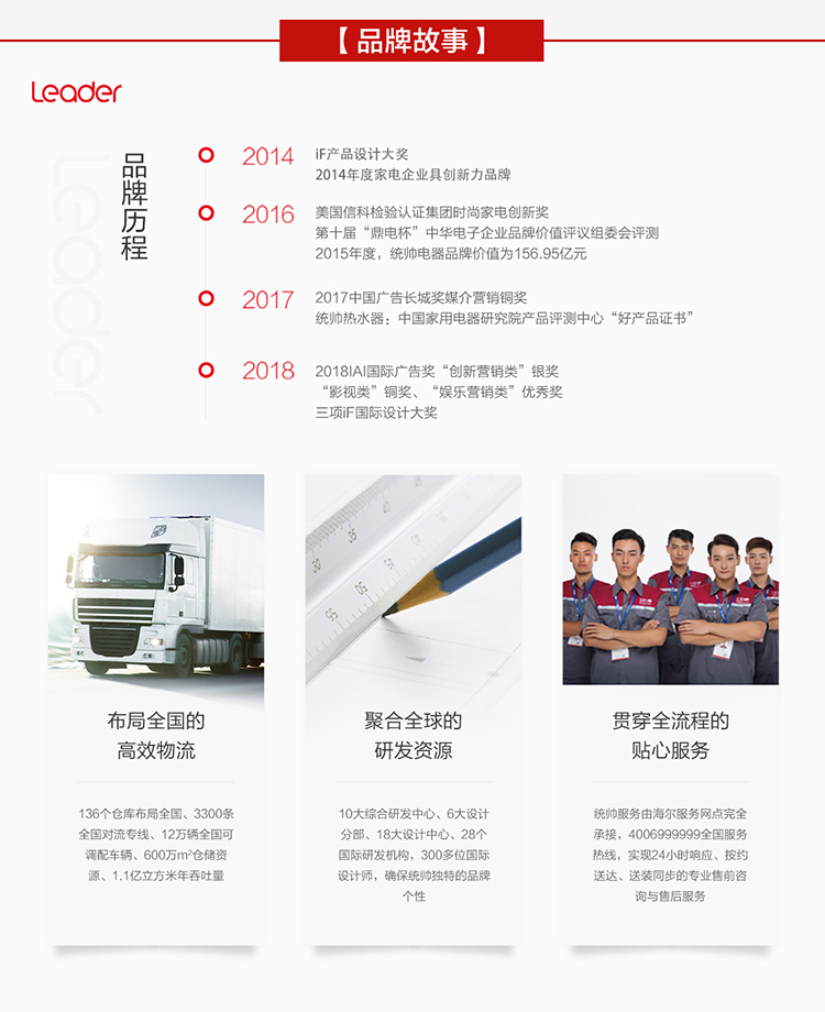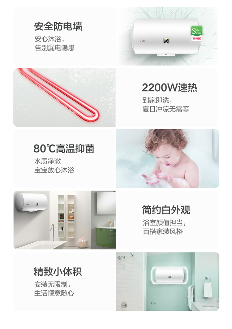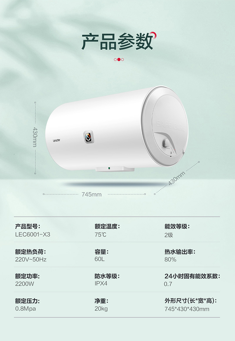 统帅(Leader)海尔出品 60升 电热水器 2200W大功率 专利防电墙 金刚三层胆 钼金加热管 LEC6001-X3