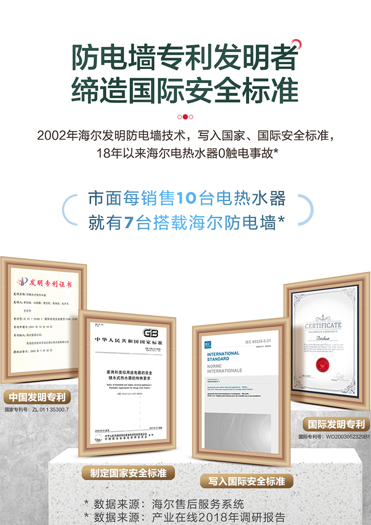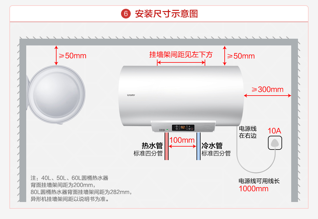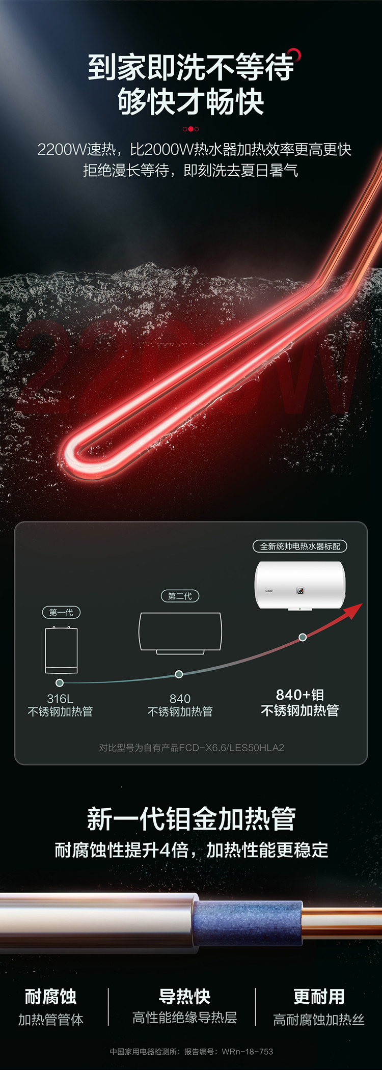 统帅(Leader)海尔出品 60升 电热水器 2200W大功率 专利防电墙 金刚三层胆 钼金加热管 LEC6001-X3
